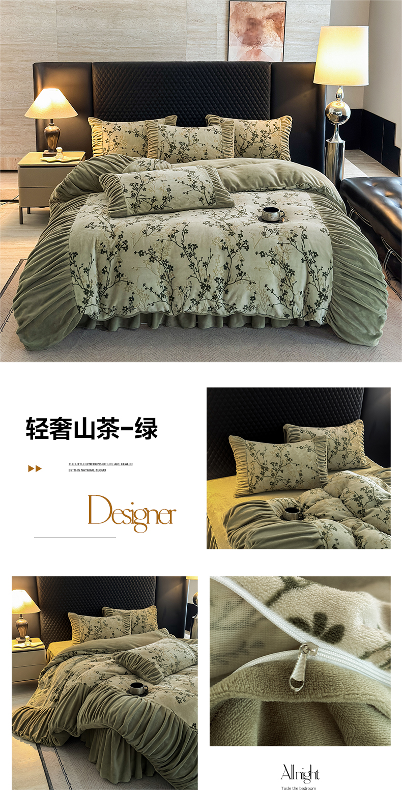 2025新款高克重牛奶绒花边床盖款系列四件套