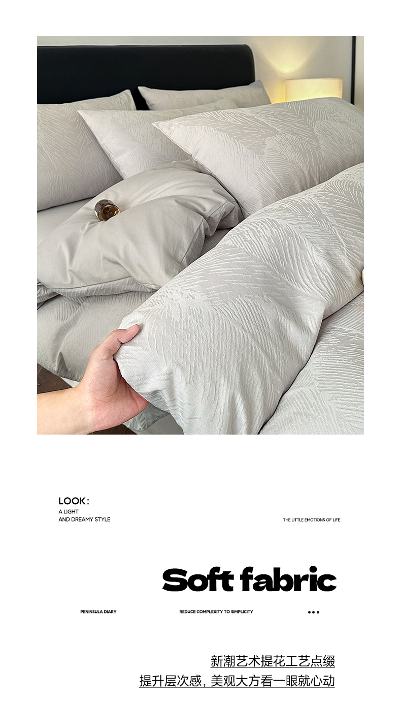 > (总)莱登卡奴 2026春夏新款全棉纯棉A类60S水洗浮雕立体提花四件套-柔美系列