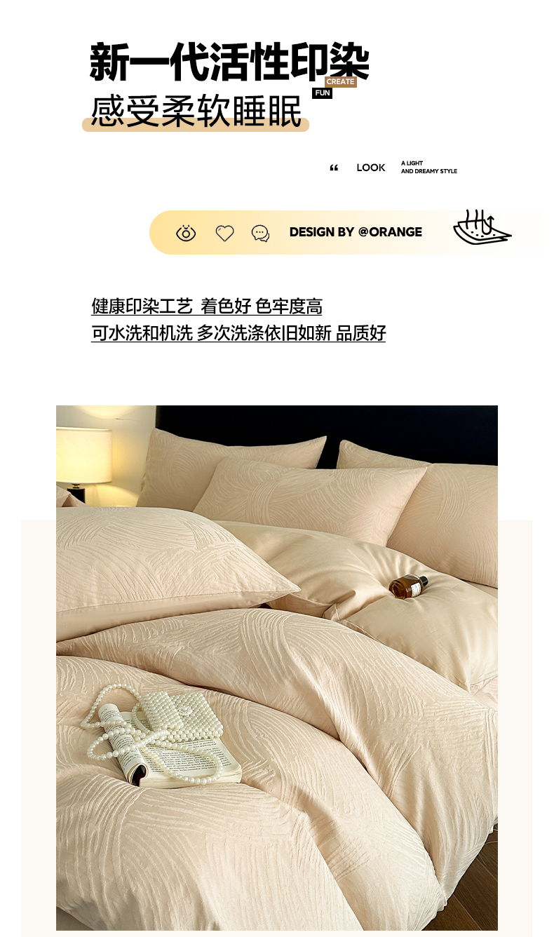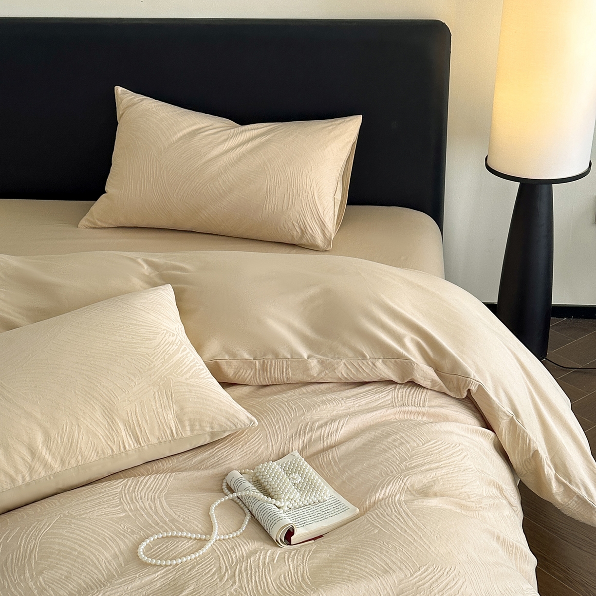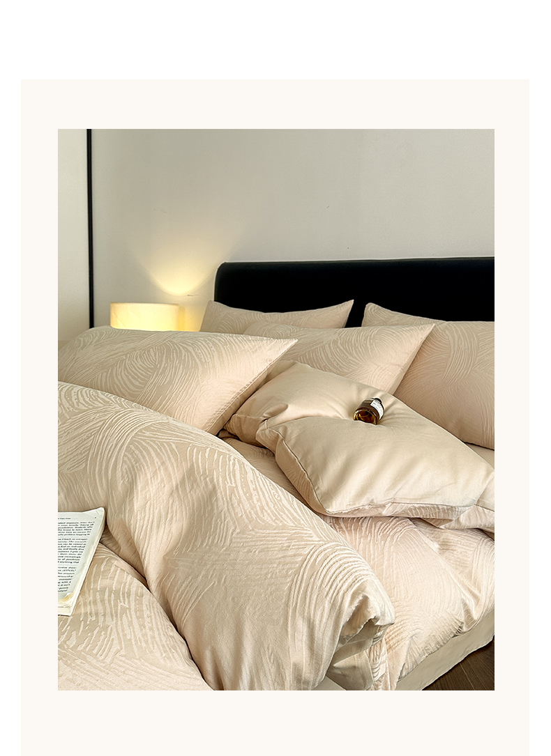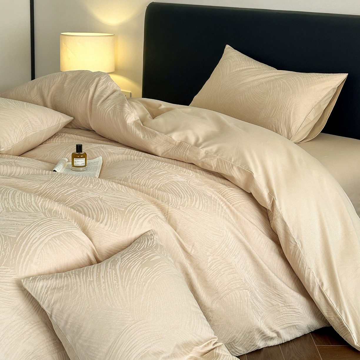 > 莱登卡奴 2026春夏新款全棉纯棉A类60S水洗浮雕立体提花四件套-柔美系列 布兰卡米杏
