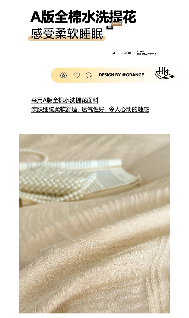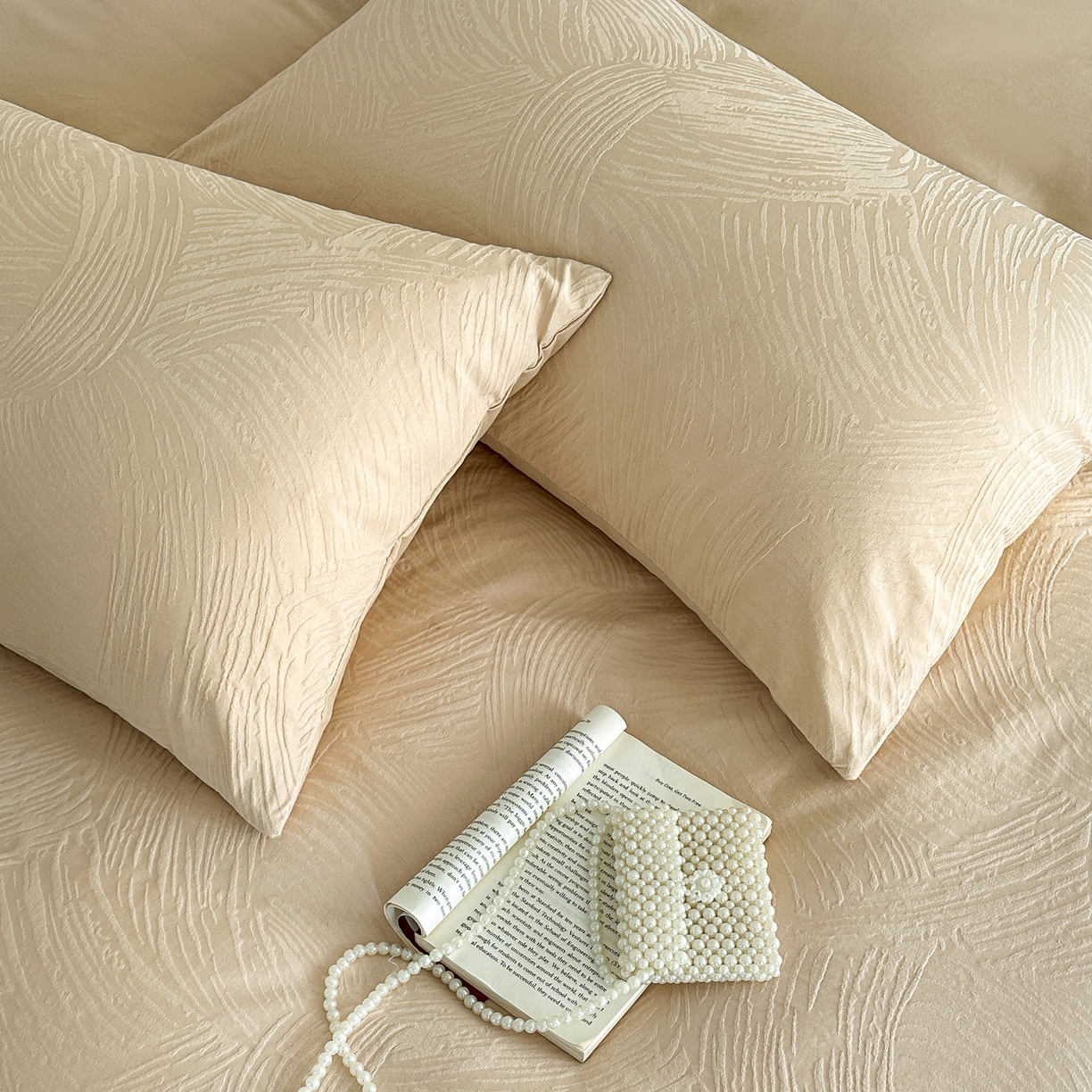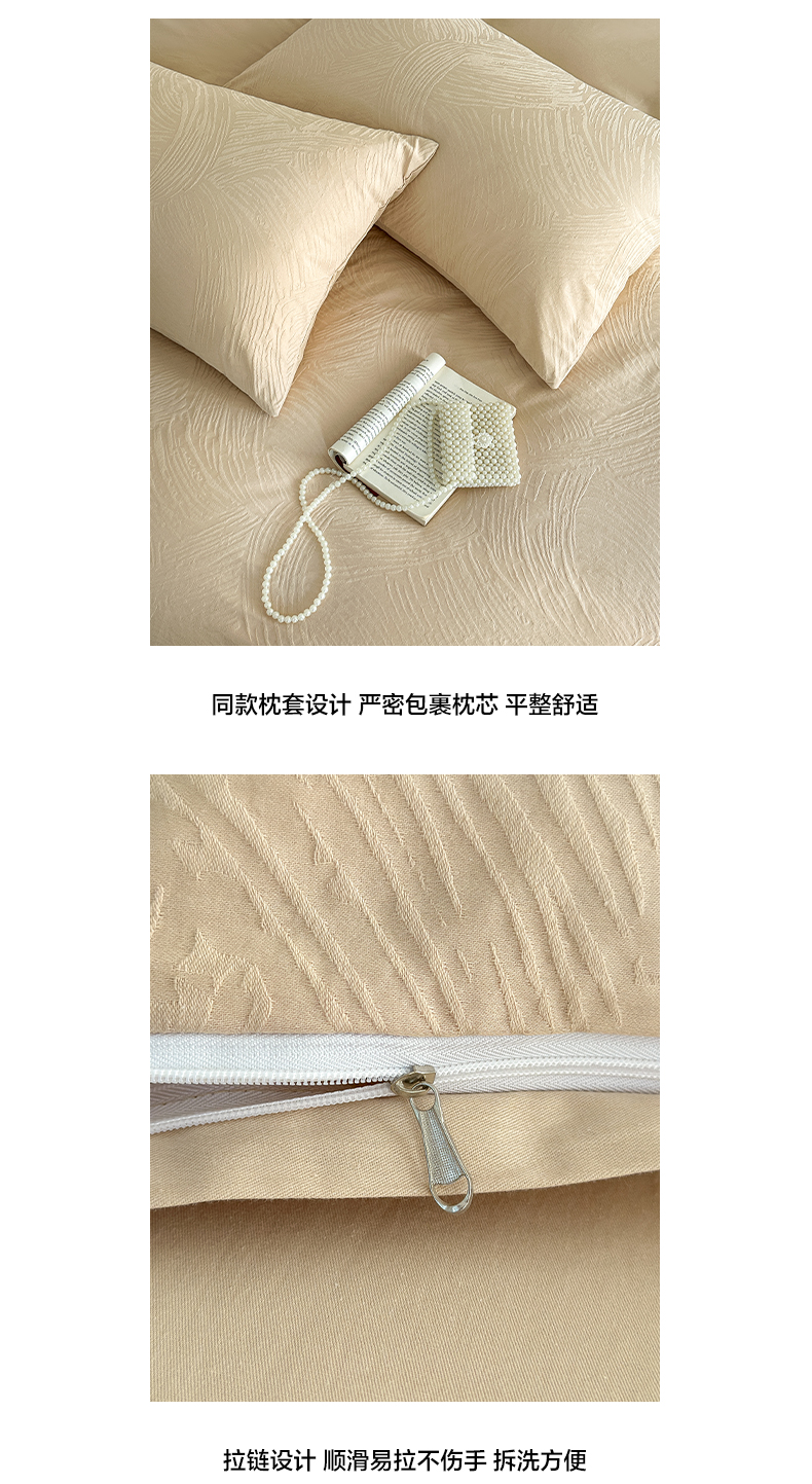 > 莱登卡奴 2026春夏新款全棉纯棉A类60S水洗浮雕立体提花四件套-柔美系列 布兰卡米杏