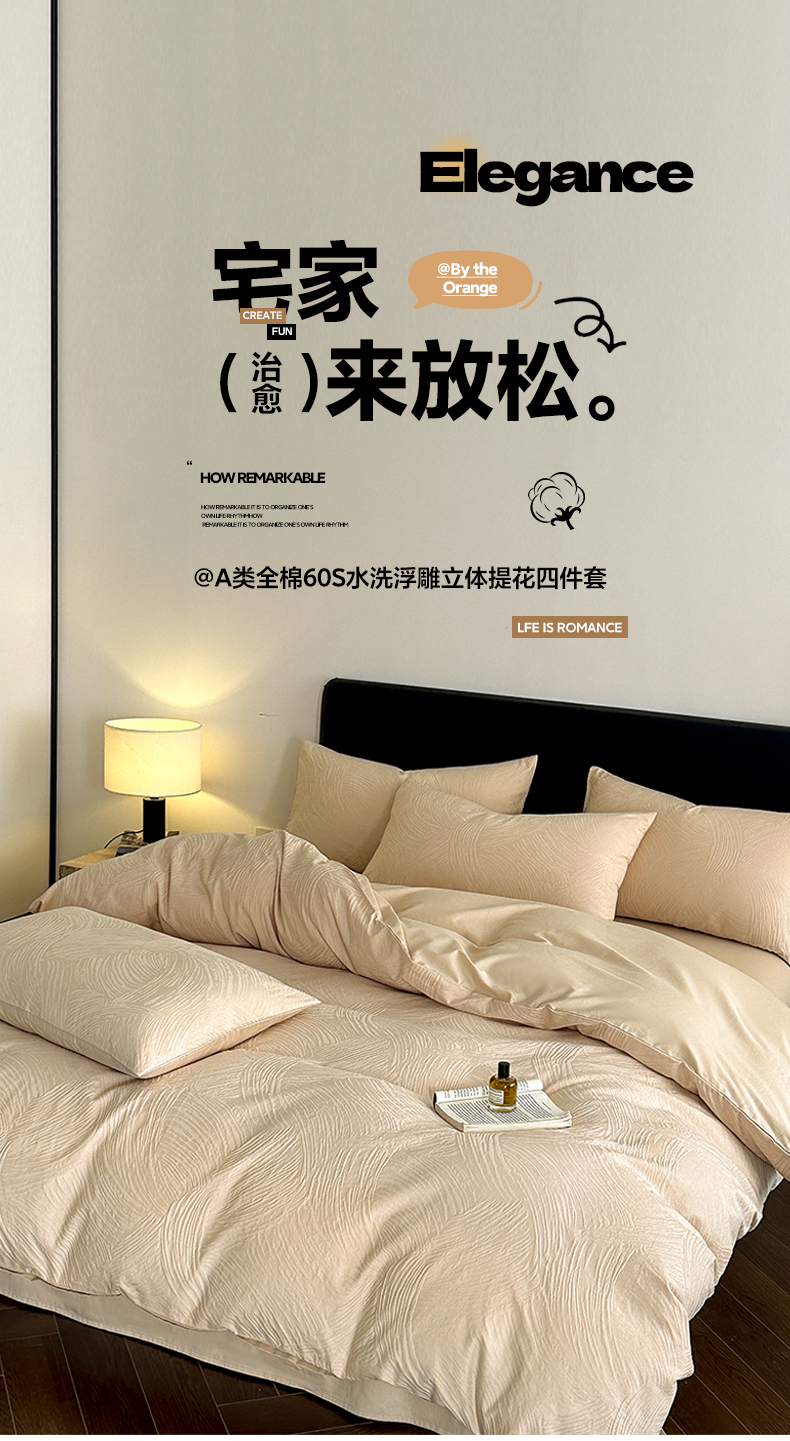 2026春夏新款全棉纯棉A类60S水洗浮雕立体提花四件套-柔美系列