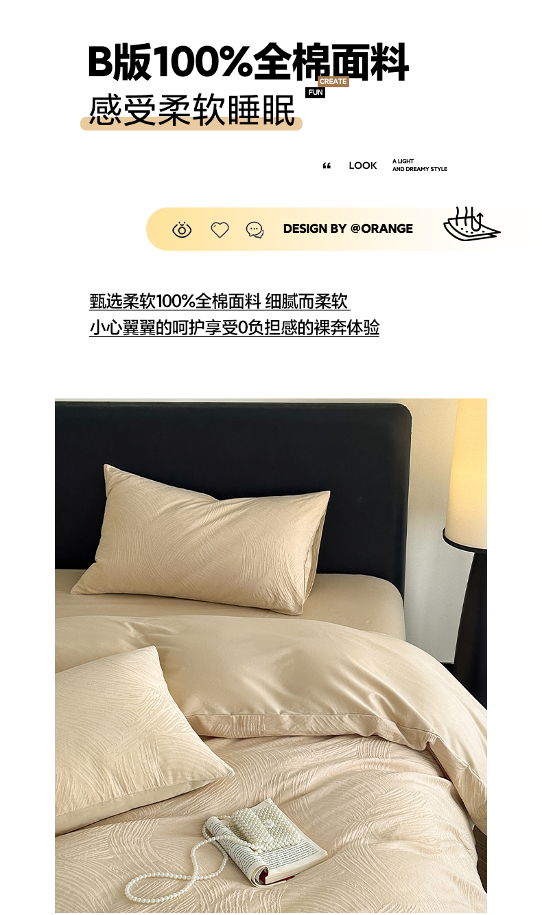 莱登卡奴 2026春夏新款全棉纯棉A类60S水洗浮雕立体提花四件套-柔美系列 布兰卡米杏