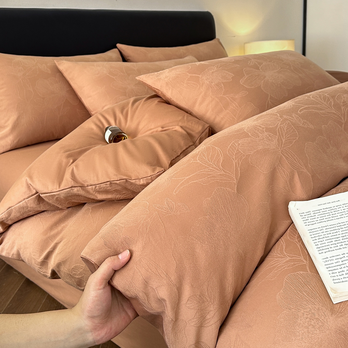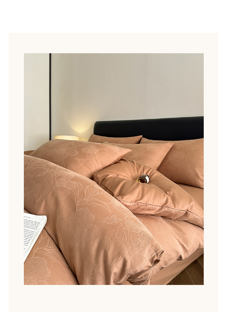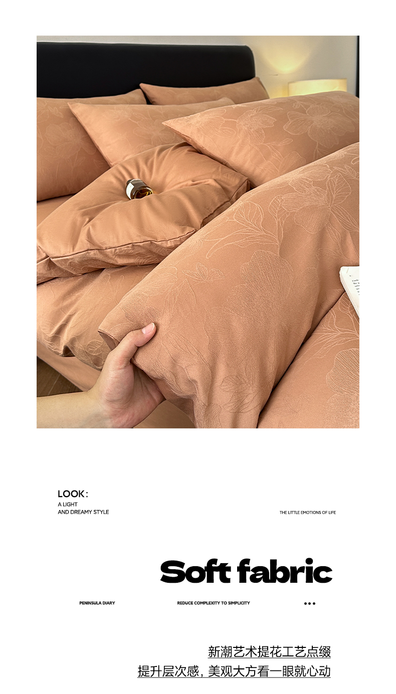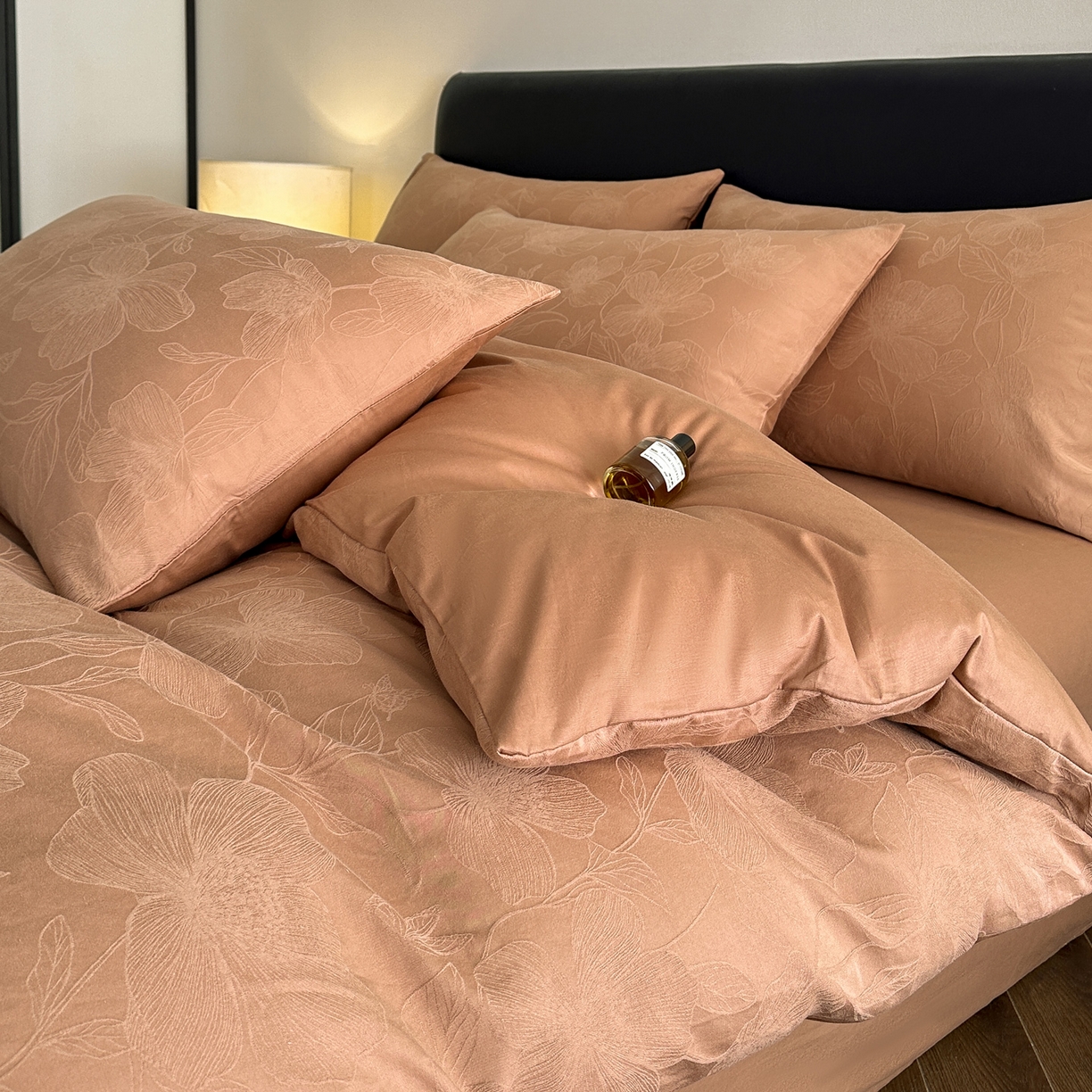> 莱登卡奴 2026春夏新款全棉纯棉A类60S水洗浮雕立体提花四件套-柔美系列 花柔玉净咖