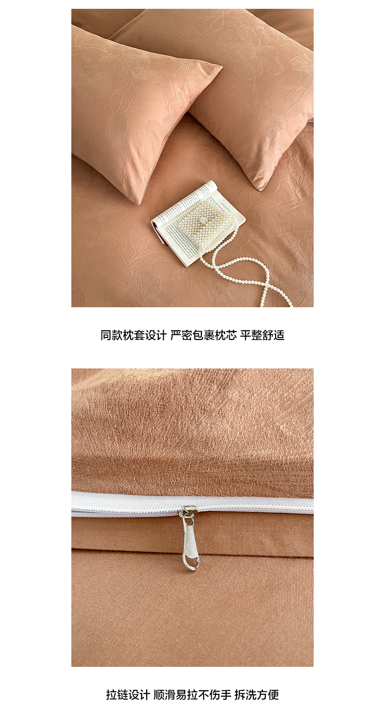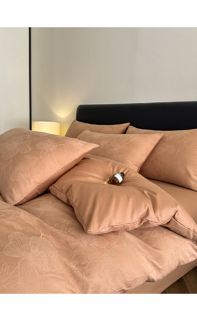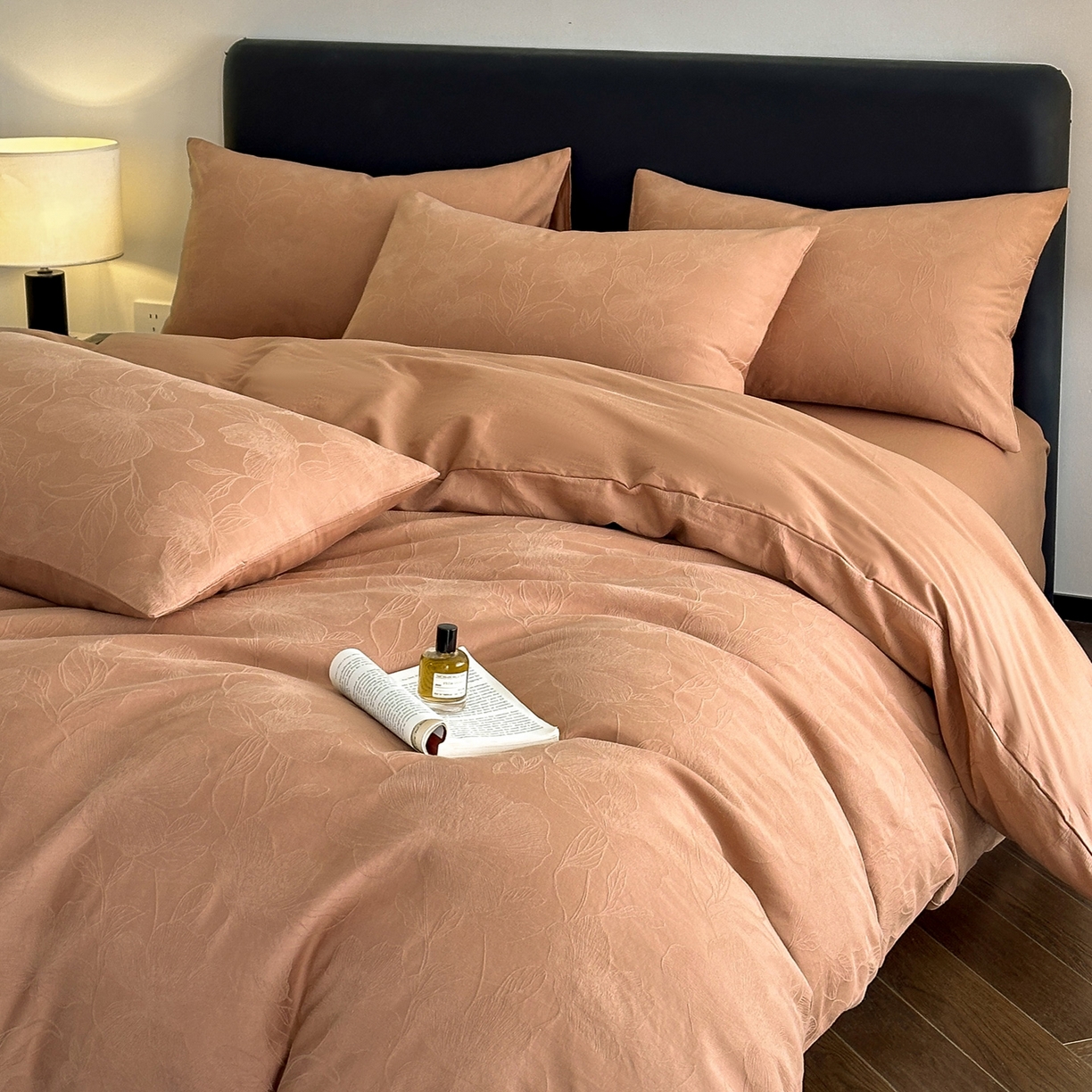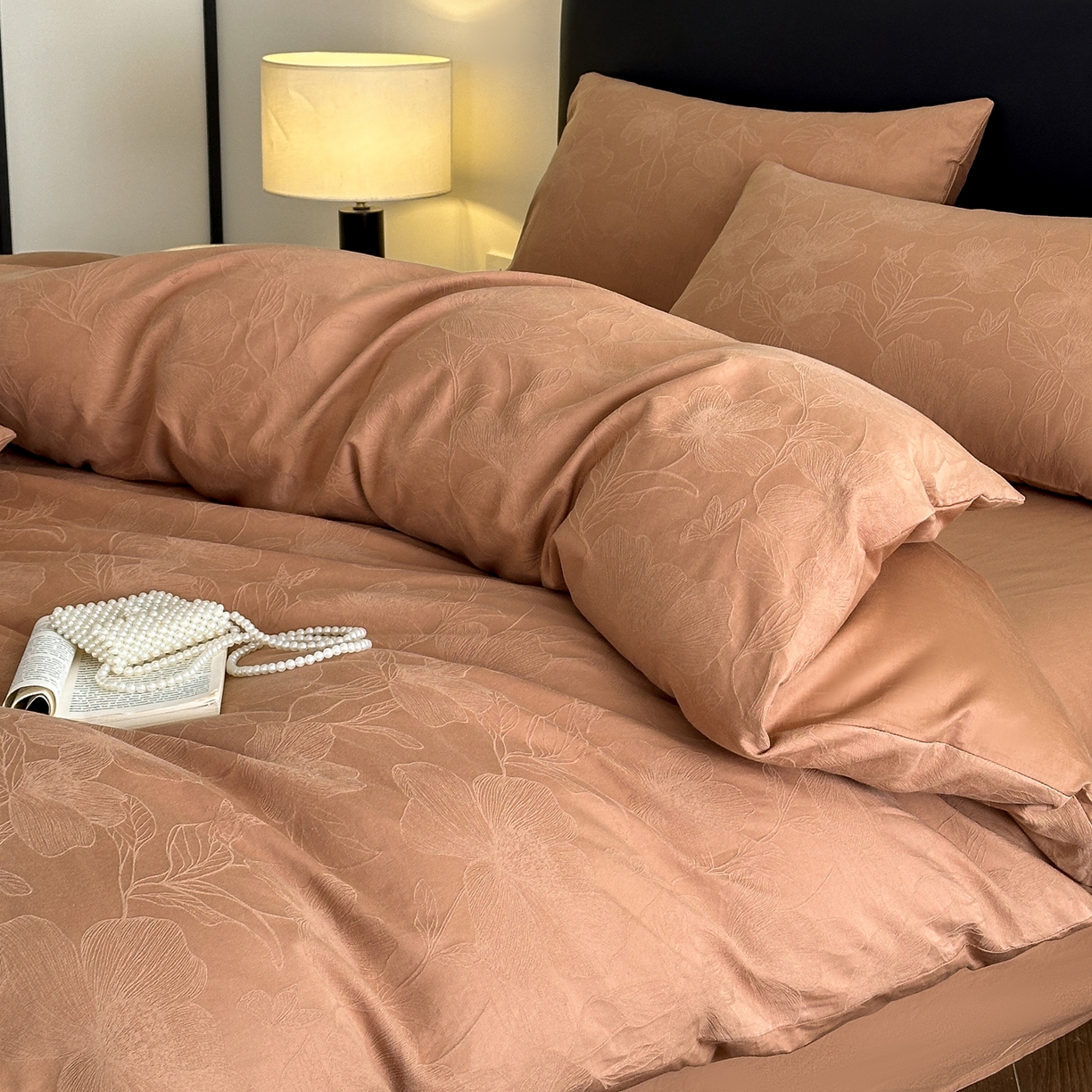 > 莱登卡奴 2026春夏新款全棉纯棉A类60S水洗浮雕立体提花四件套-柔美系列 花柔玉净咖