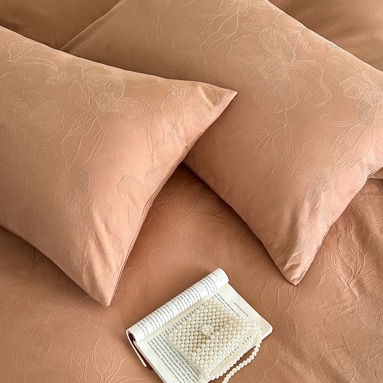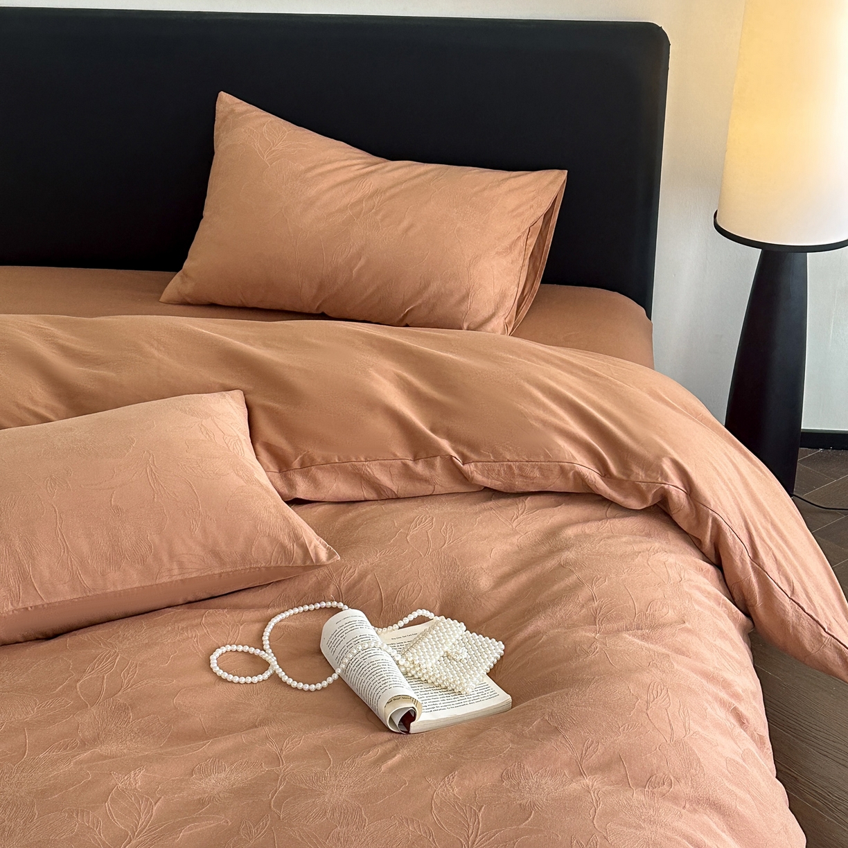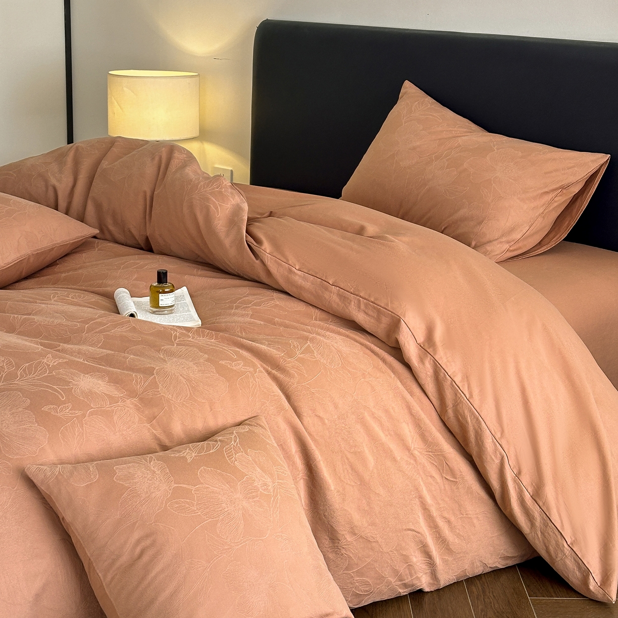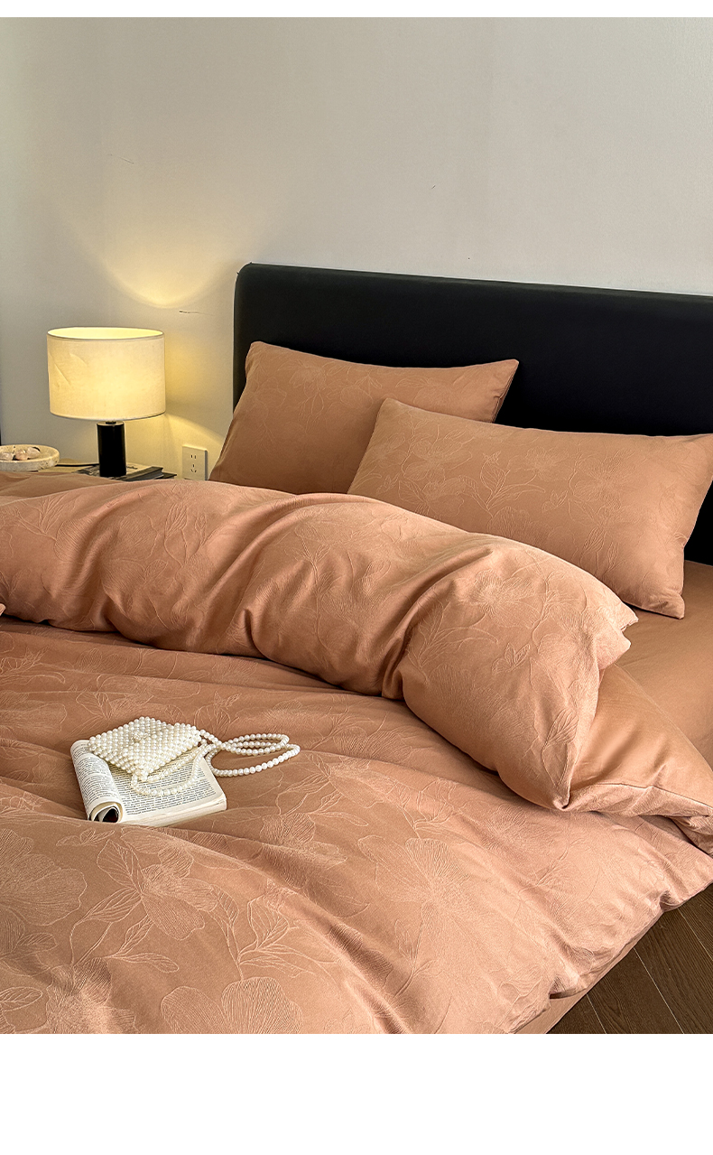 > 莱登卡奴 2026春夏新款全棉纯棉A类60S水洗浮雕立体提花四件套-柔美系列 花柔玉净咖