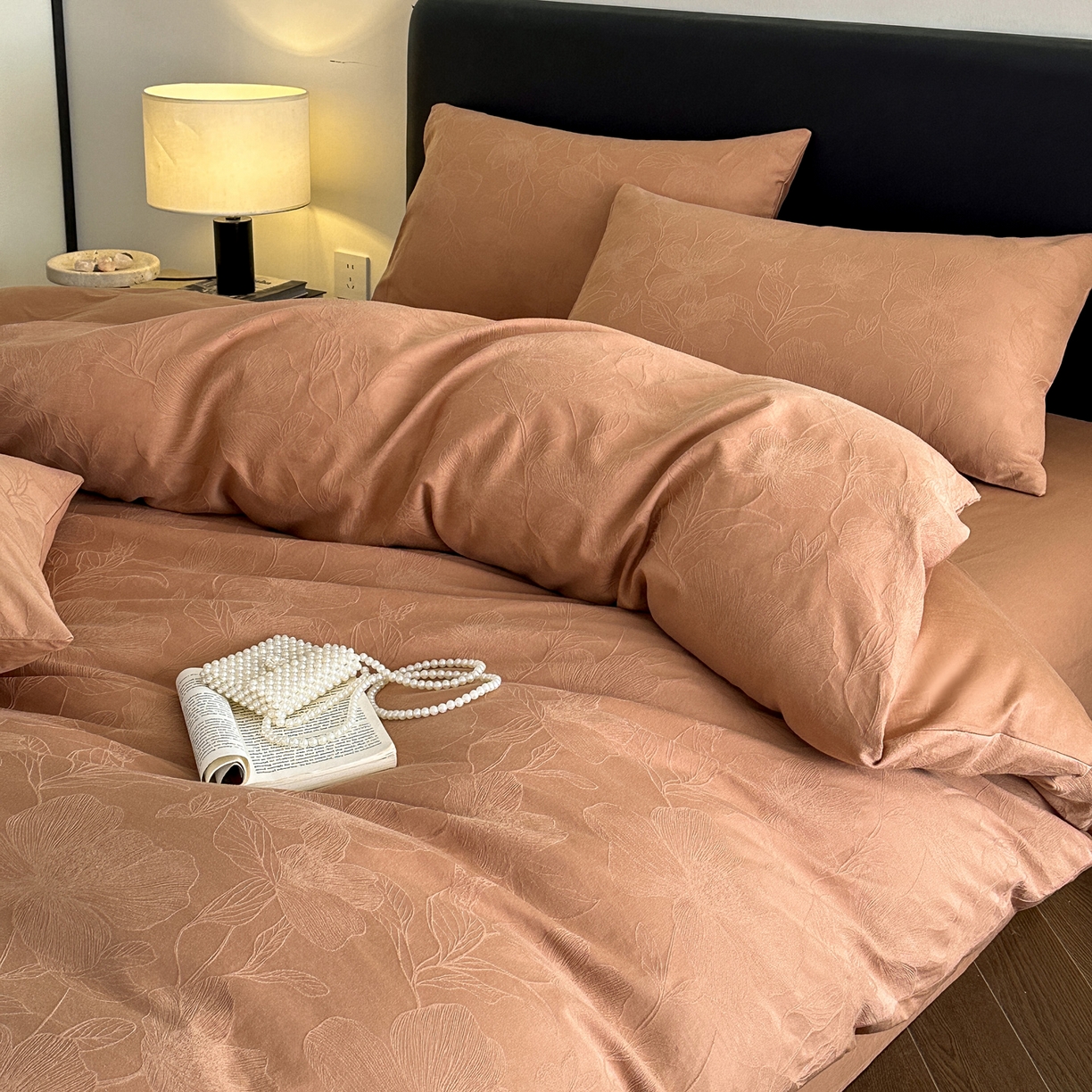 2025新款牛奶绒着色立体浮雕雕花绒-浪漫花开系列四件套
