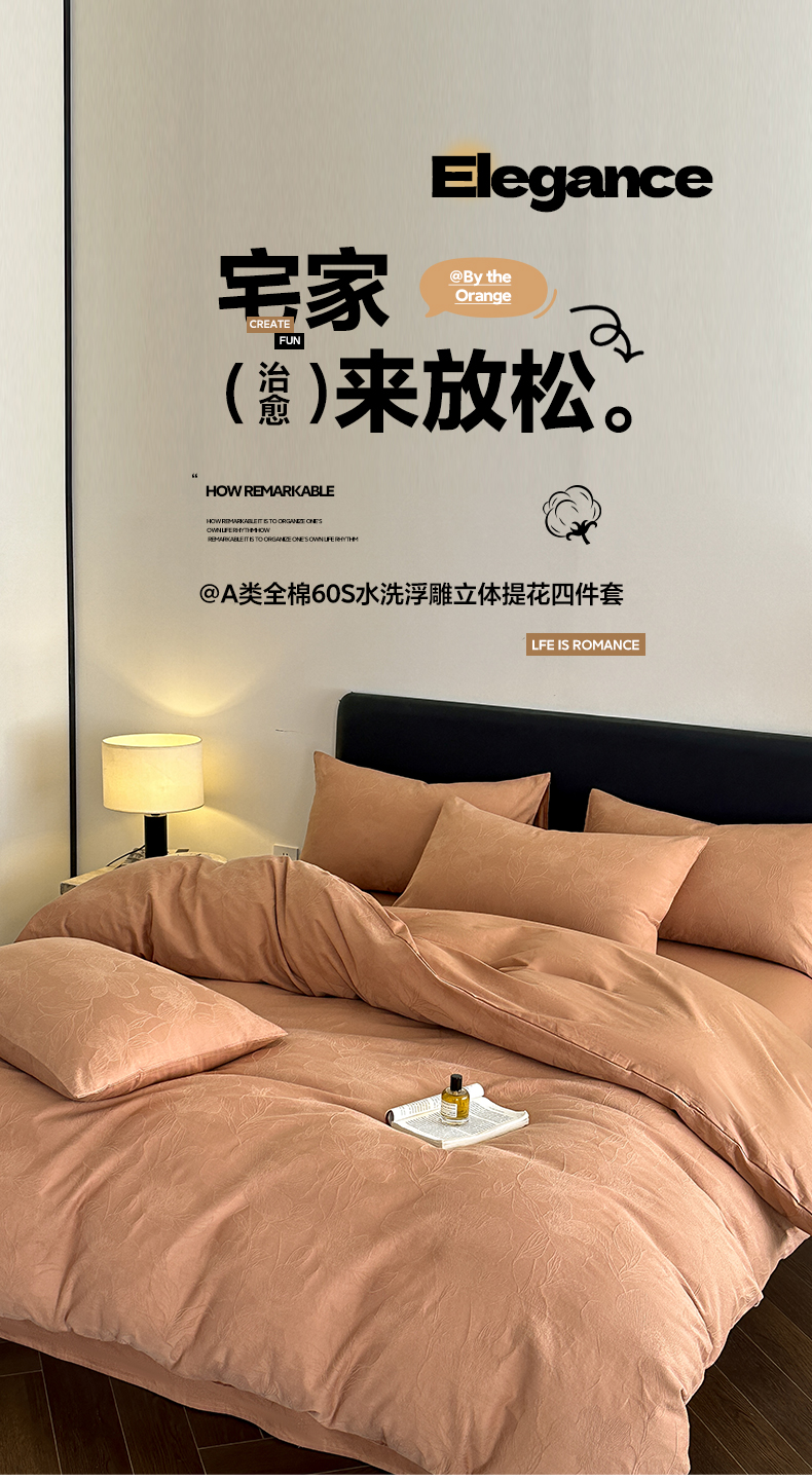 2026春夏新款全棉纯棉A类60S水洗浮雕立体提花四件套-柔美系列