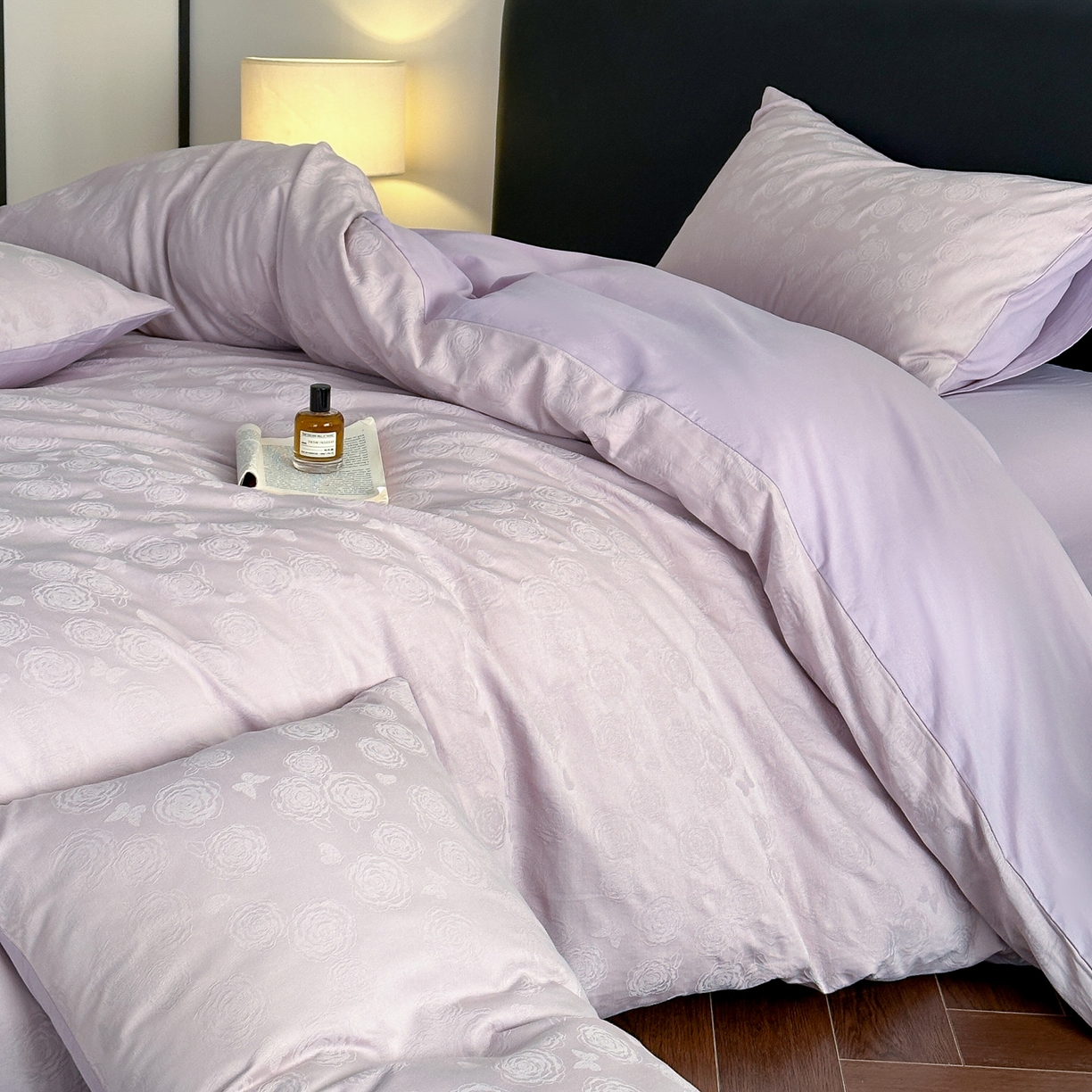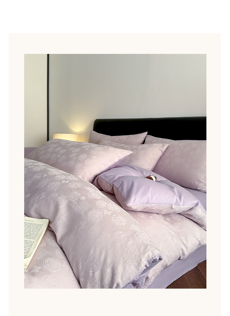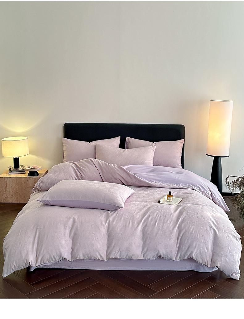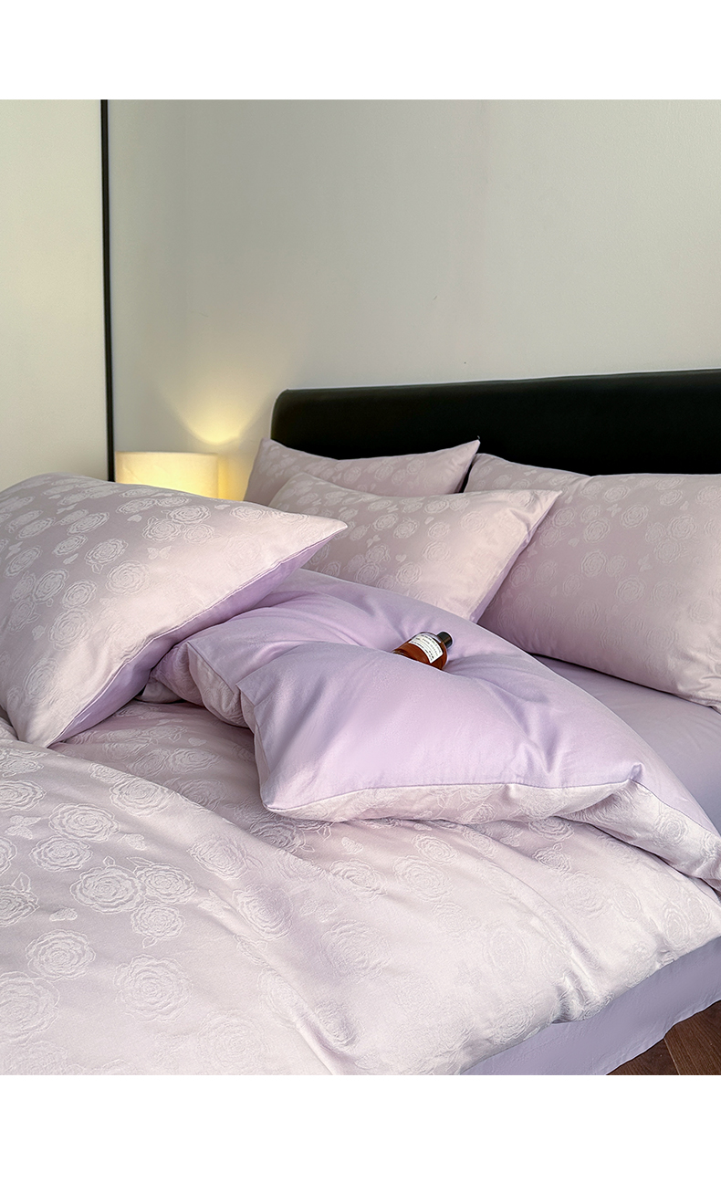 > 莱登卡奴 2026春夏新款全棉纯棉A类60S水洗浮雕立体提花四件套-柔美系列 蝶恋花丁香紫
