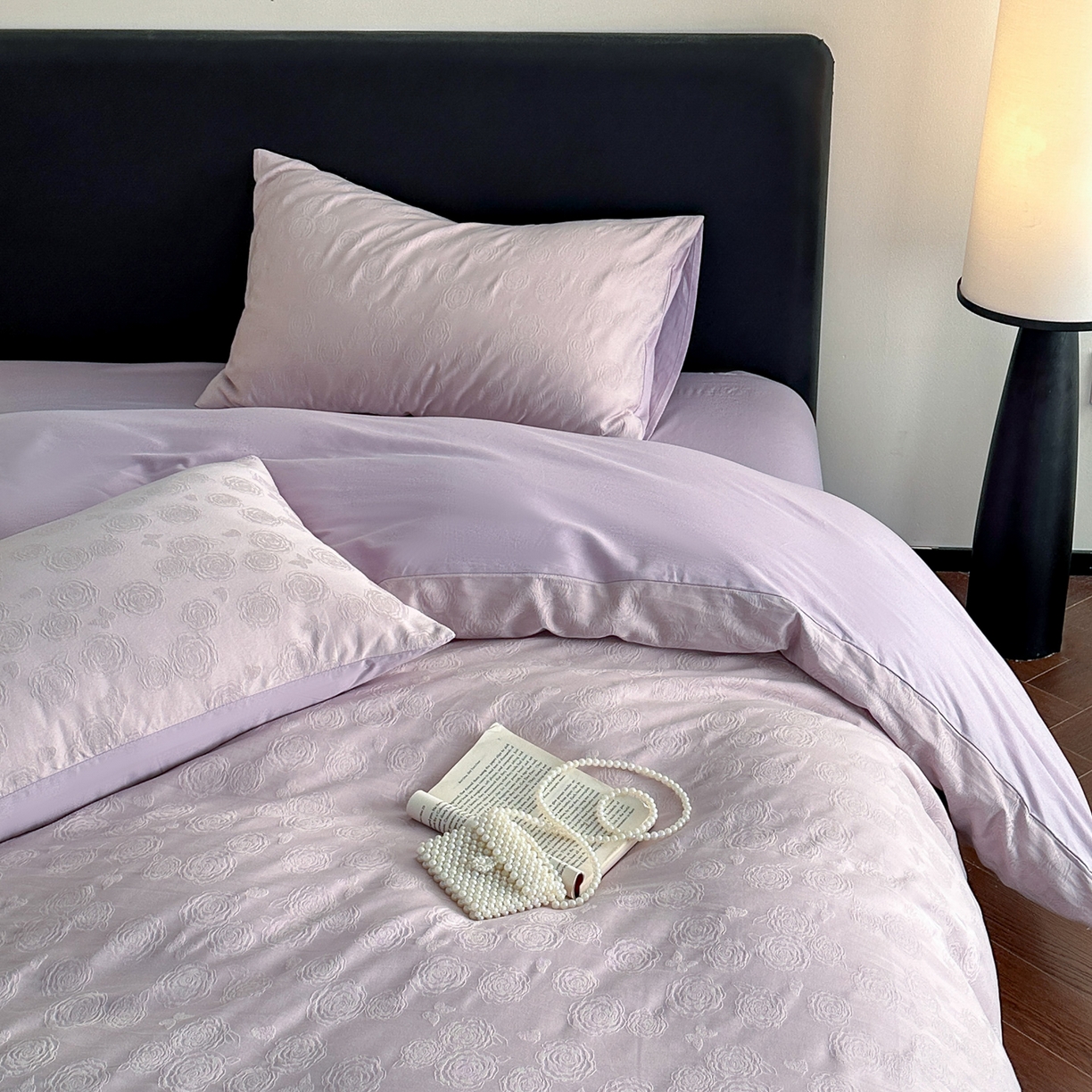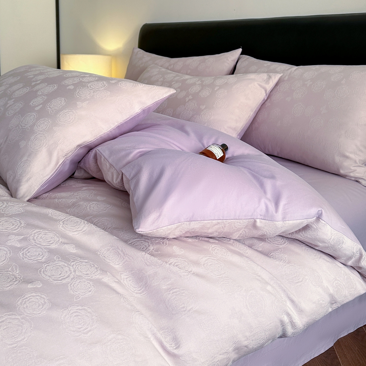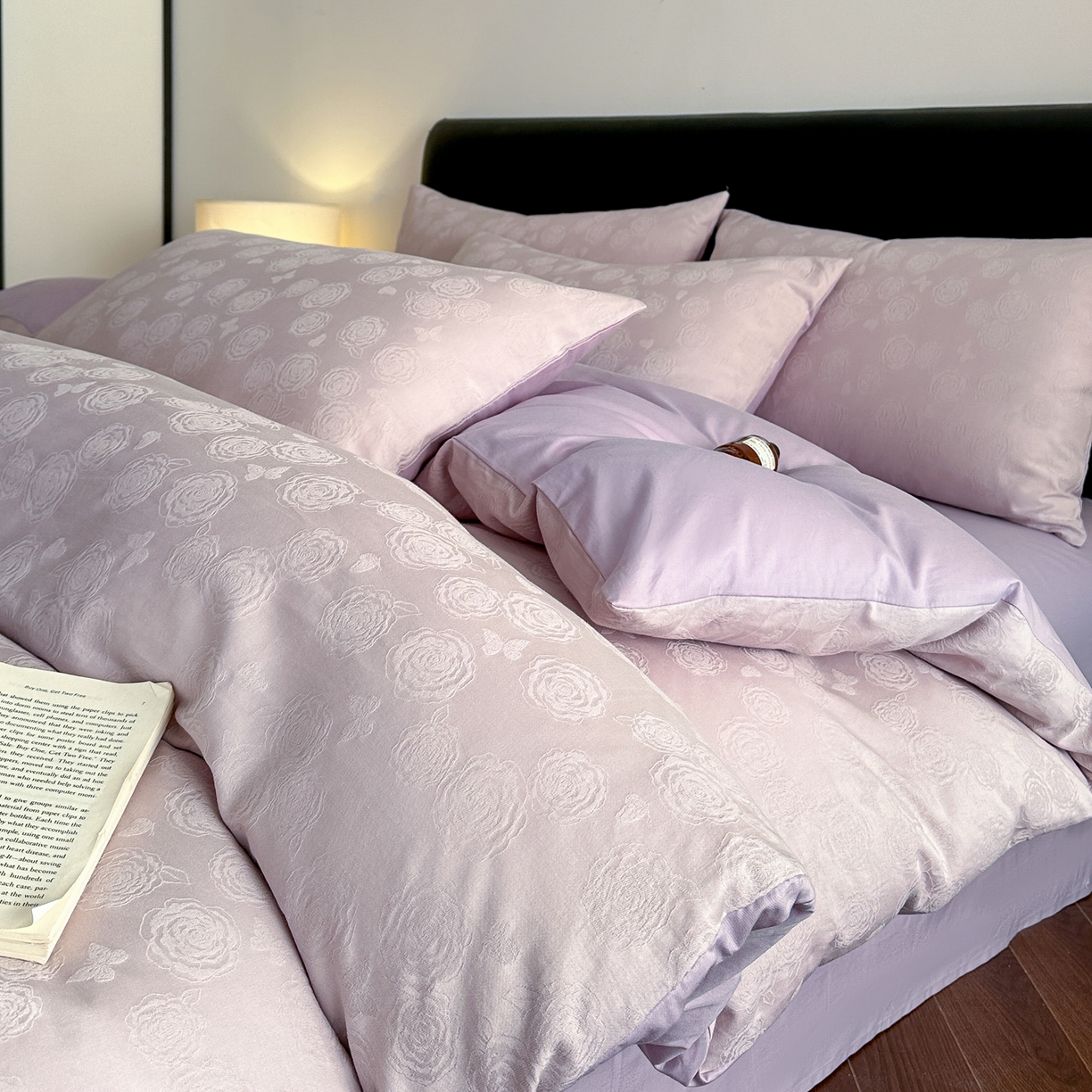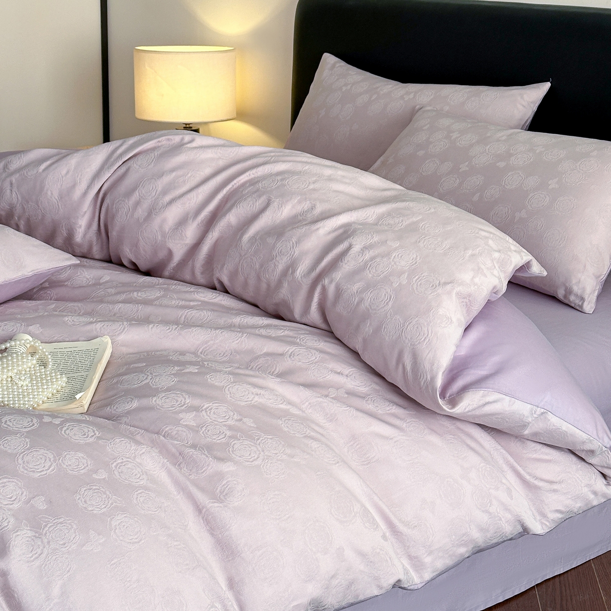 > 莱登卡奴 2026春夏新款全棉纯棉A类60S水洗浮雕立体提花四件套-柔美系列 蝶恋花丁香紫