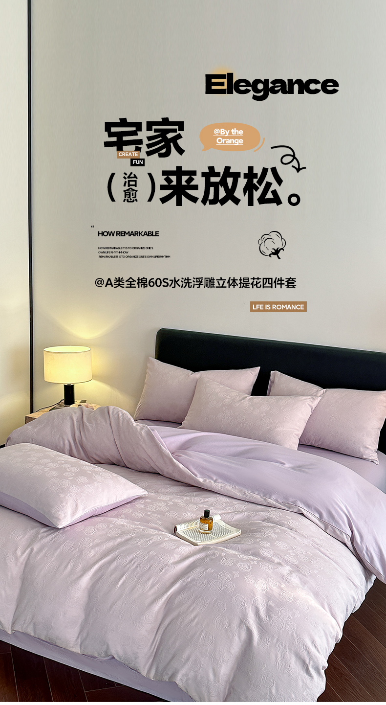 2026春夏新款全棉纯棉A类60S水洗浮雕立体提花四件套-柔美系列