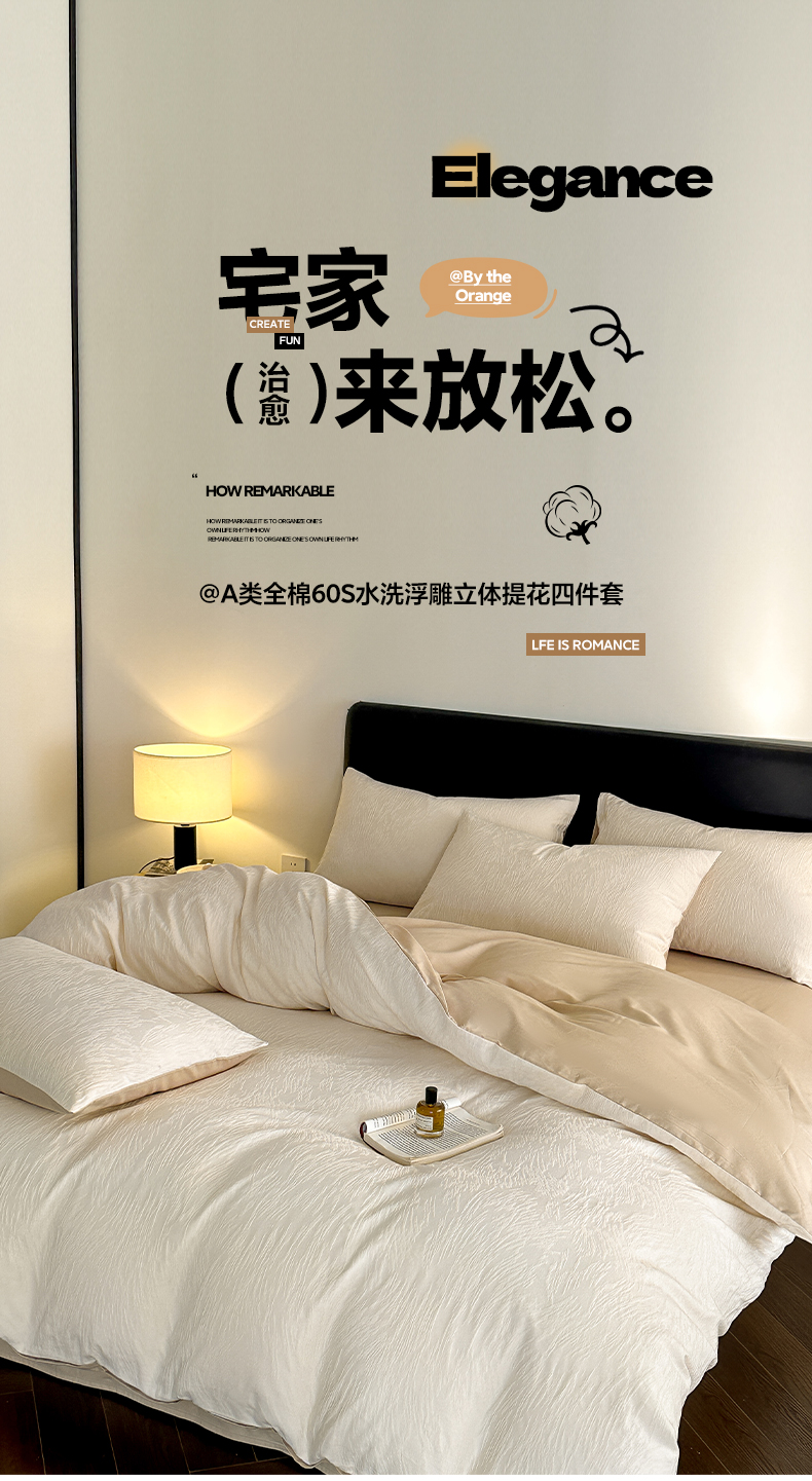 2026春夏新款全棉纯棉A类60S水洗浮雕立体提花四件套-柔美系列