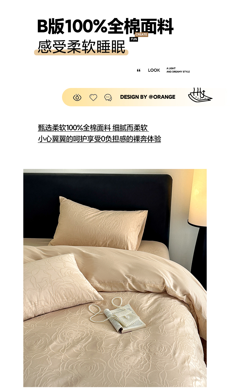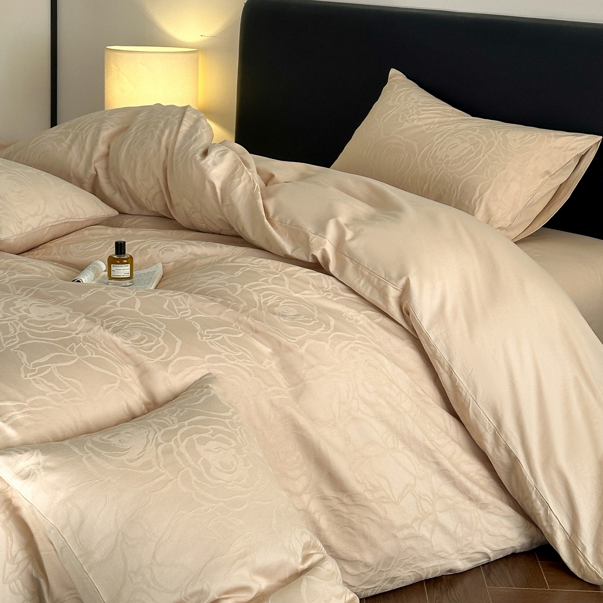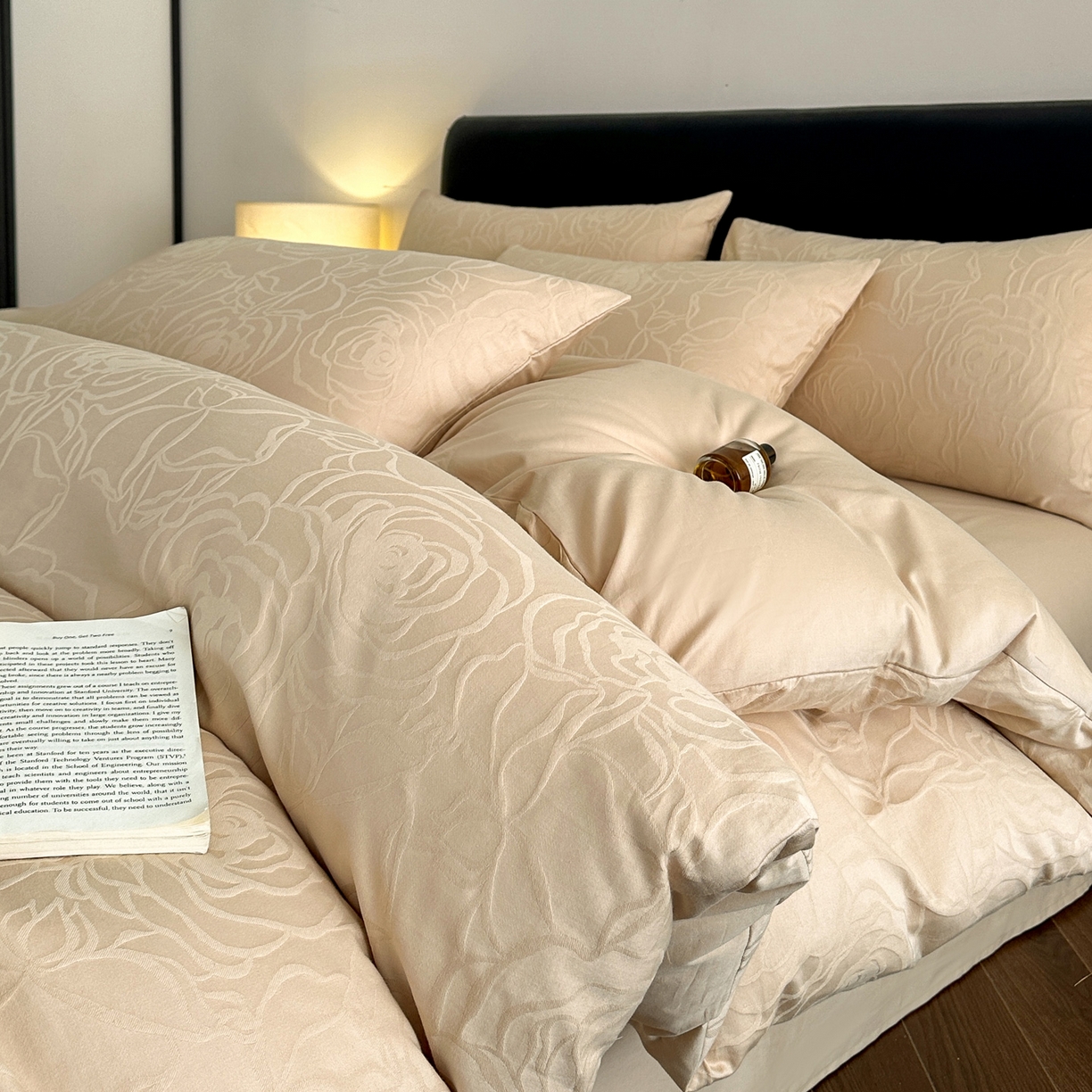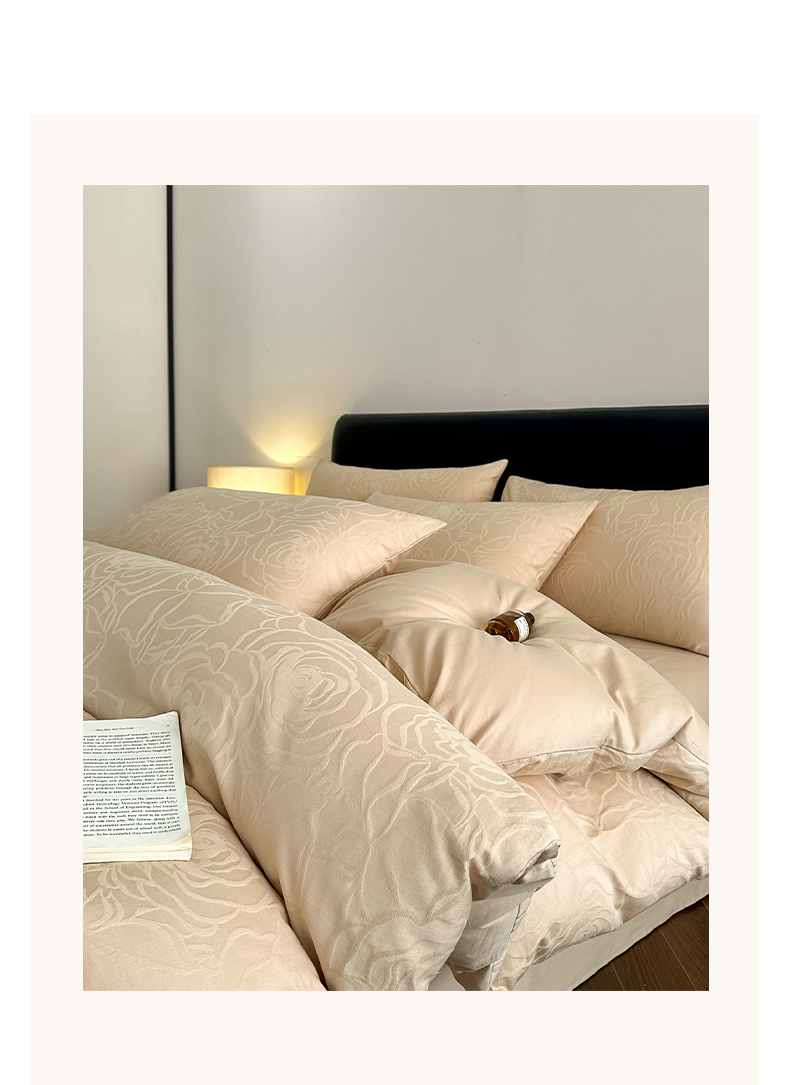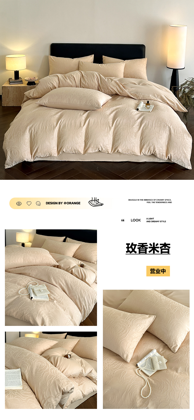 莱登卡奴 2026春夏新款全棉纯棉A类60S水洗浮雕立体提花四件套-柔美系列 玫香米杏
