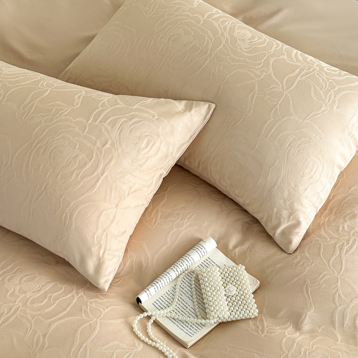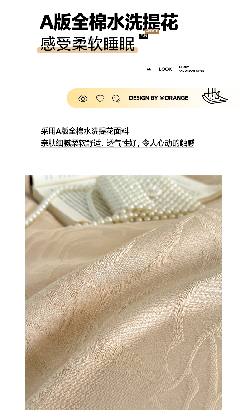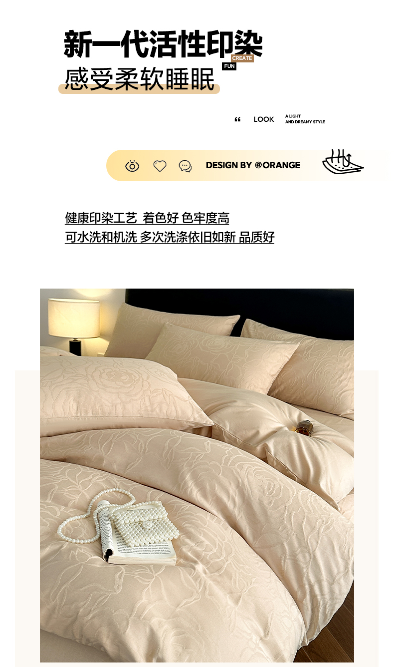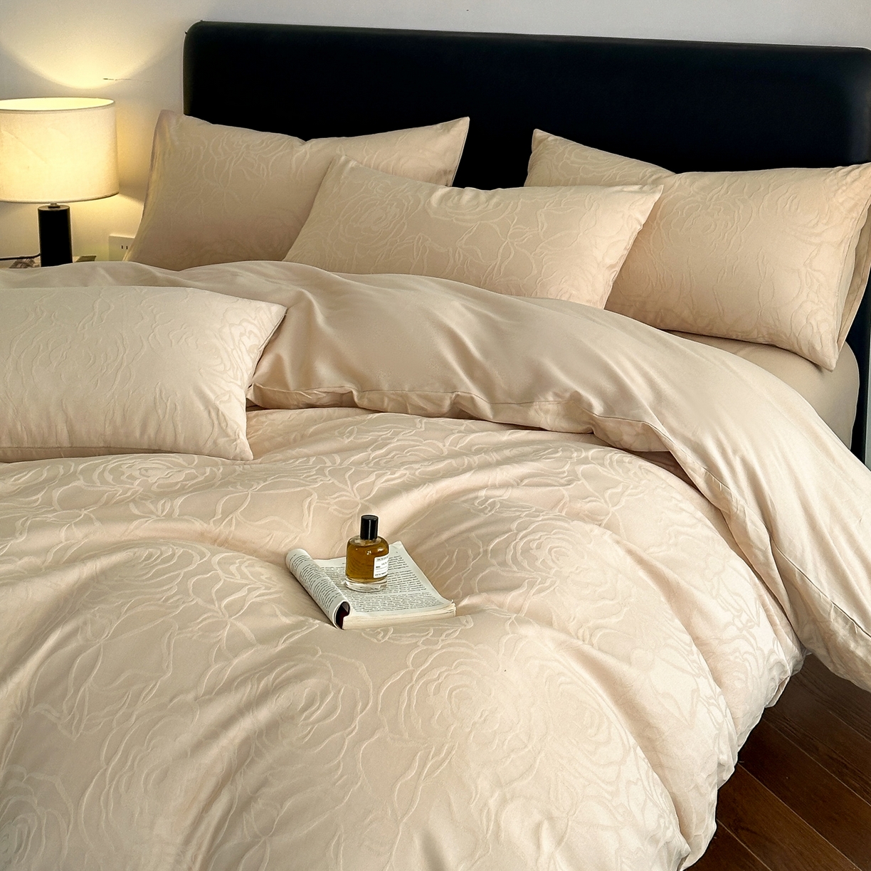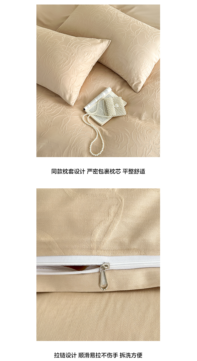 莱登卡奴 2026春夏新款全棉纯棉A类60S水洗浮雕立体提花四件套-柔美系列 玫香米杏