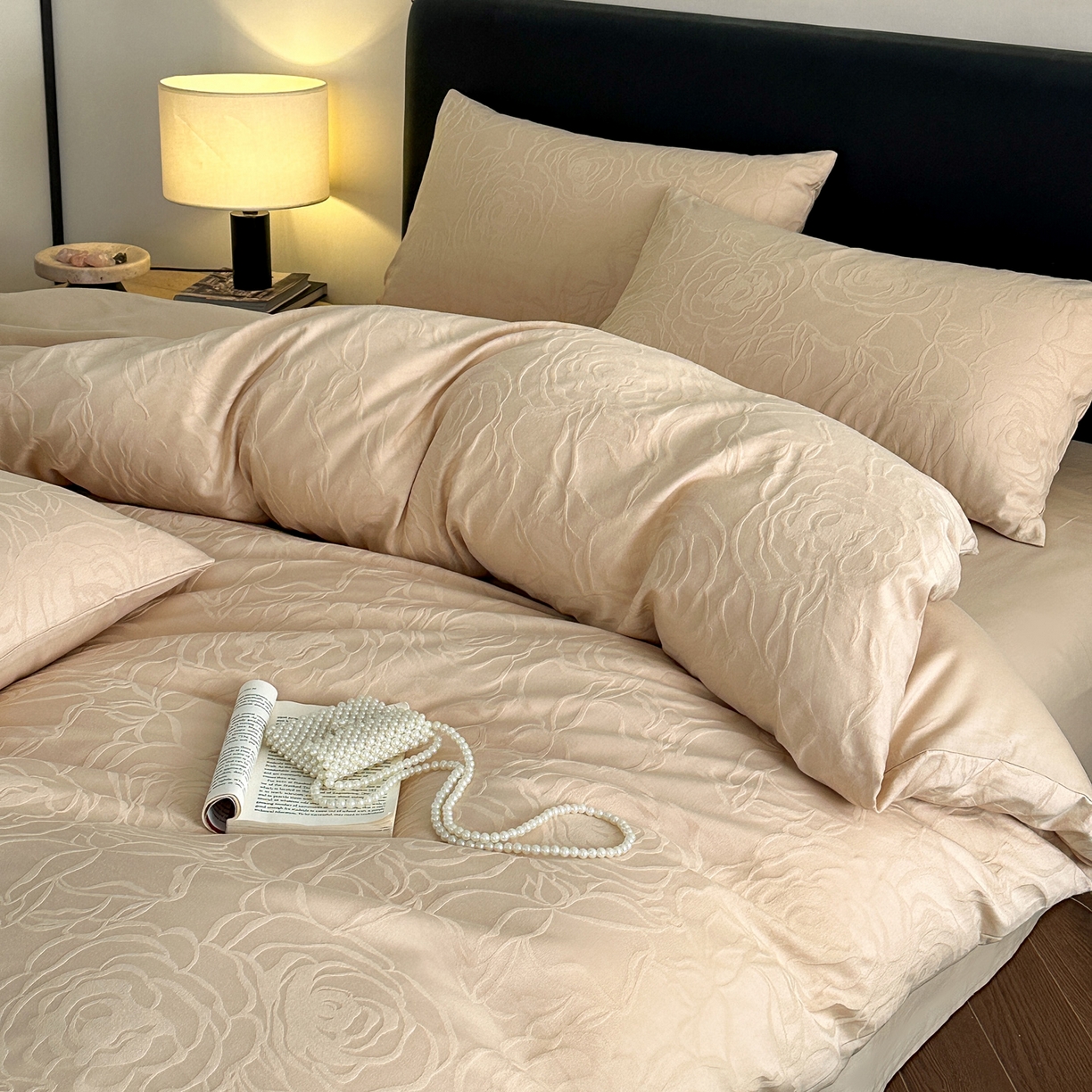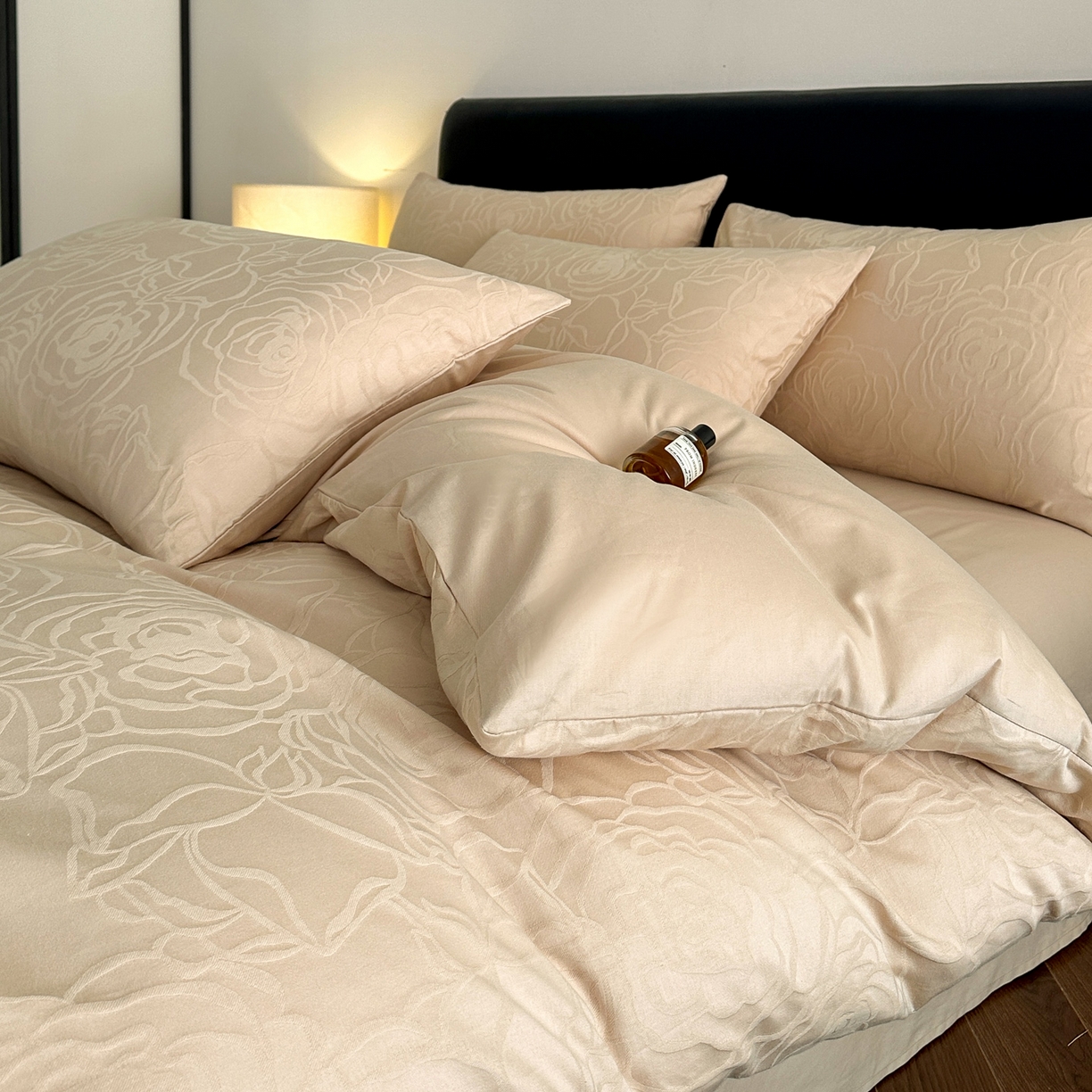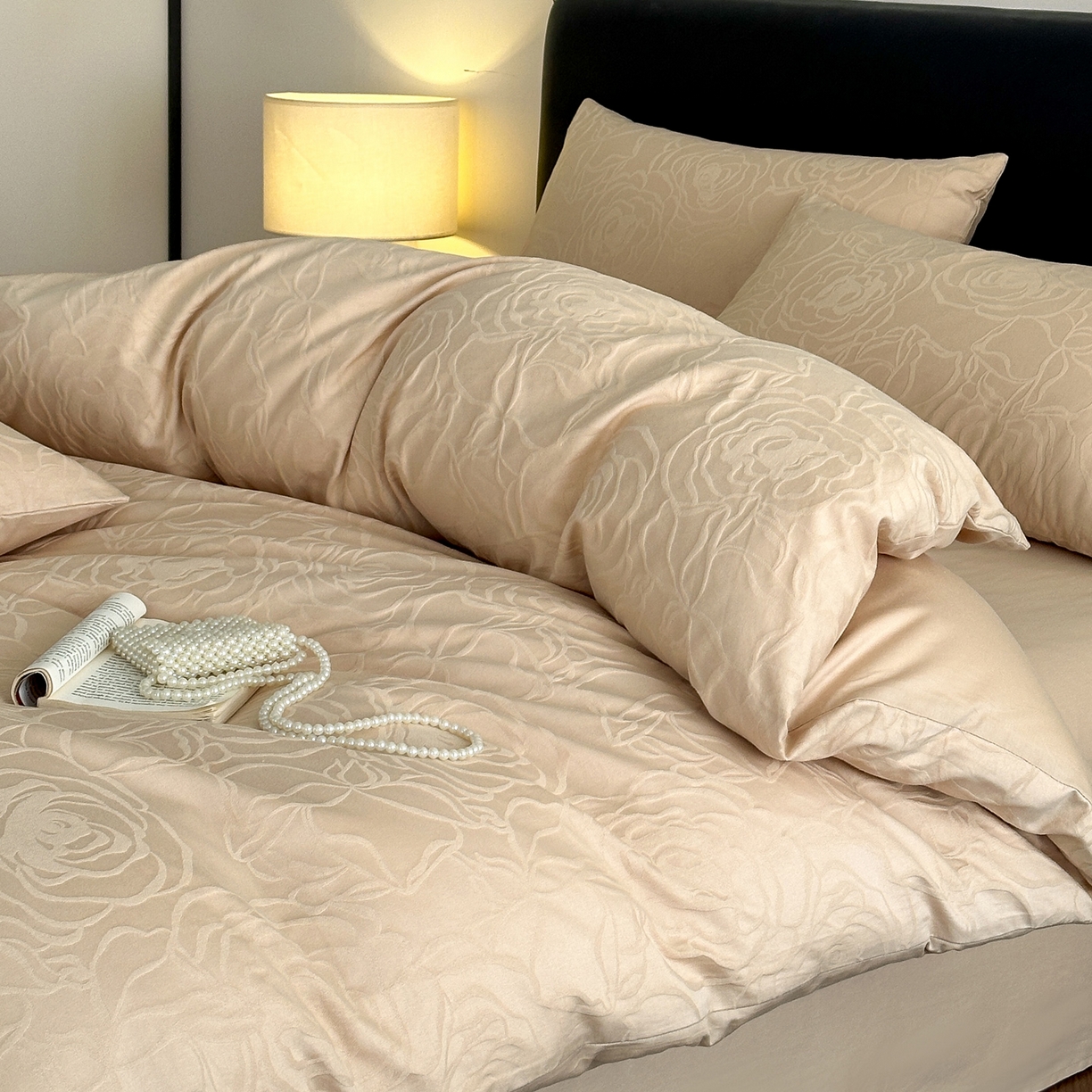 > 莱登卡奴 2026春夏新款全棉纯棉A类60S水洗浮雕立体提花四件套-柔美系列 玫香米杏