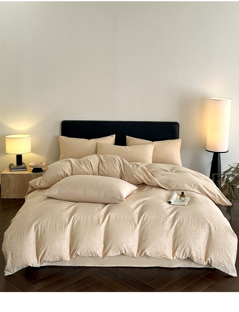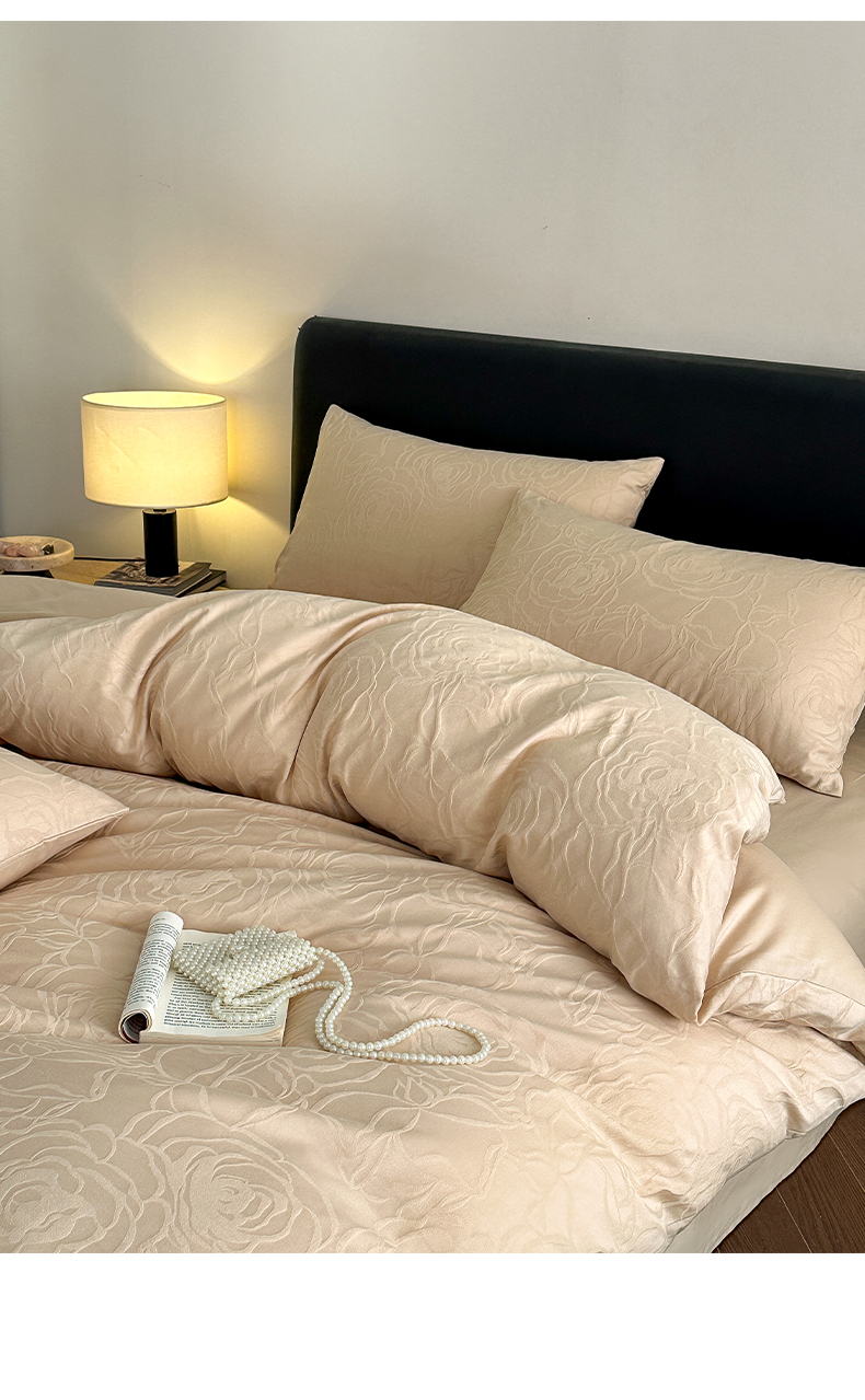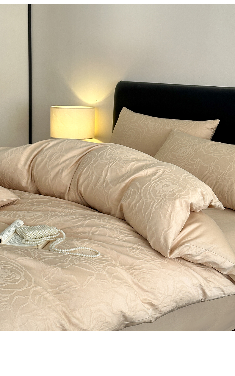 > 莱登卡奴 2026春夏新款全棉纯棉A类60S水洗浮雕立体提花四件套-柔美系列 玫香米杏