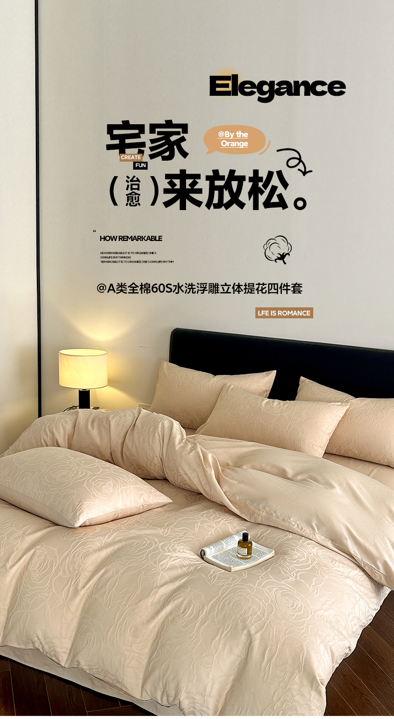 2026春夏新款全棉纯棉A类60S水洗浮雕立体提花四件套-柔美系列