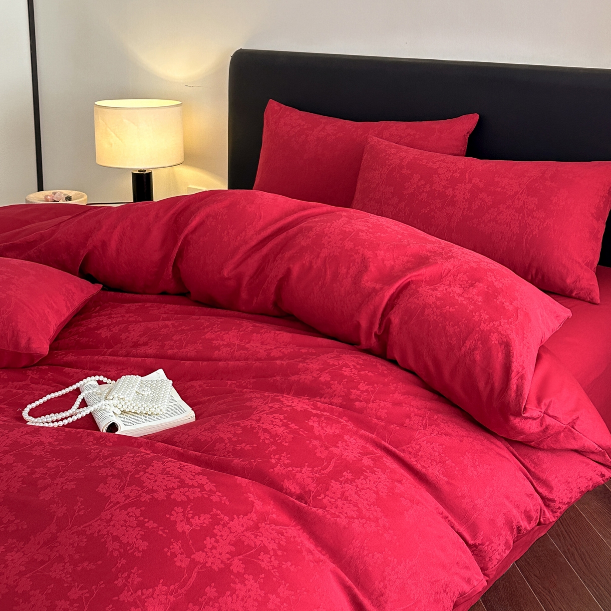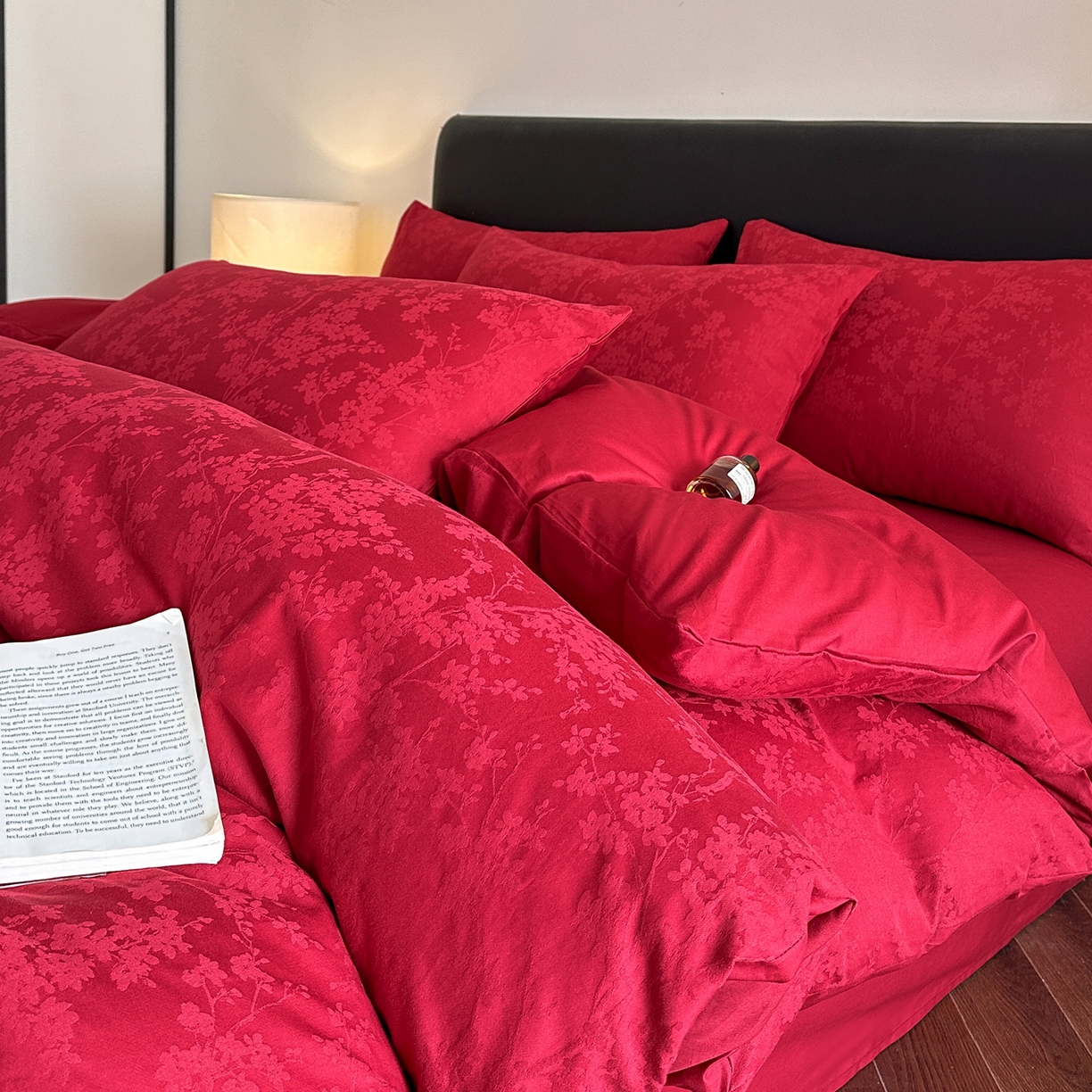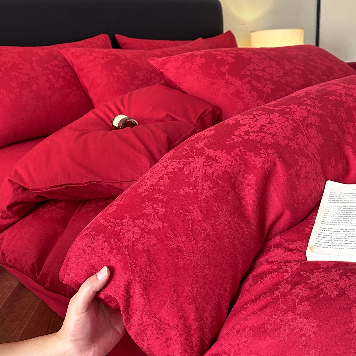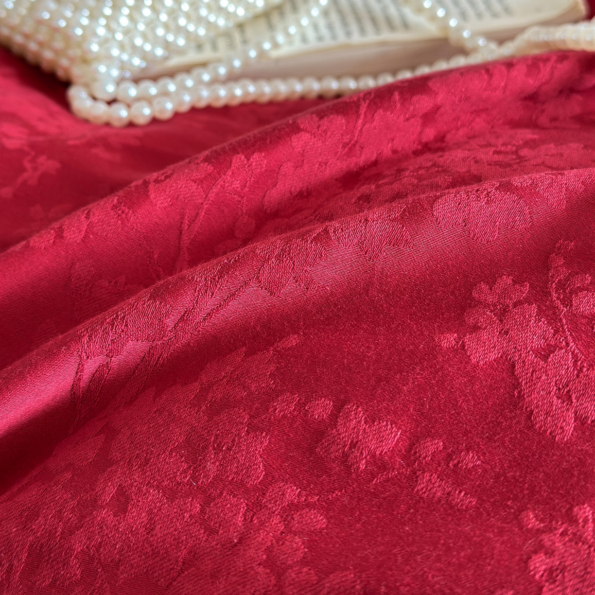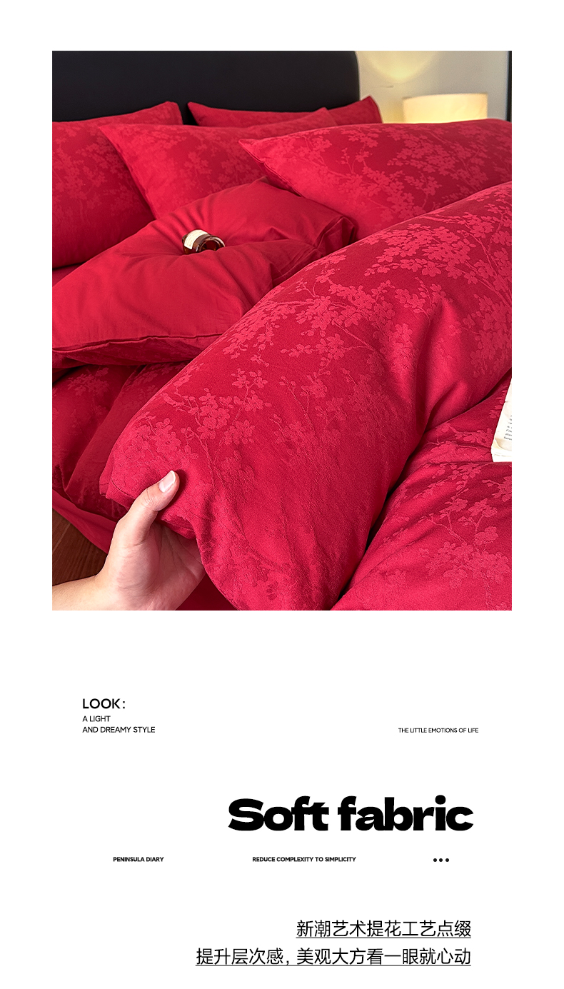 莱登卡奴 2026春夏新款全棉纯棉A类60S水洗浮雕立体提花四件套-柔美系列 梦幻花园红