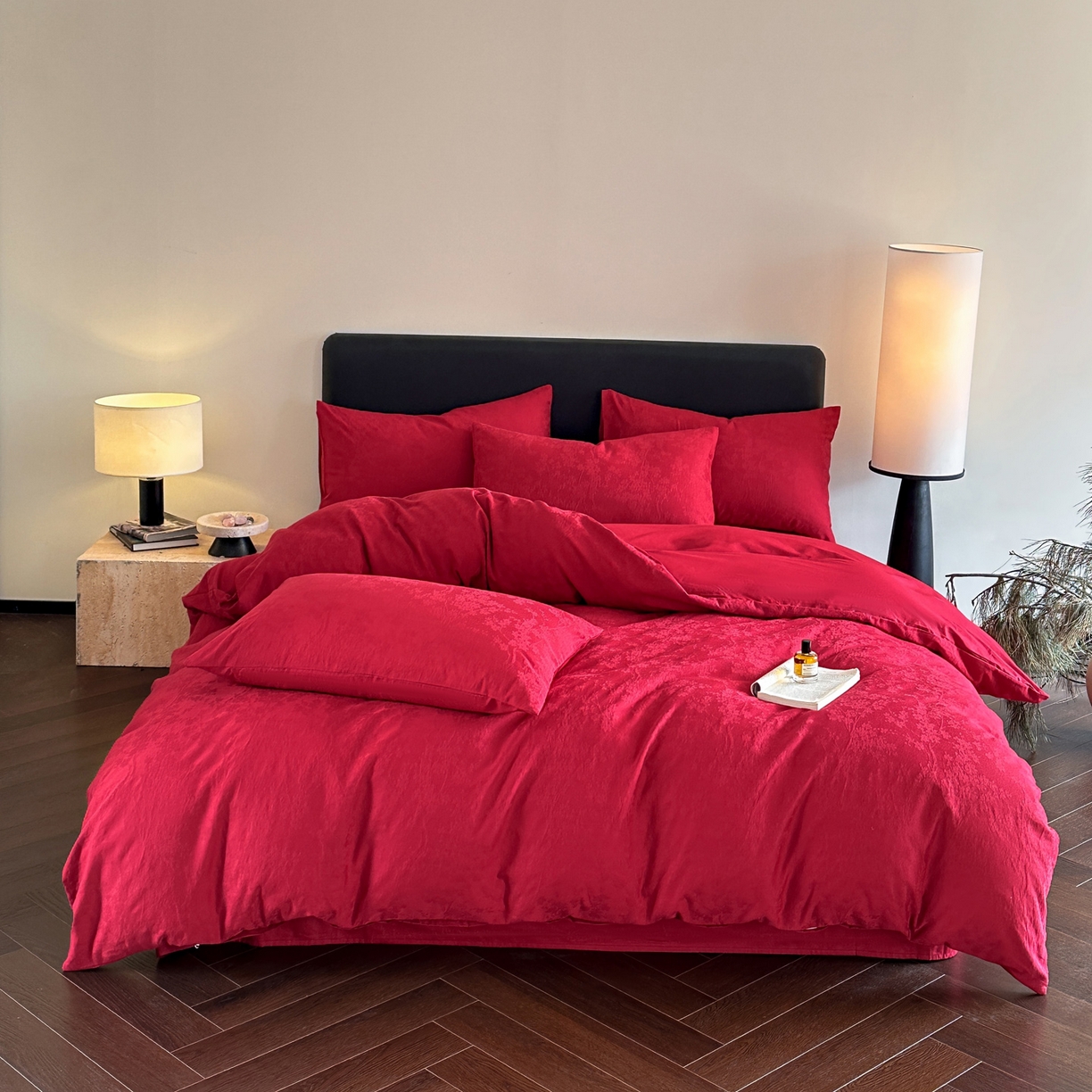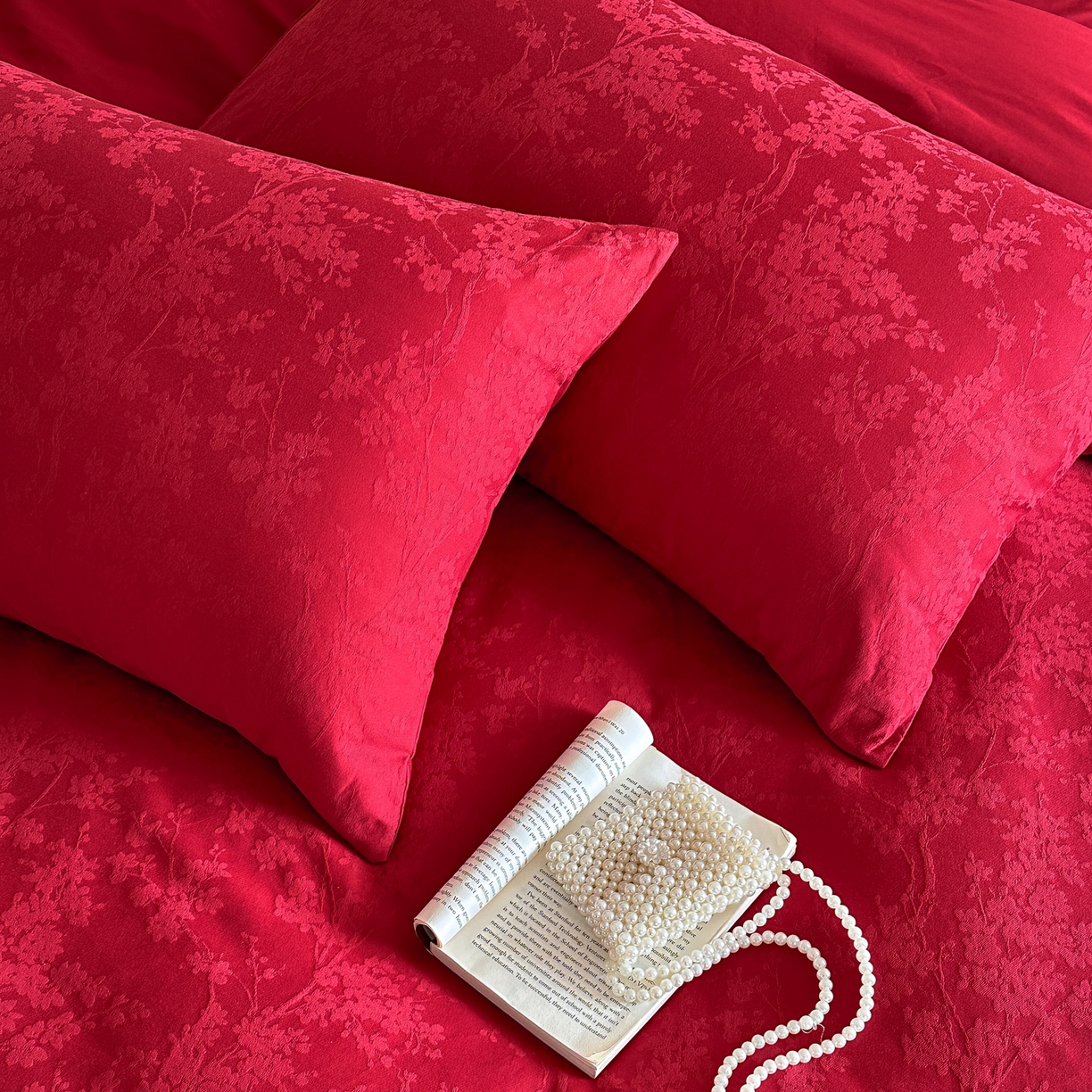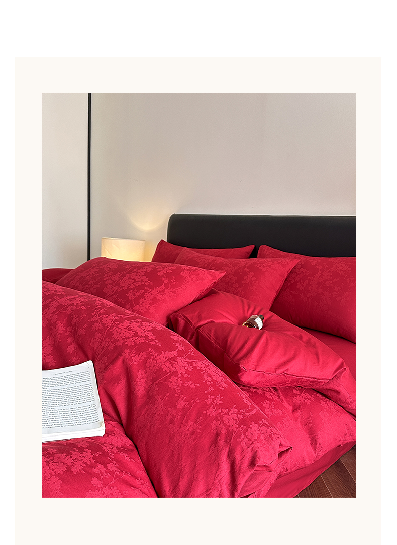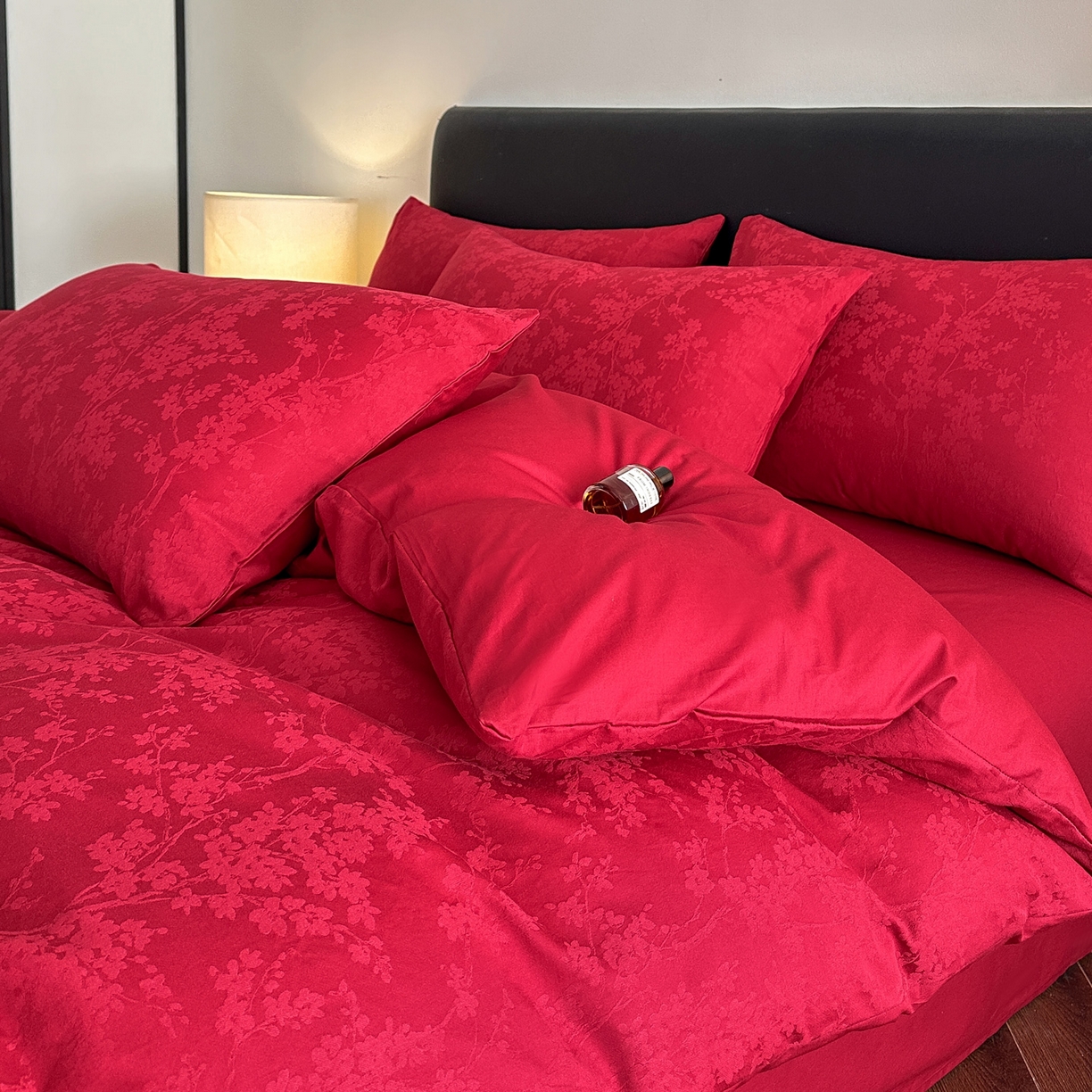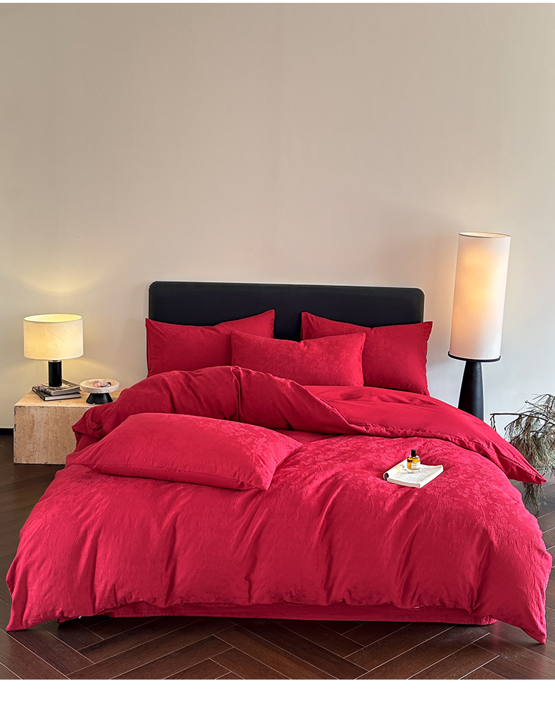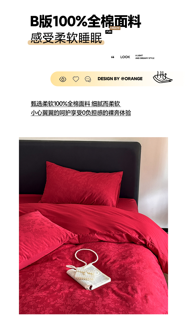 莱登卡奴 2026春夏新款全棉纯棉A类60S水洗浮雕立体提花四件套-柔美系列 梦幻花园红