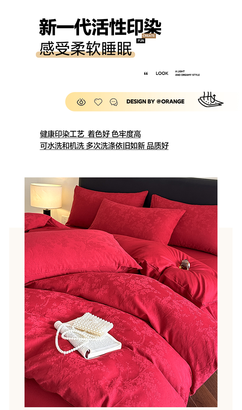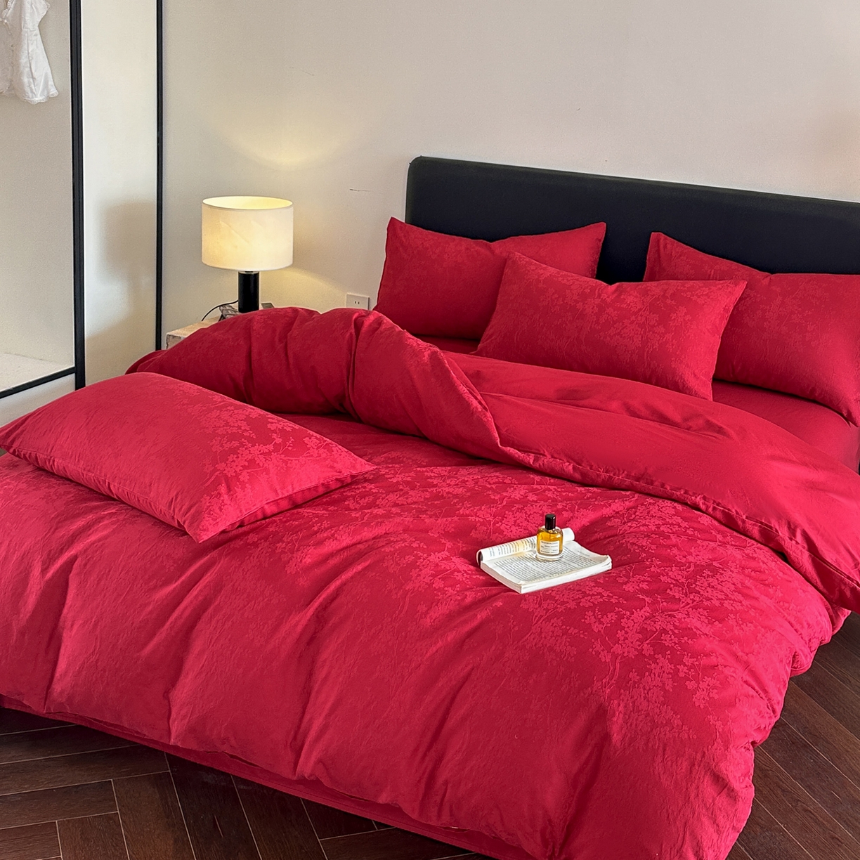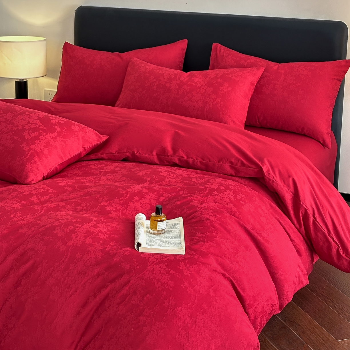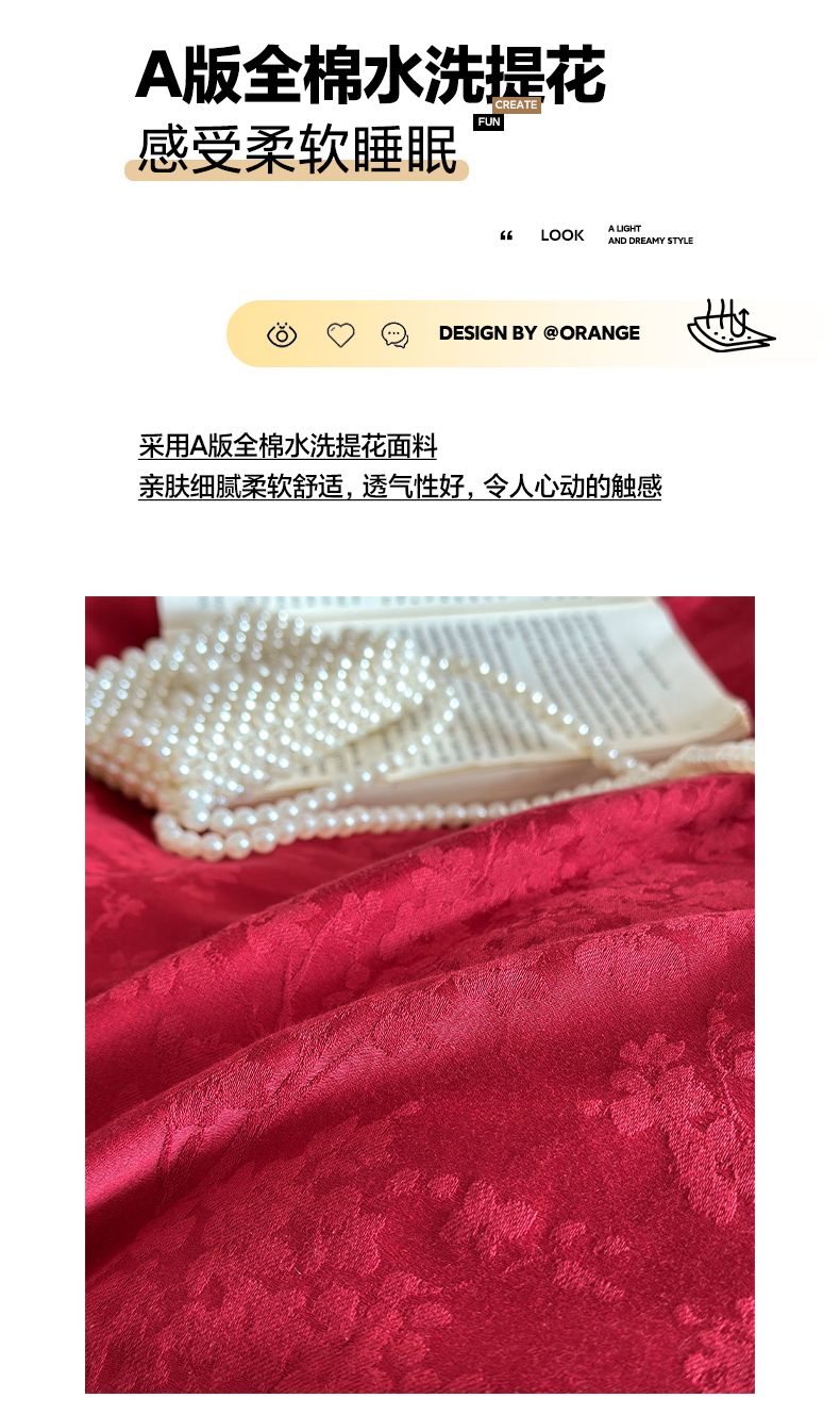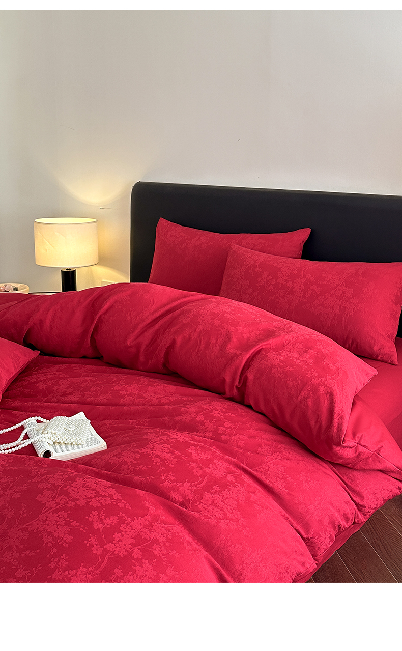 莱登卡奴 2026春夏新款全棉纯棉A类60S水洗浮雕立体提花四件套-柔美系列 梦幻花园红
