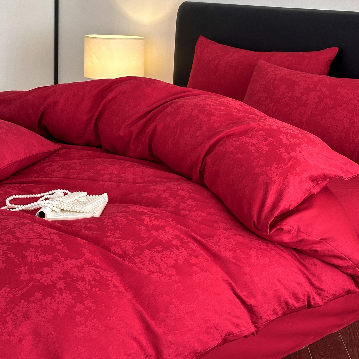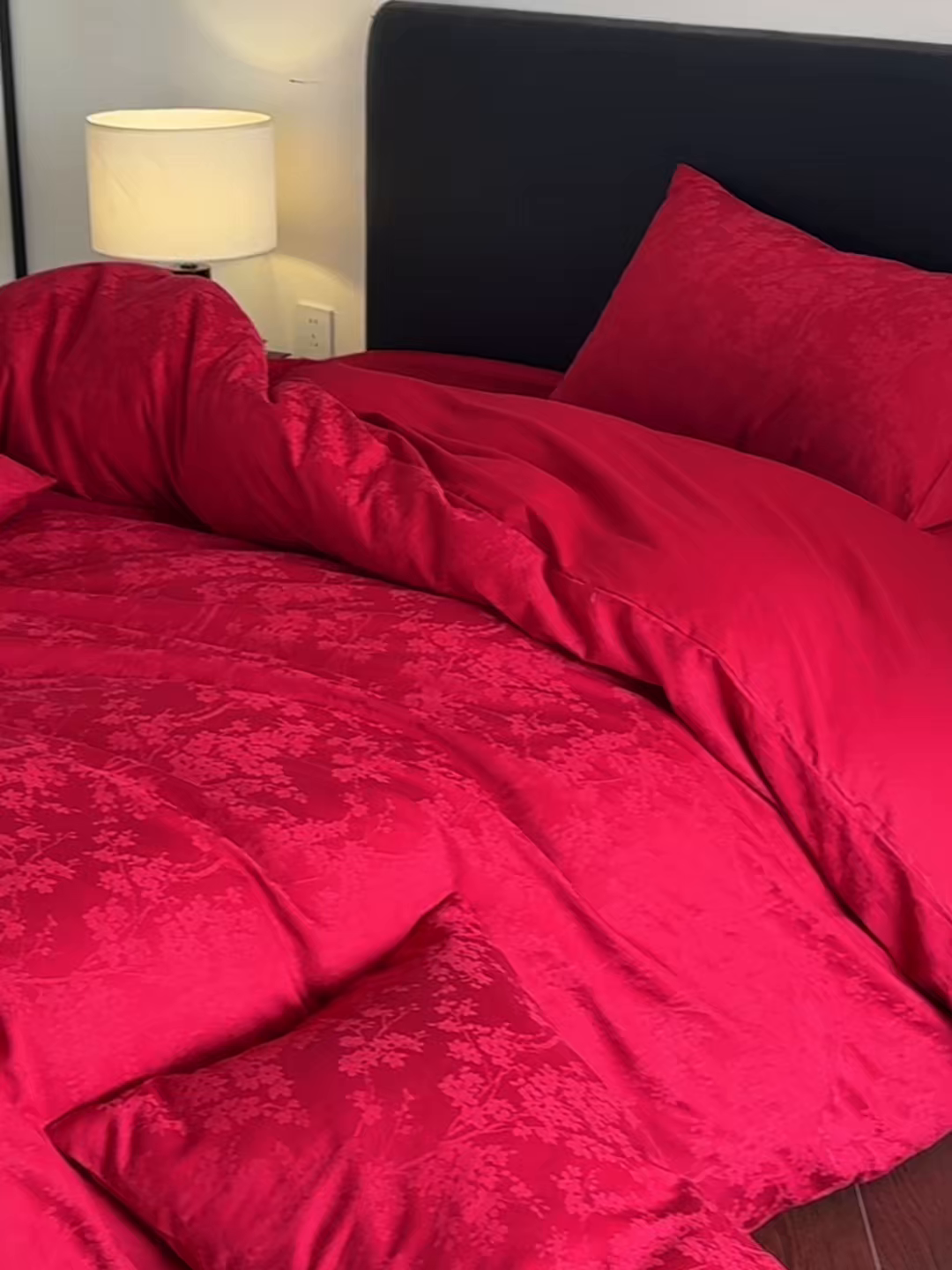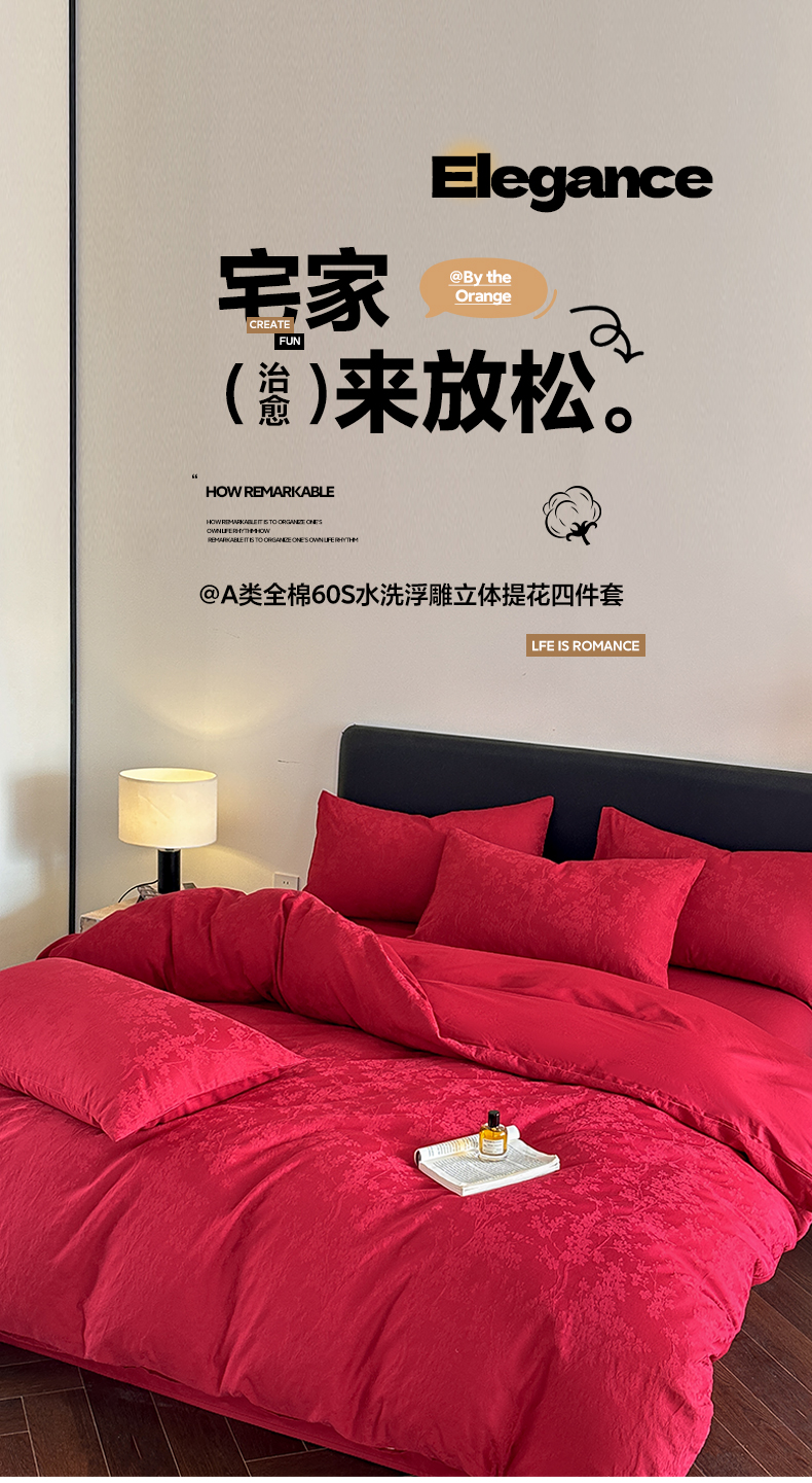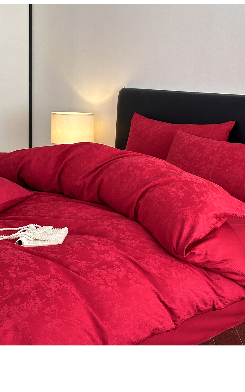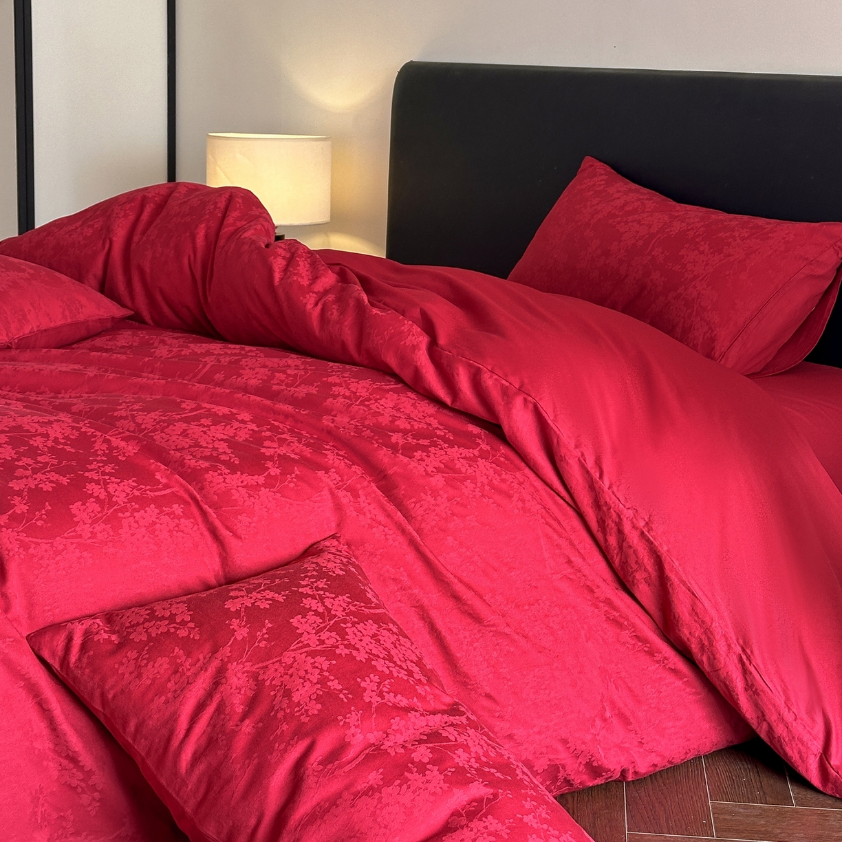 莱登卡奴 2026春夏新款全棉纯棉A类60S水洗浮雕立体提花四件套-柔美系列 梦幻花园红