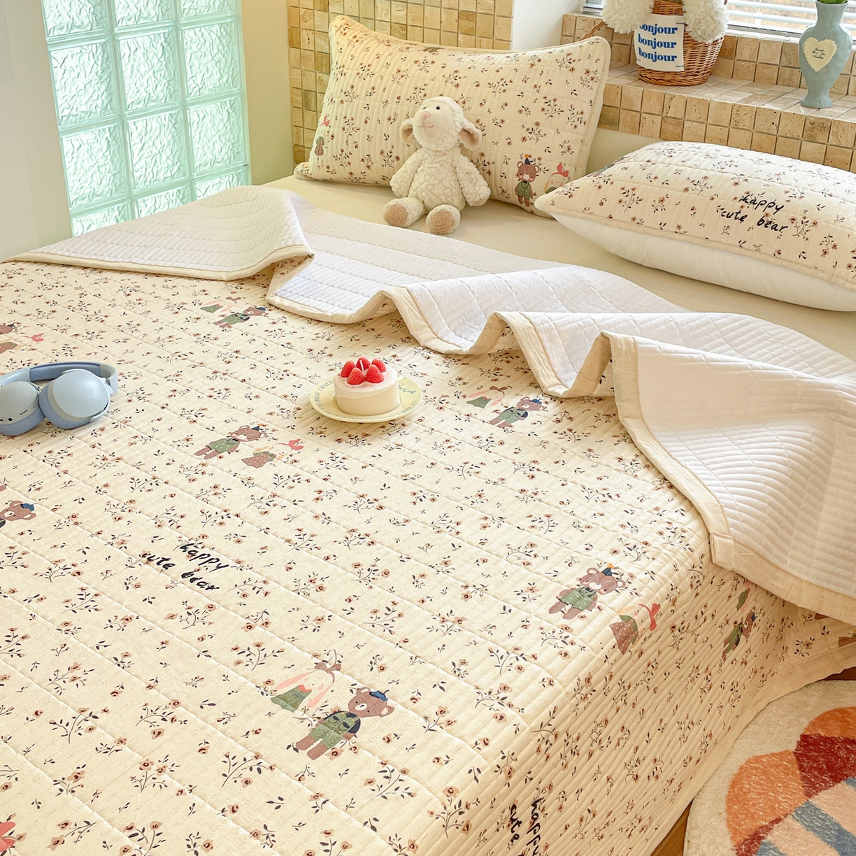 25新款全棉A类水洗棉提花烫画大豆被-夏被