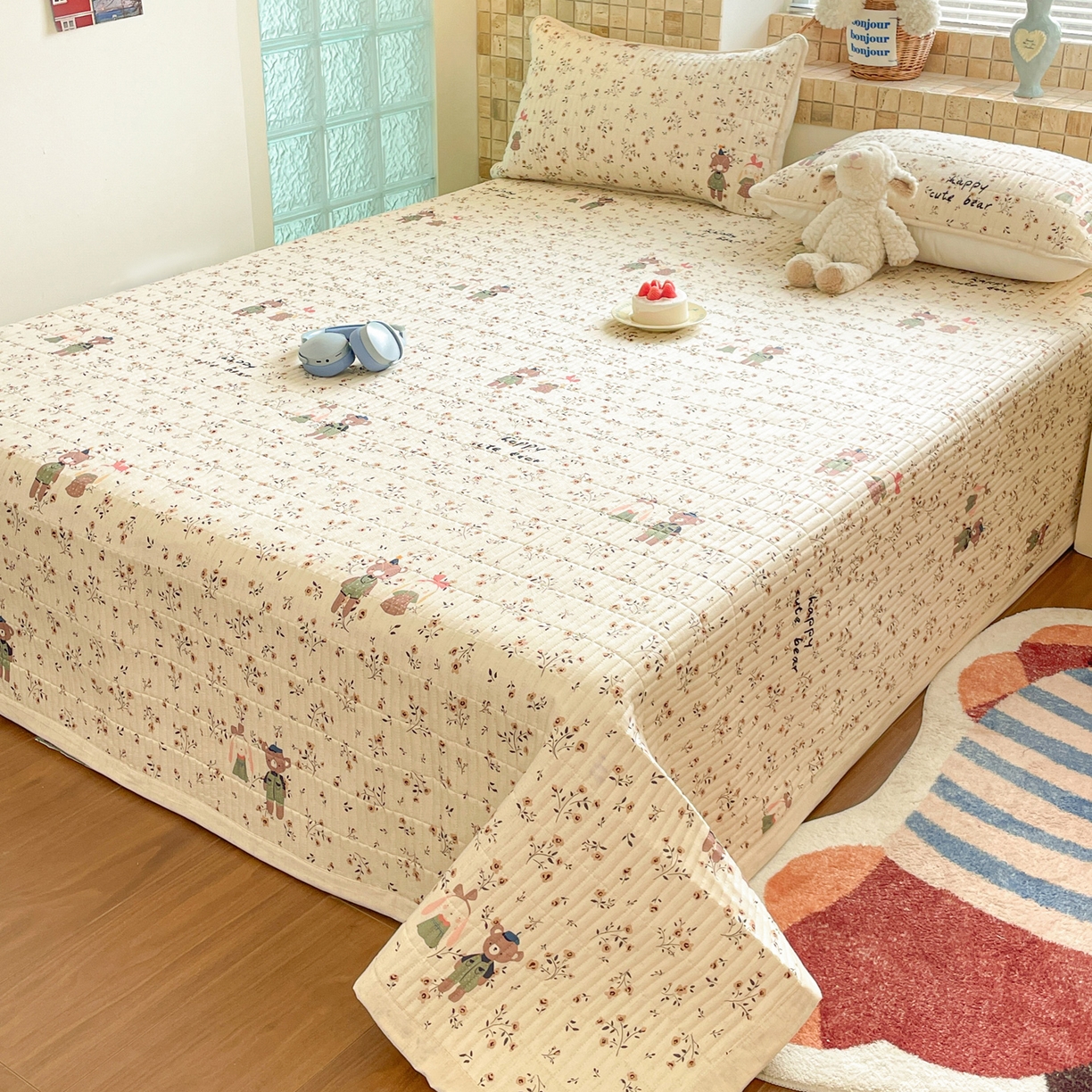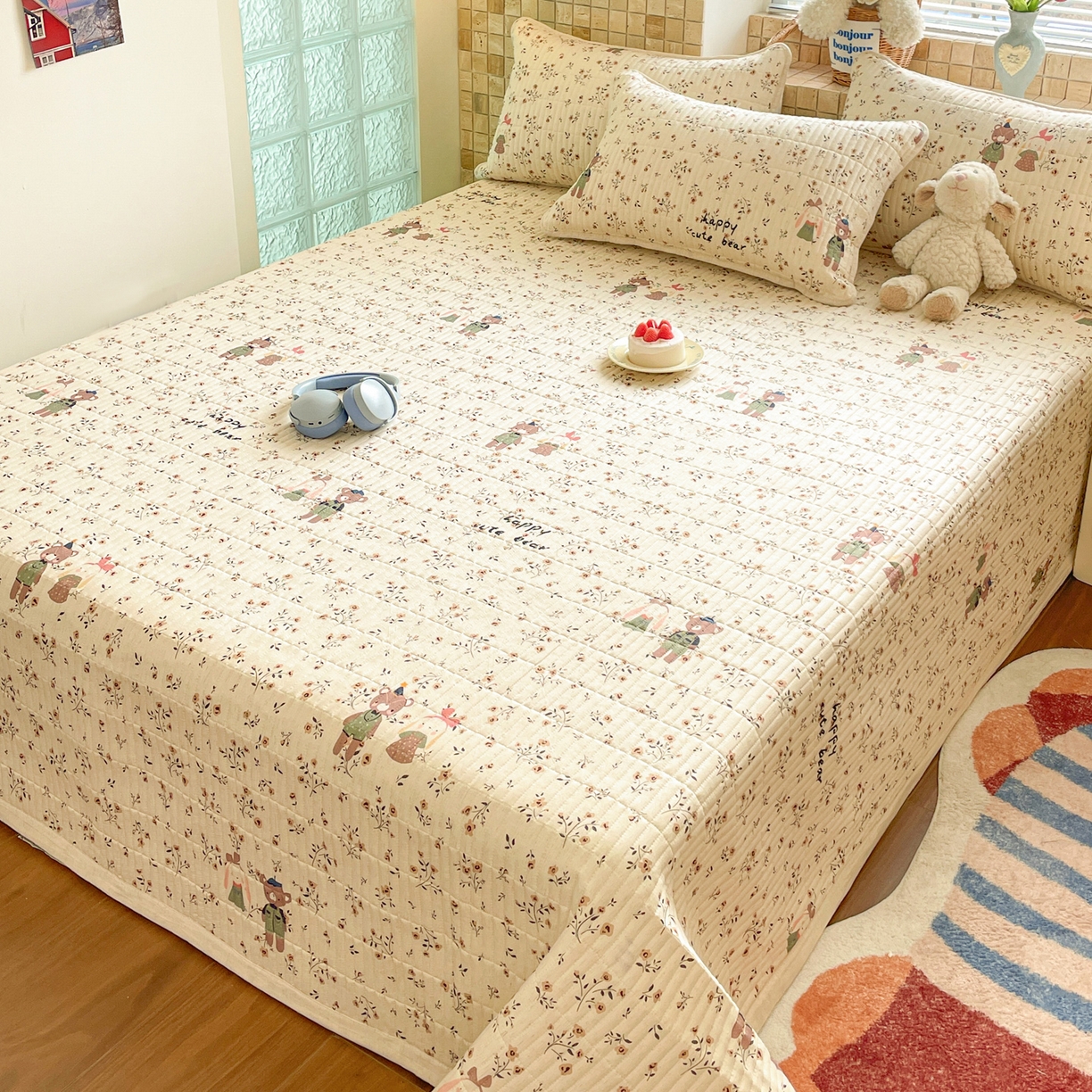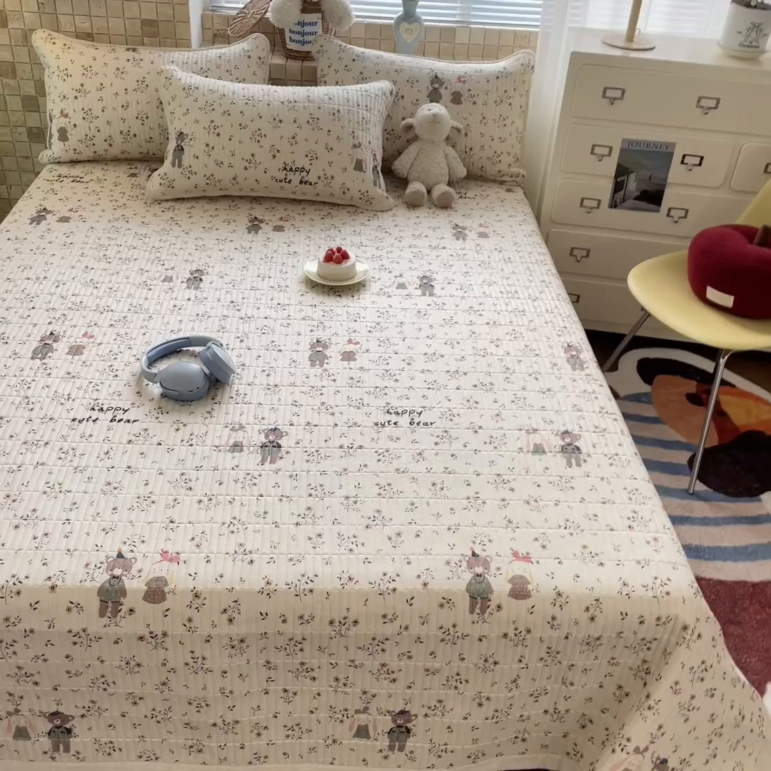 2025新款全棉磨毛加绒夹棉床盖卡通系列