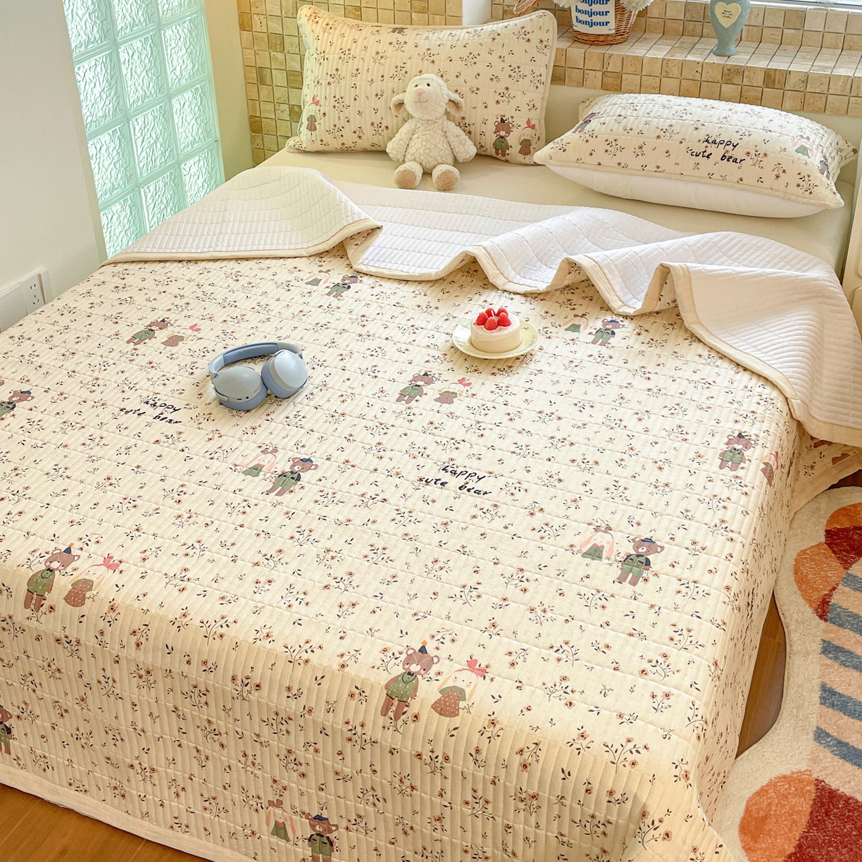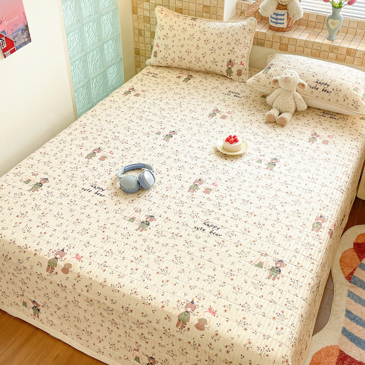 25新款A类凉感丝熊豆豆凉席床笠款