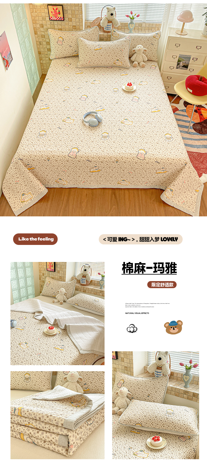 莱登卡奴 2026新款A类水洗棉麻15%麻85%棉夹棉床盖 棉麻-艾米