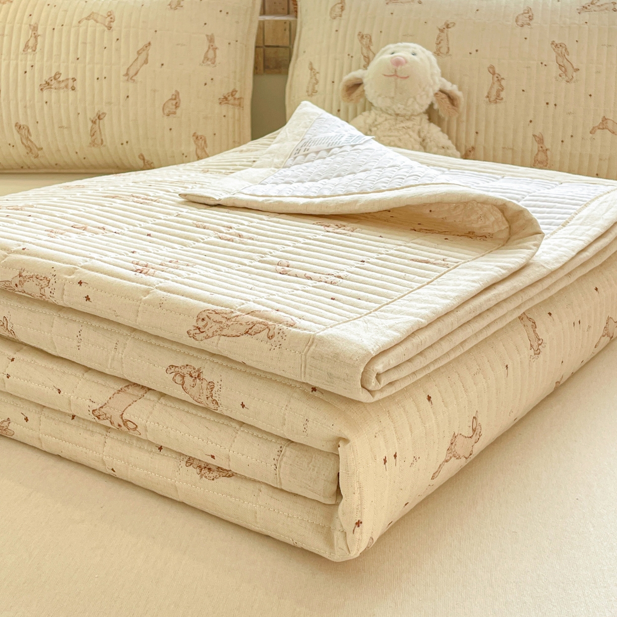 > 莱登卡奴 2026新款A类水洗棉麻15%麻85%棉夹棉床盖 棉麻-奔跑