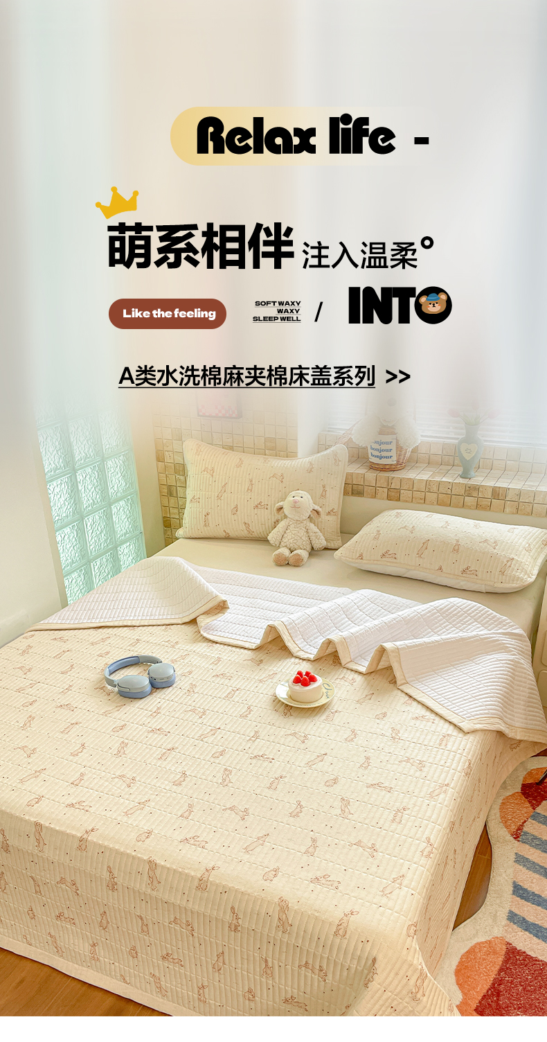 2026新款A类水洗棉麻15%麻85%棉夹棉床盖