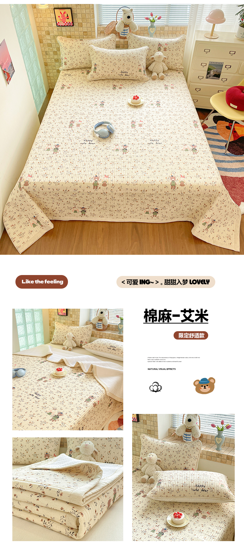 莱登卡奴 2026新款A类水洗棉麻15%麻85%棉夹棉床盖 棉麻-奔跑