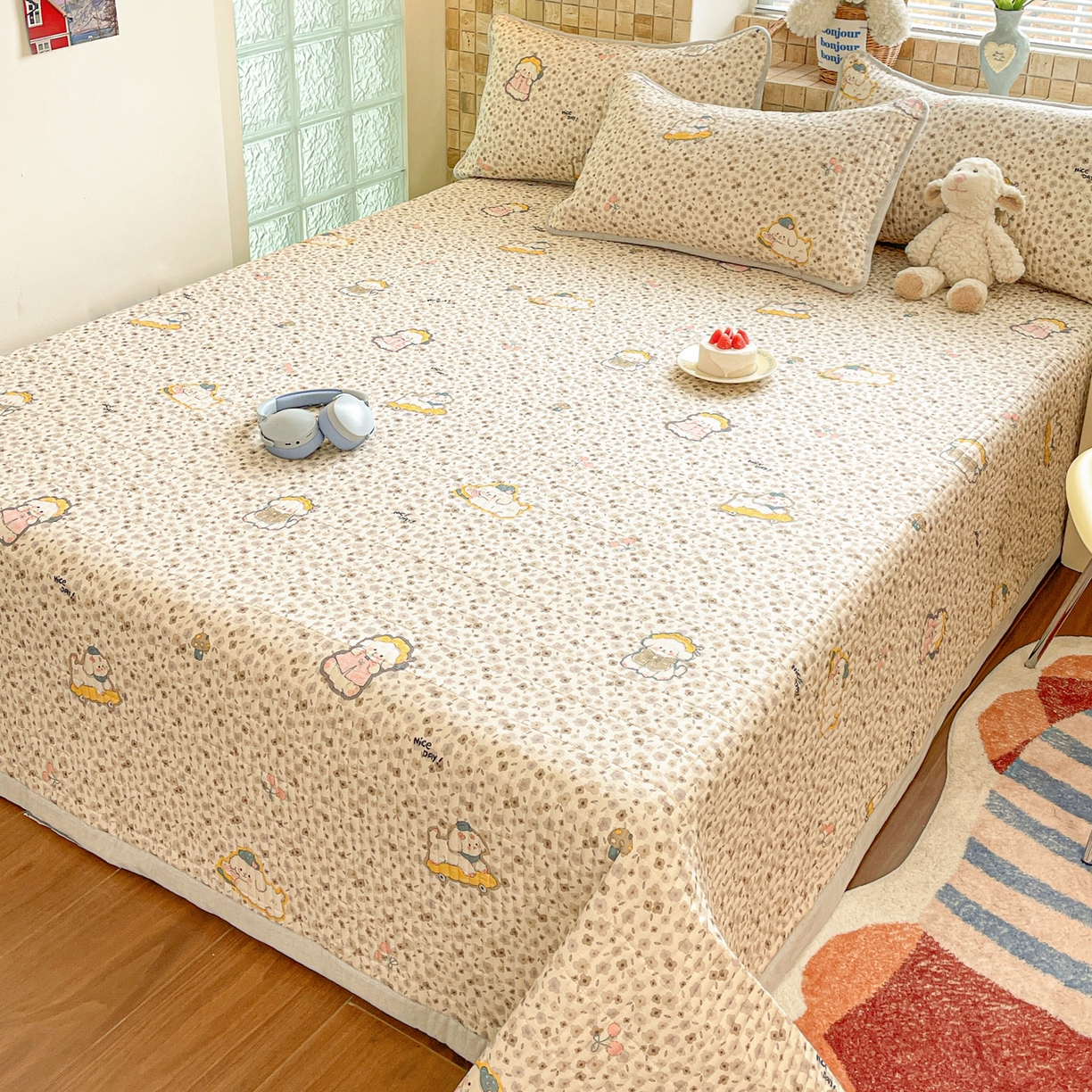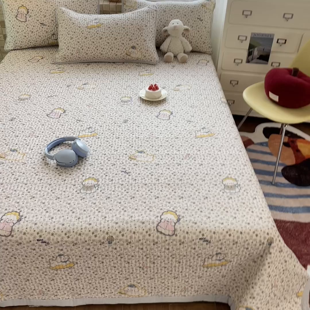 2025新款全棉磨毛加绒夹棉床盖卡通系列