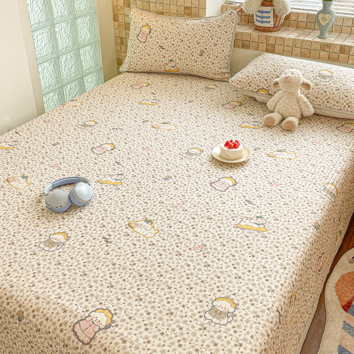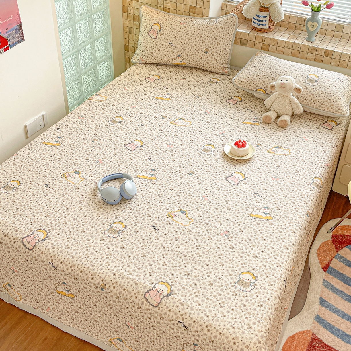 25新款A类凉感丝熊豆豆凉席床笠款