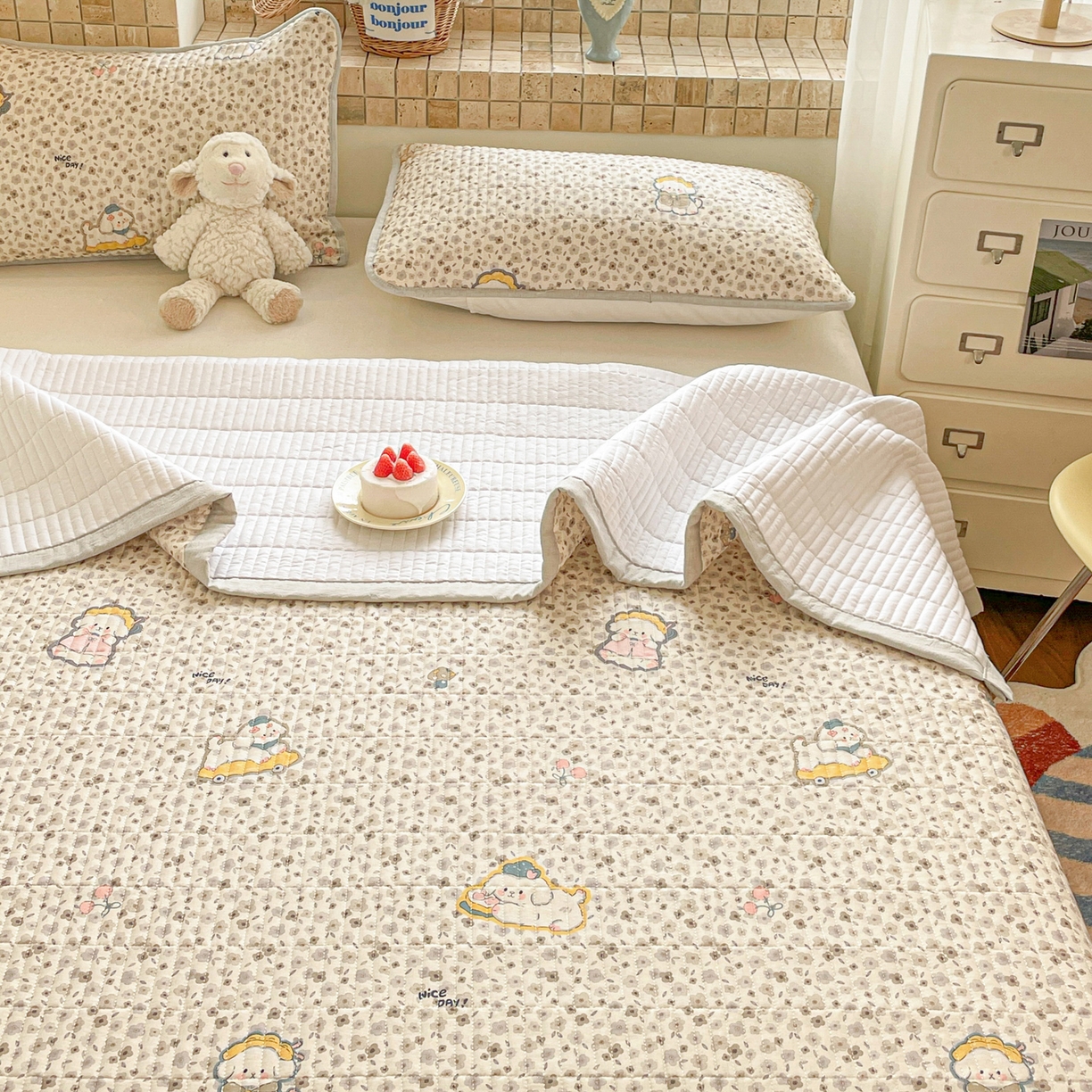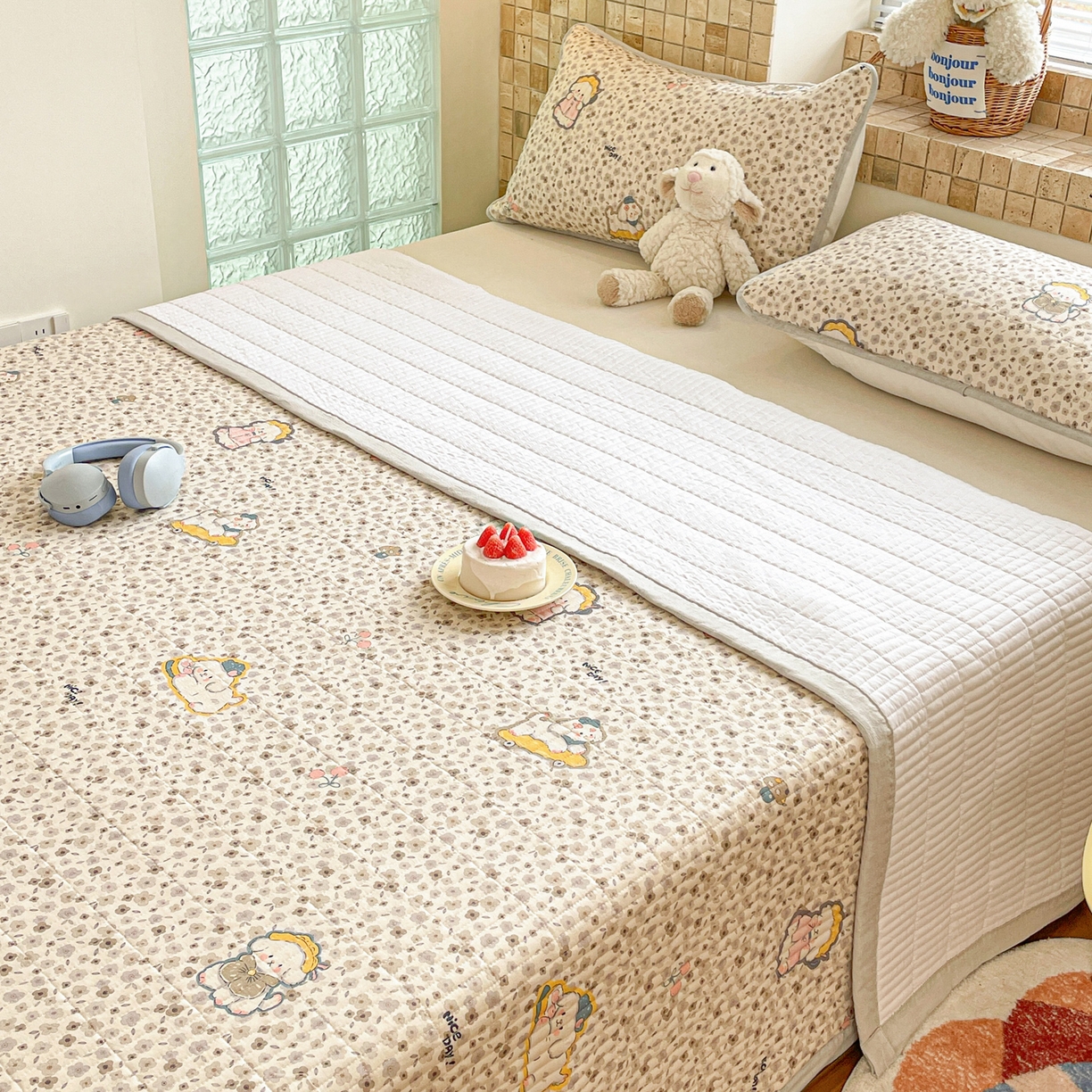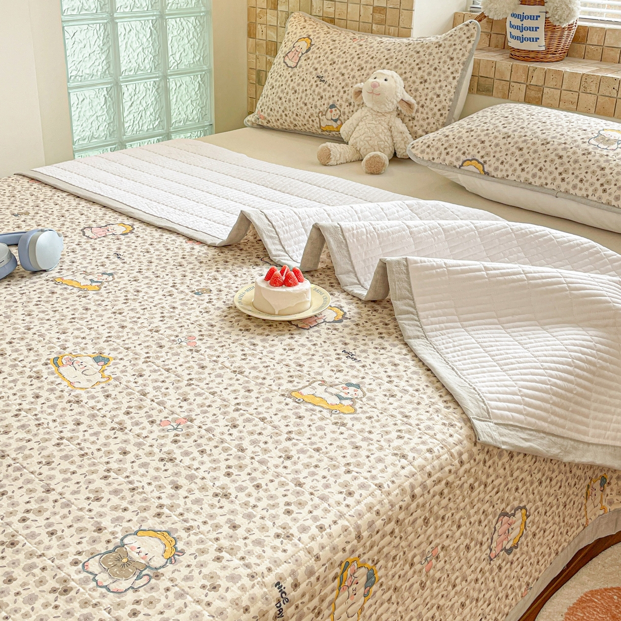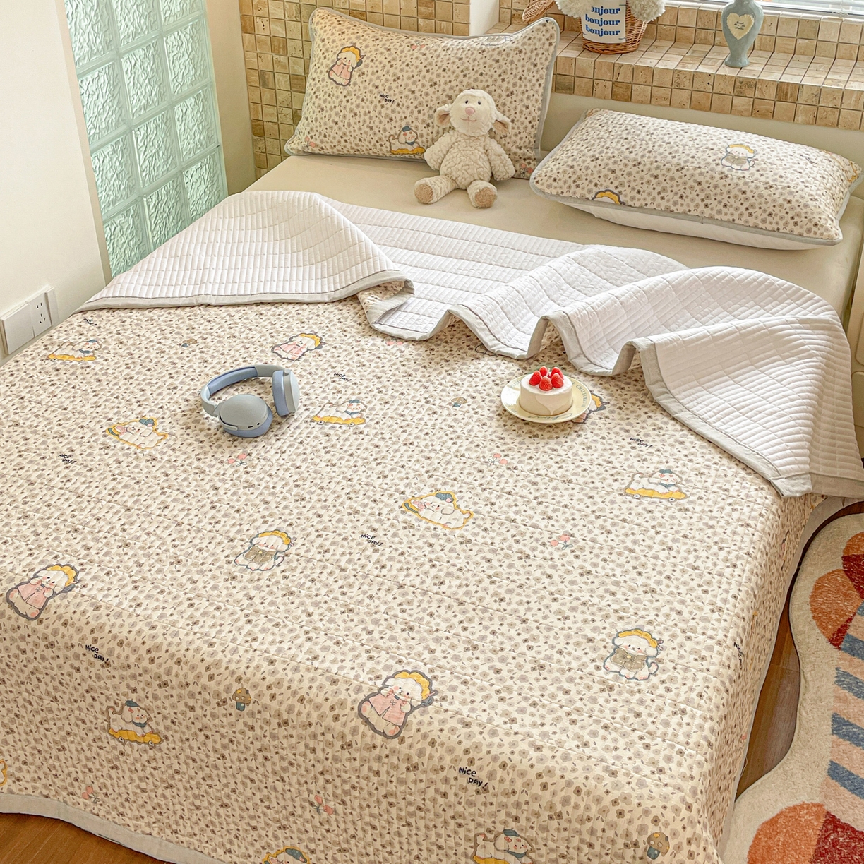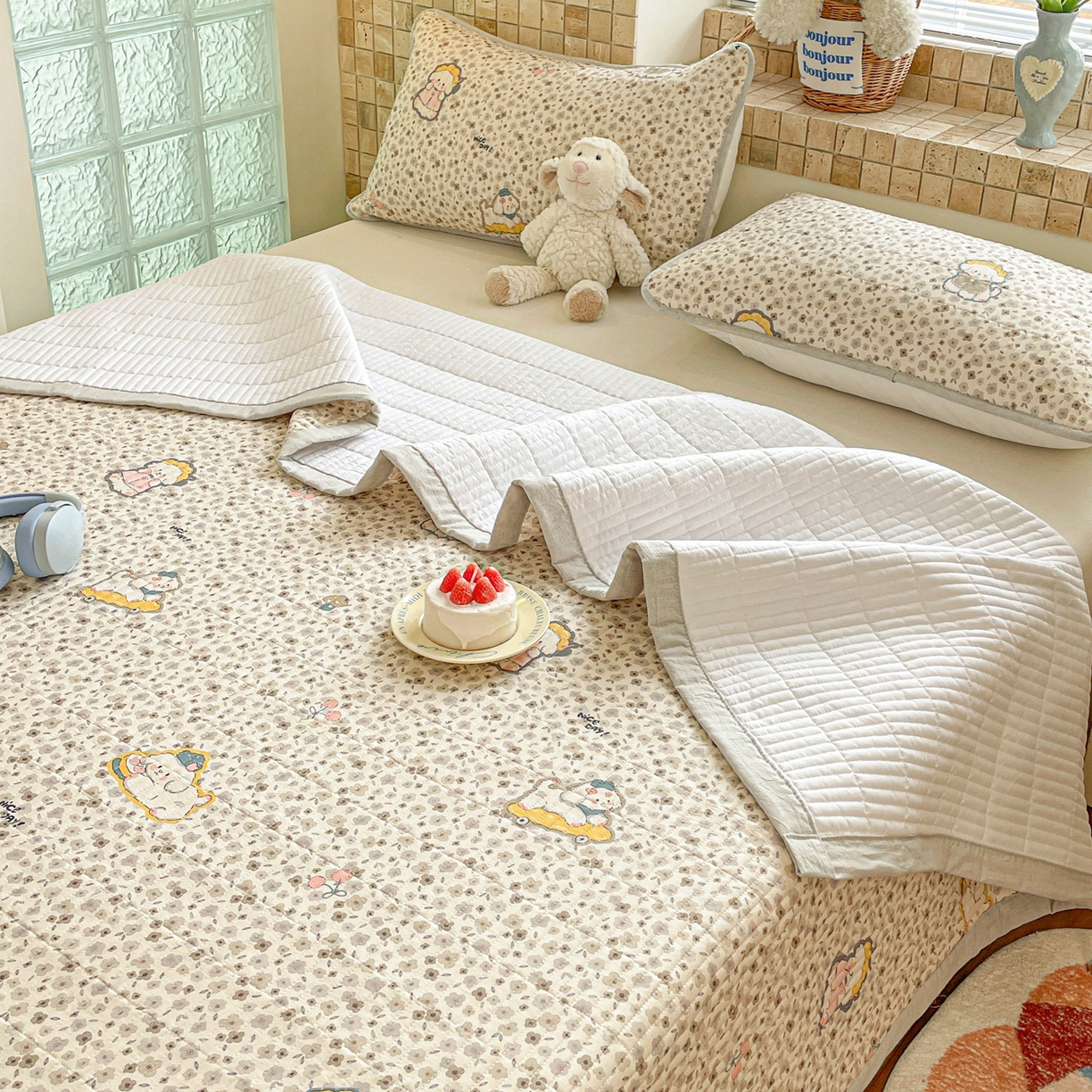 25新款全棉A类水洗棉提花烫画大豆被-夏被