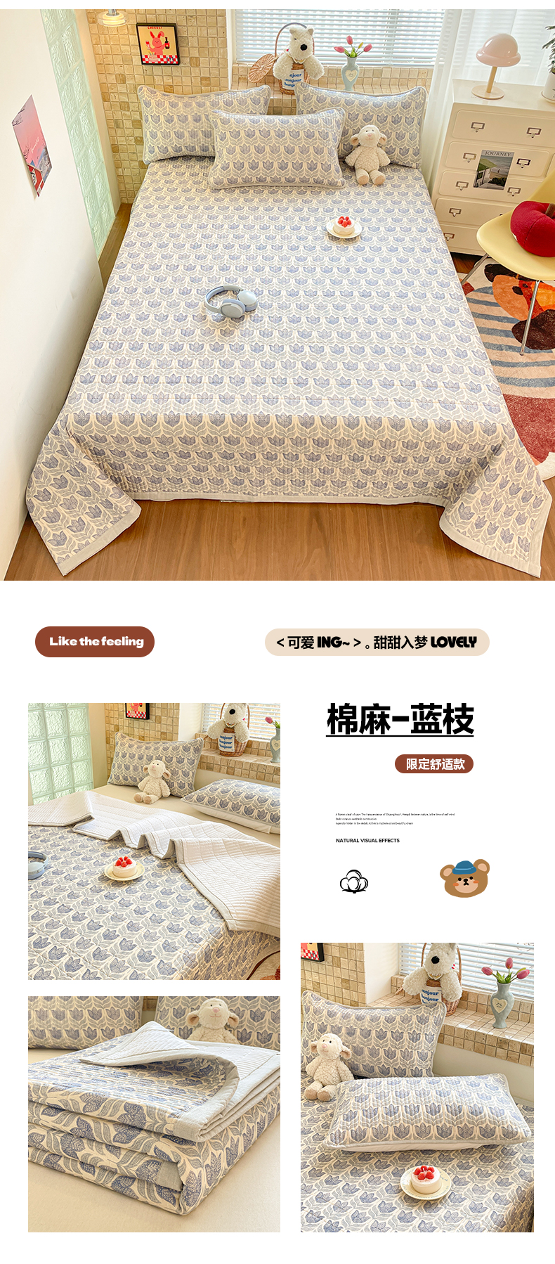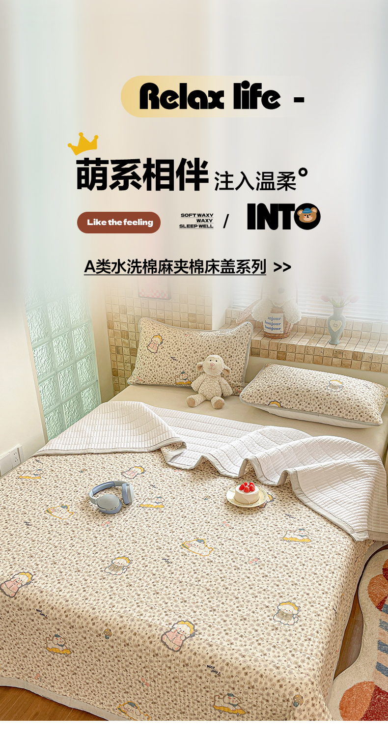 2026新款A类水洗棉麻15%麻85%棉夹棉床盖
