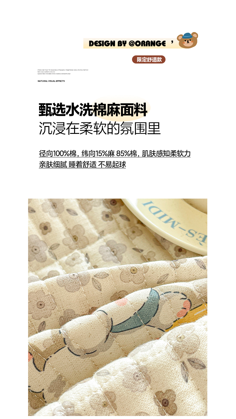 莱登卡奴 2026新款A类水洗棉麻15%麻85%棉夹棉床盖 棉麻-玛雅