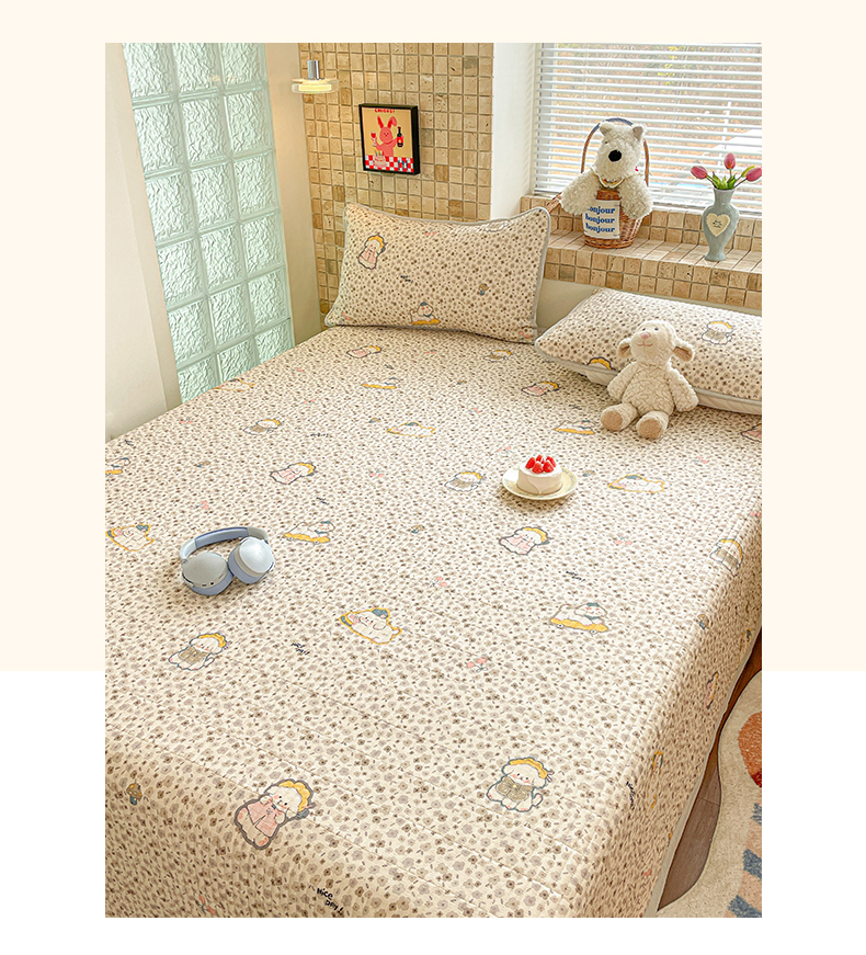 2025新款A类原棉磨毛毛巾绣夹棉床笠-萌宠系列