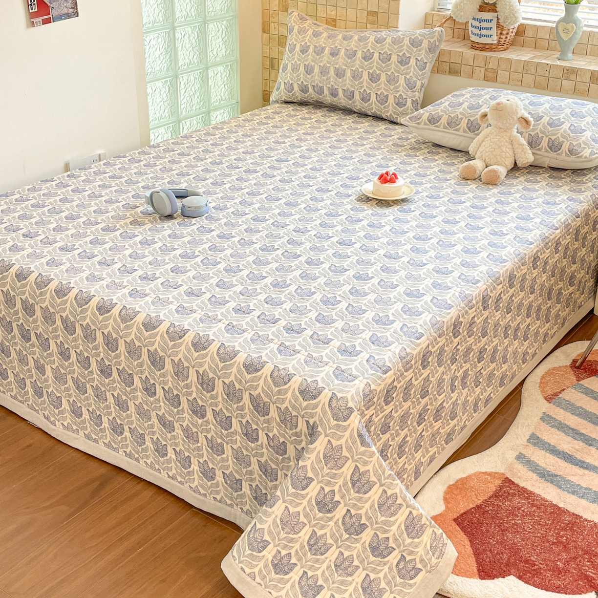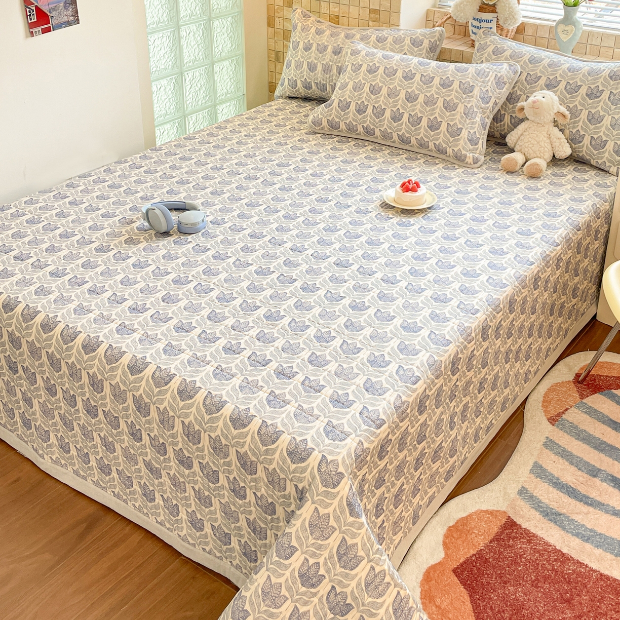 莱登卡奴 2026新款A类水洗棉麻15%麻85%棉夹棉床盖 棉麻-蓝枝