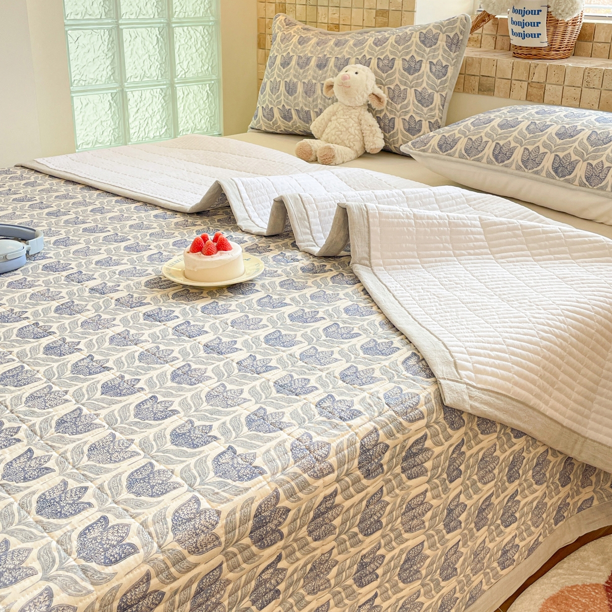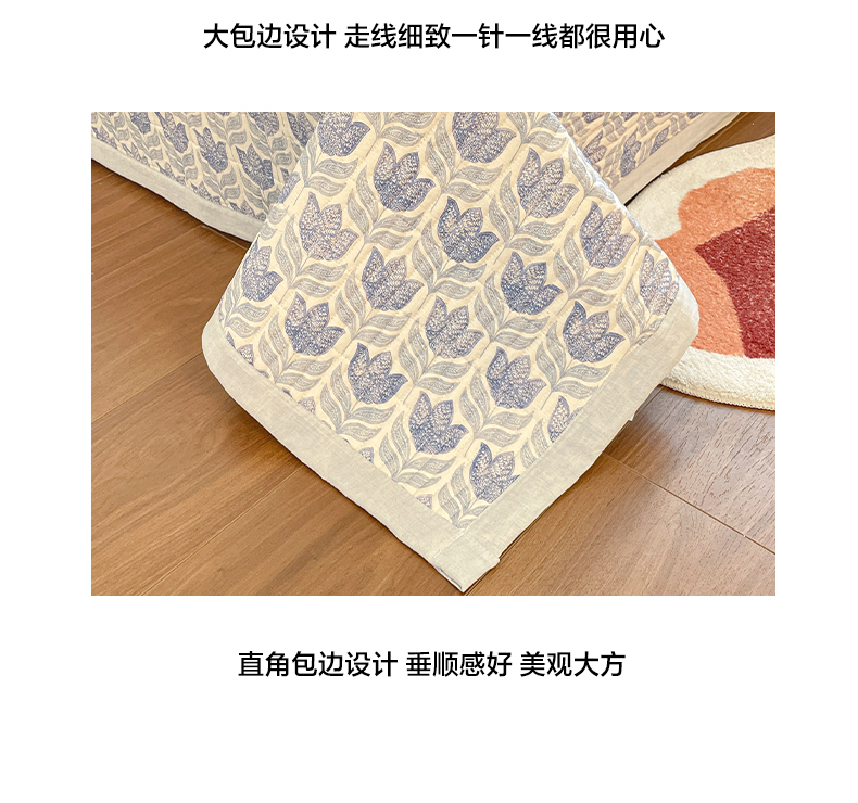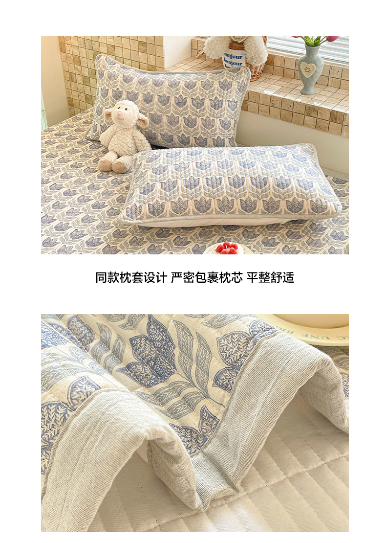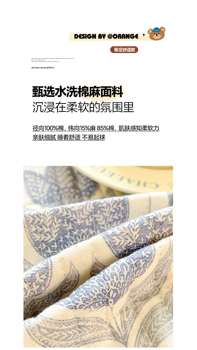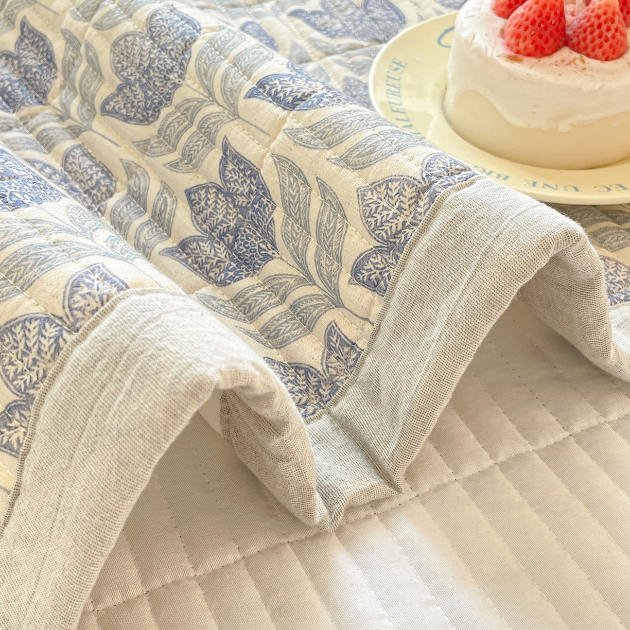 > 莱登卡奴 2026新款A类水洗棉麻15%麻85%棉夹棉床盖 棉麻-蓝枝