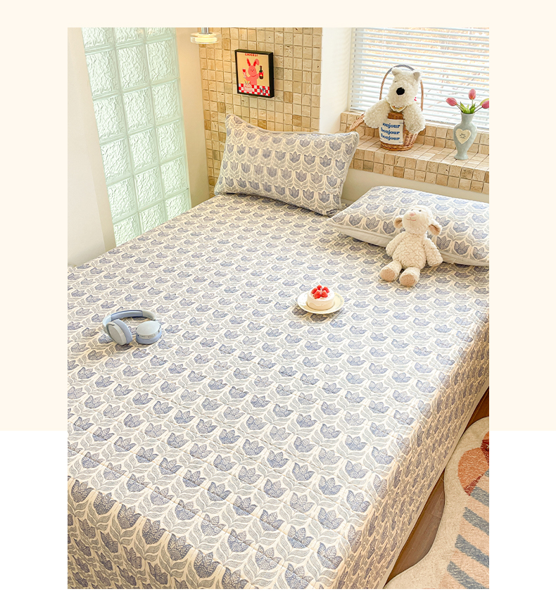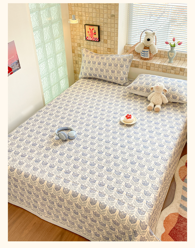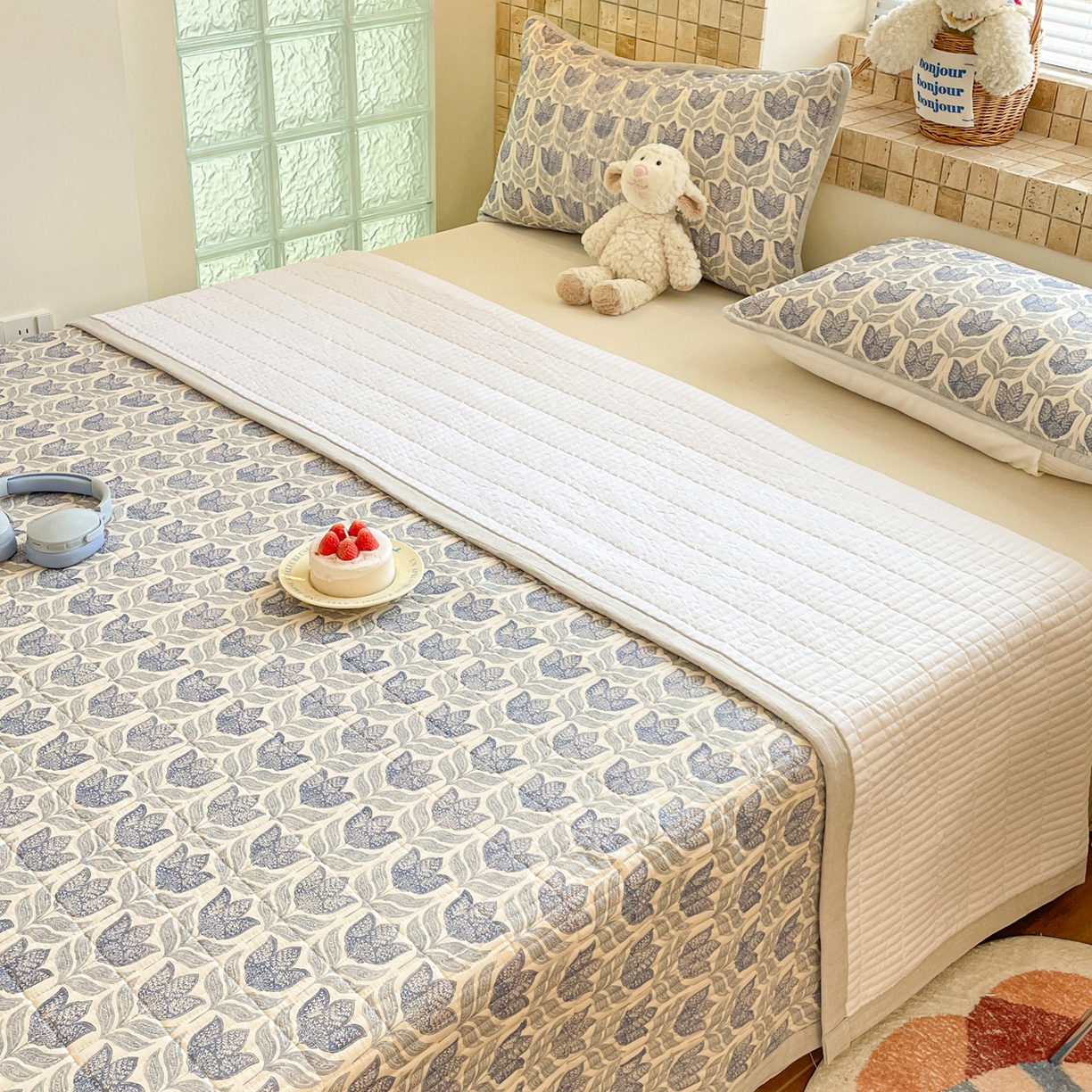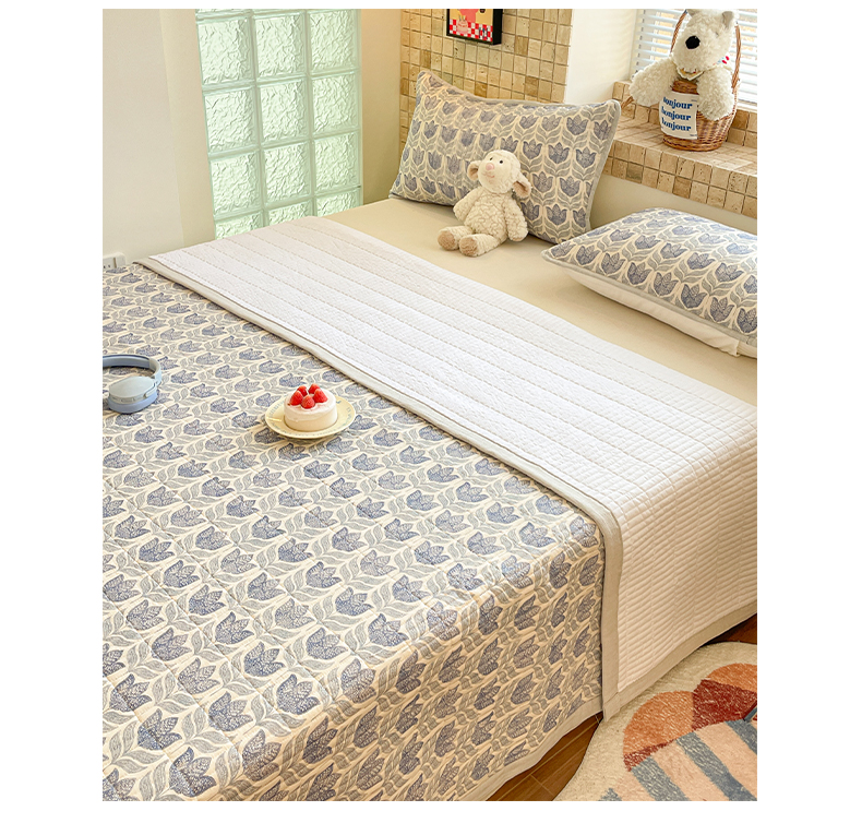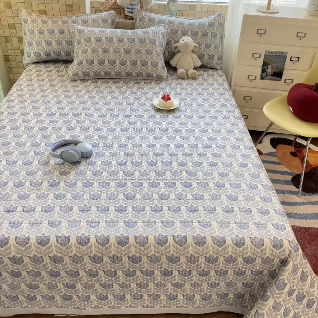 > 莱登卡奴 2026新款A类水洗棉麻15%麻85%棉夹棉床盖 棉麻-蓝枝