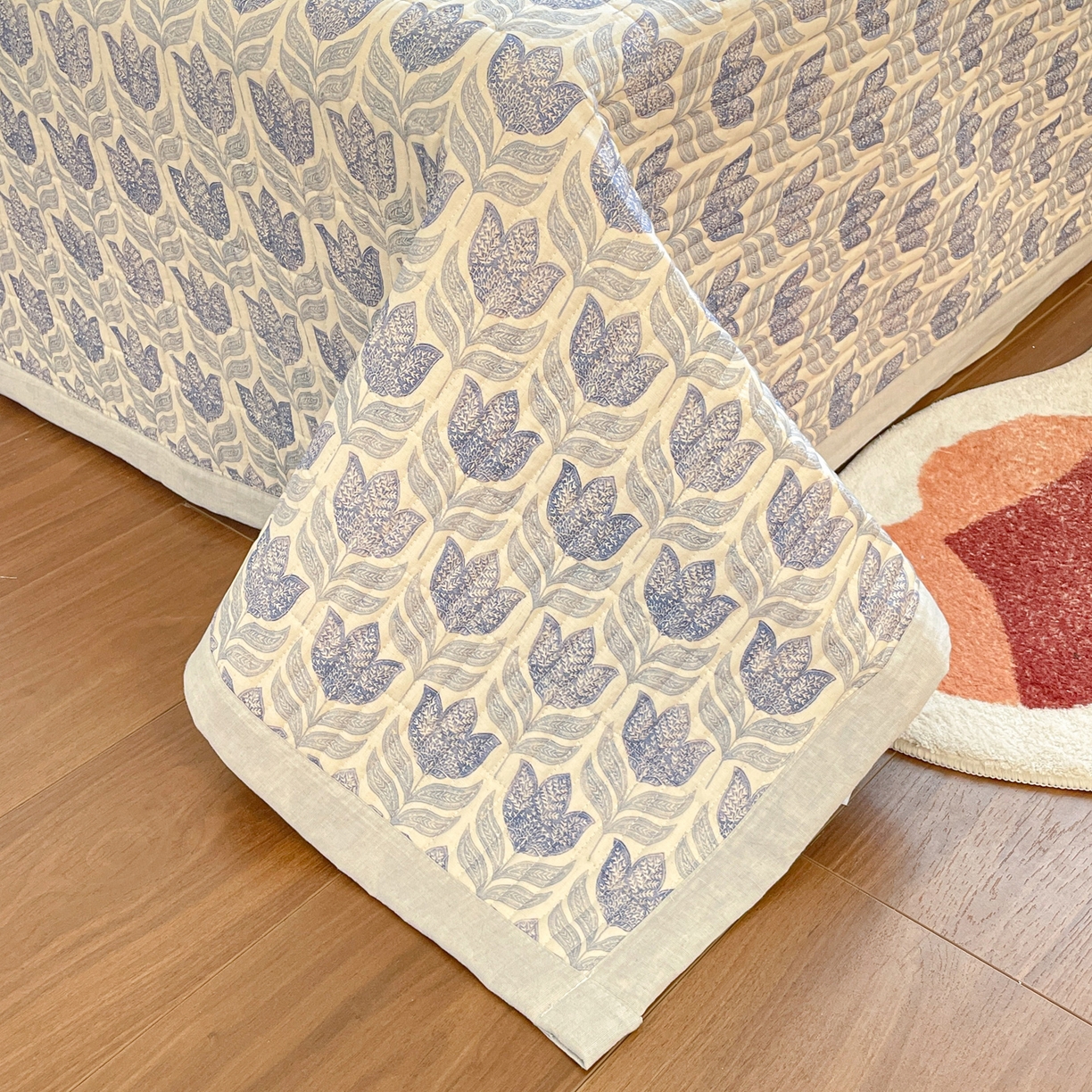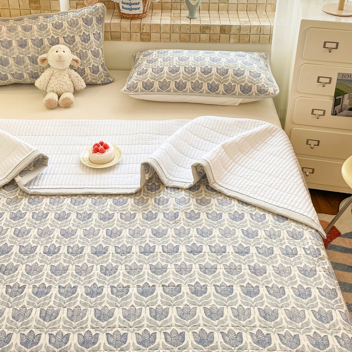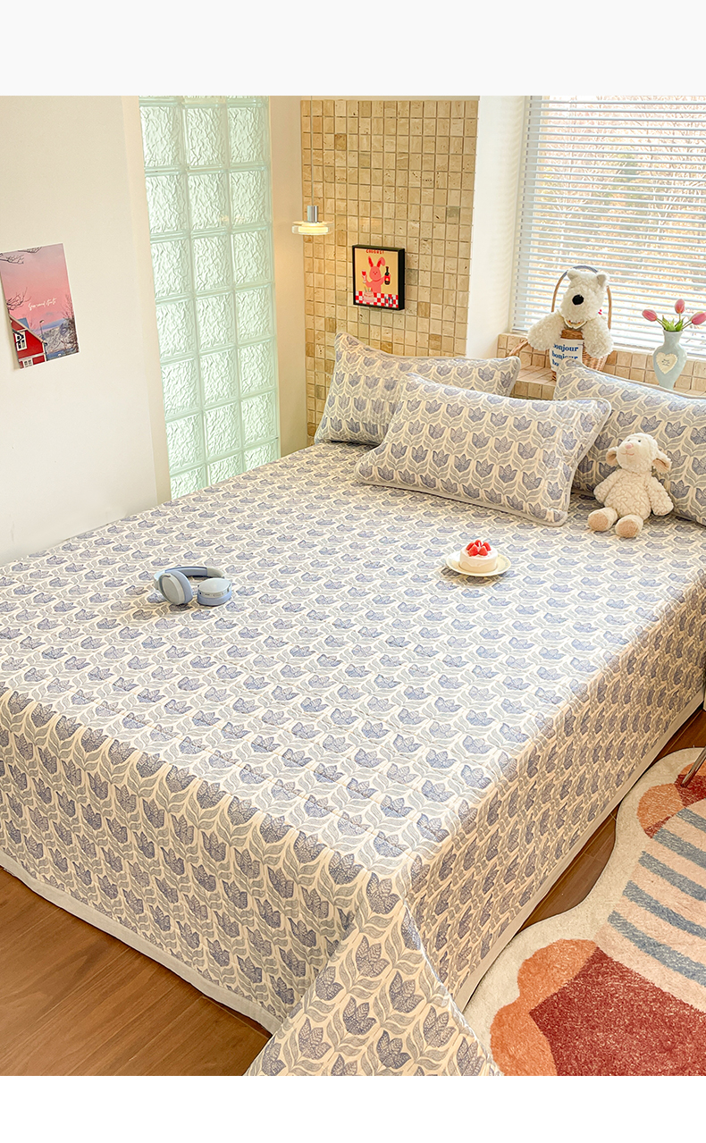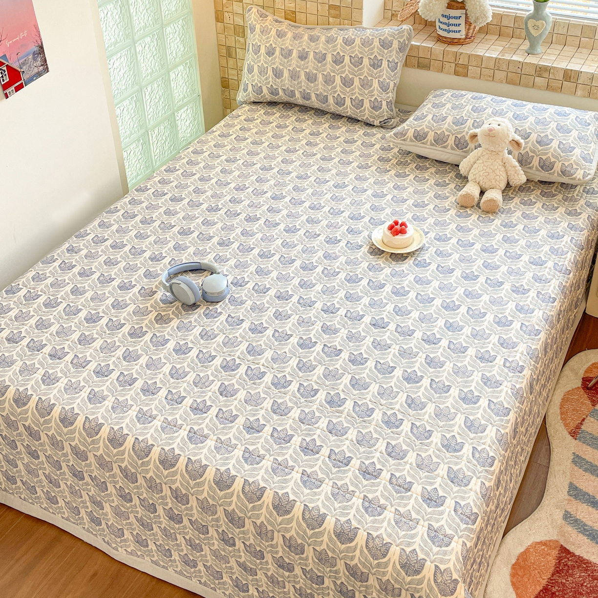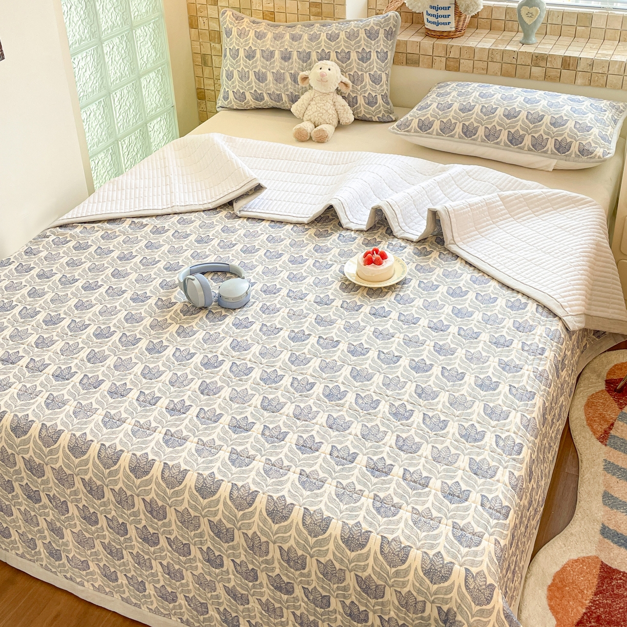 > 莱登卡奴 2026新款A类水洗棉麻15%麻85%棉夹棉床盖 棉麻-蓝枝