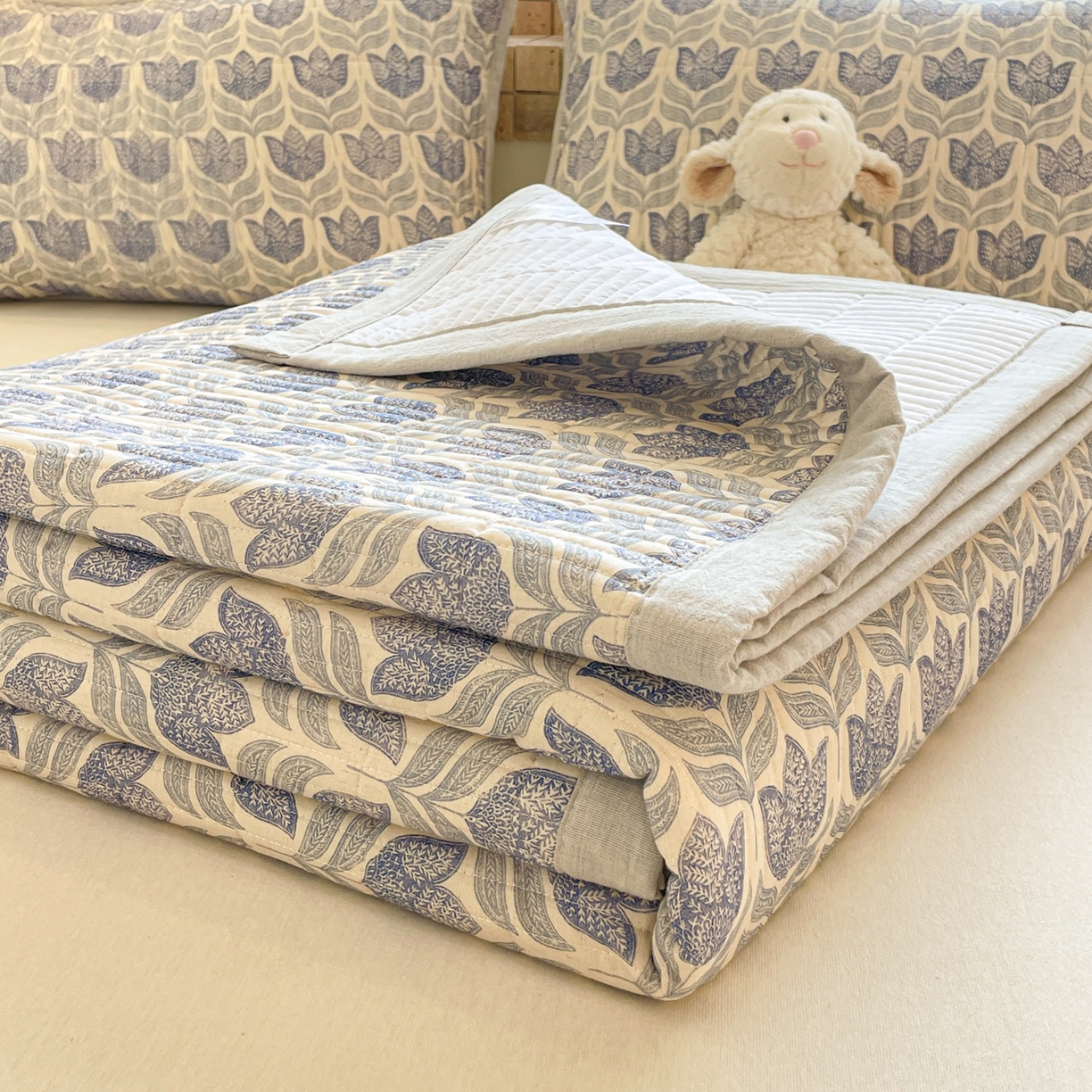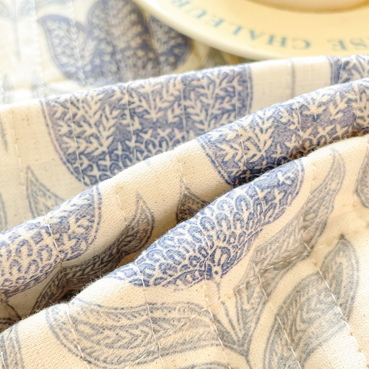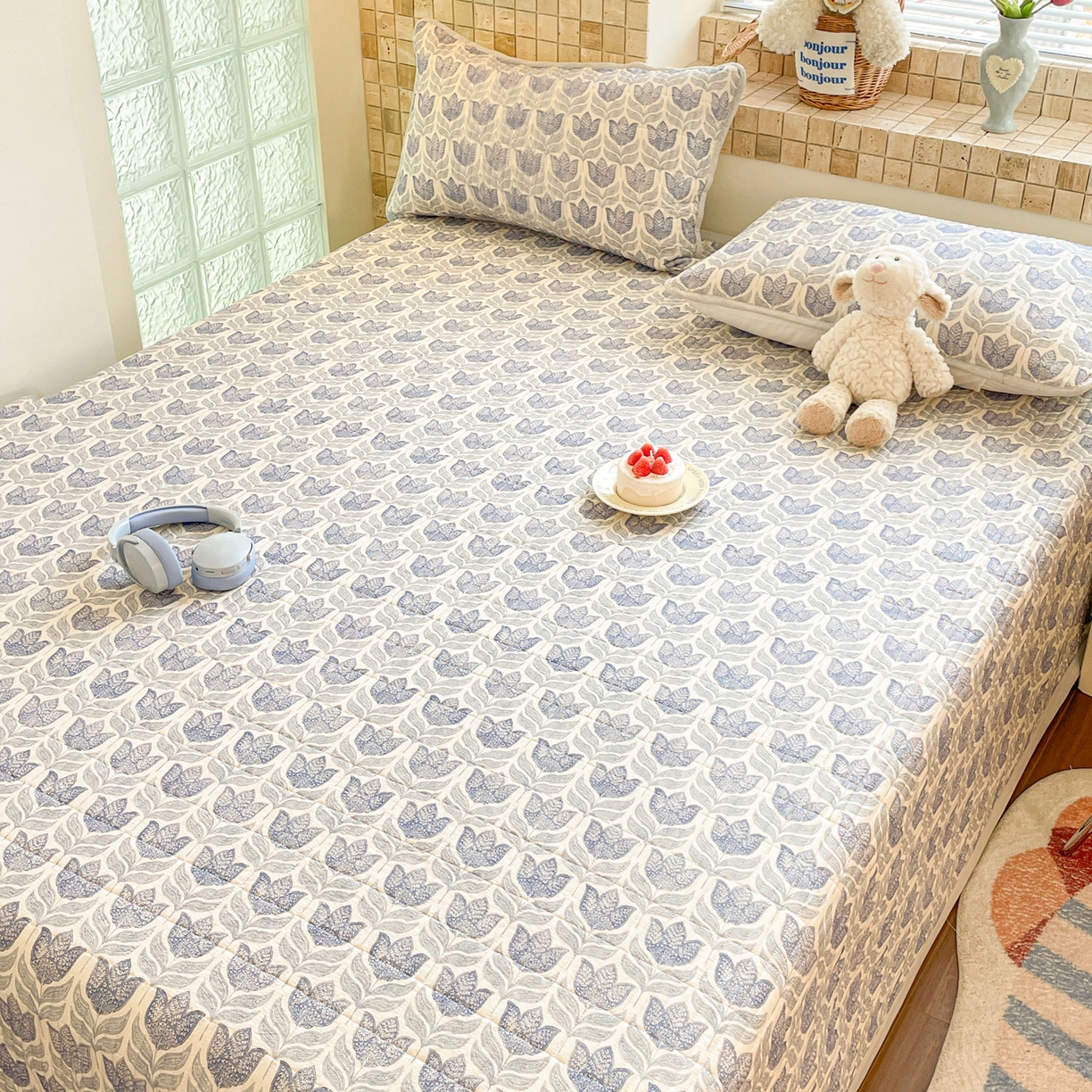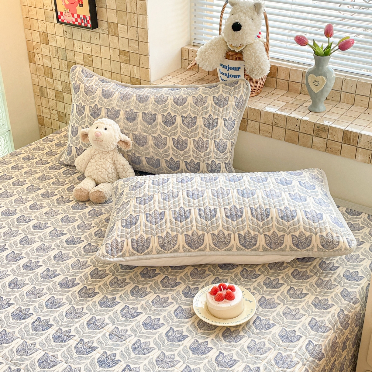 > 莱登卡奴 2026新款A类水洗棉麻15%麻85%棉夹棉床盖 棉麻-蓝枝
