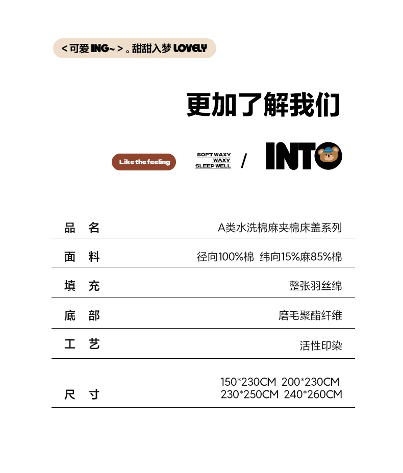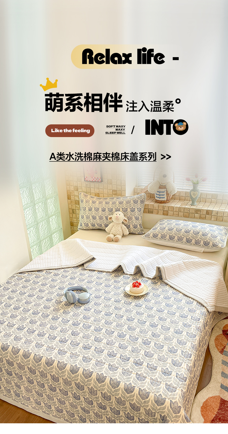 2026新款A类水洗棉麻15%麻85%棉夹棉床盖