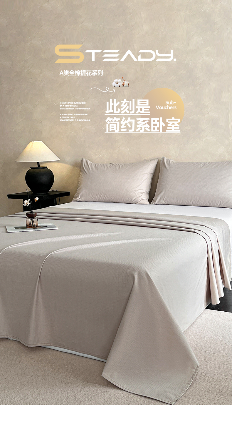 莱登卡奴 2026新款全棉A类贡缎提花单品时尚系列-床单-枕套 床单-编织浅灰