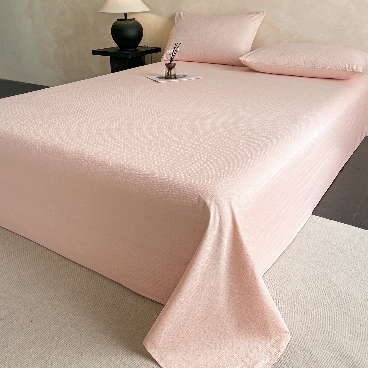 莱登卡奴 2026新款全棉A类贡缎提花单品时尚系列-床单-枕套 床单-菱格粉