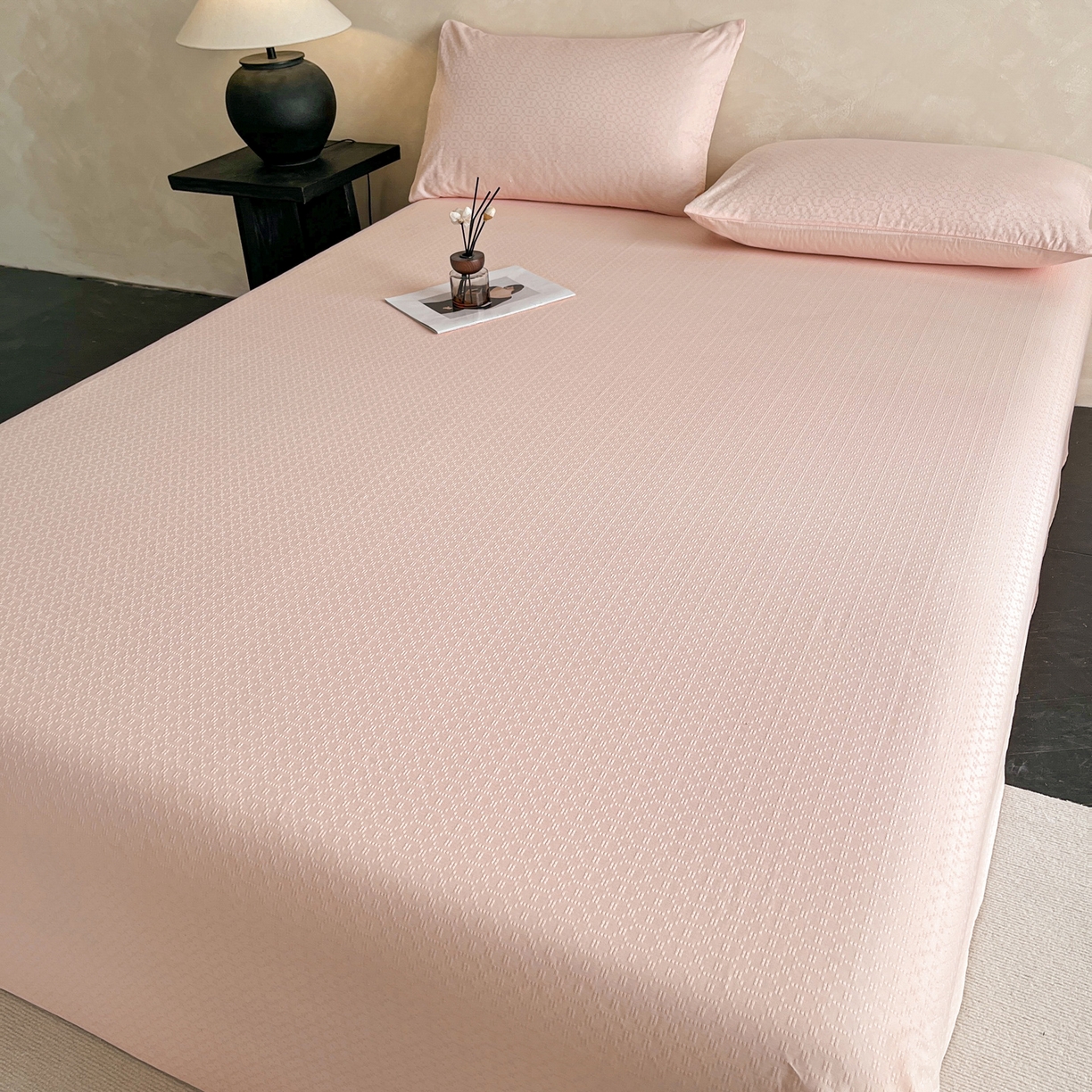 > 莱登卡奴 2026新款全棉A类贡缎提花单品时尚系列-床单-枕套 床单-菱格粉