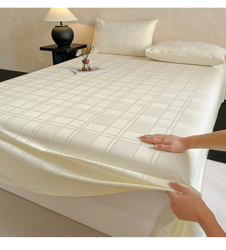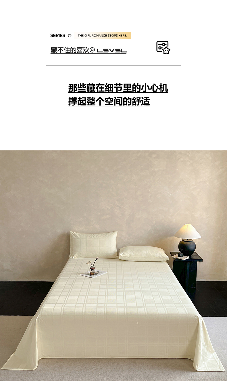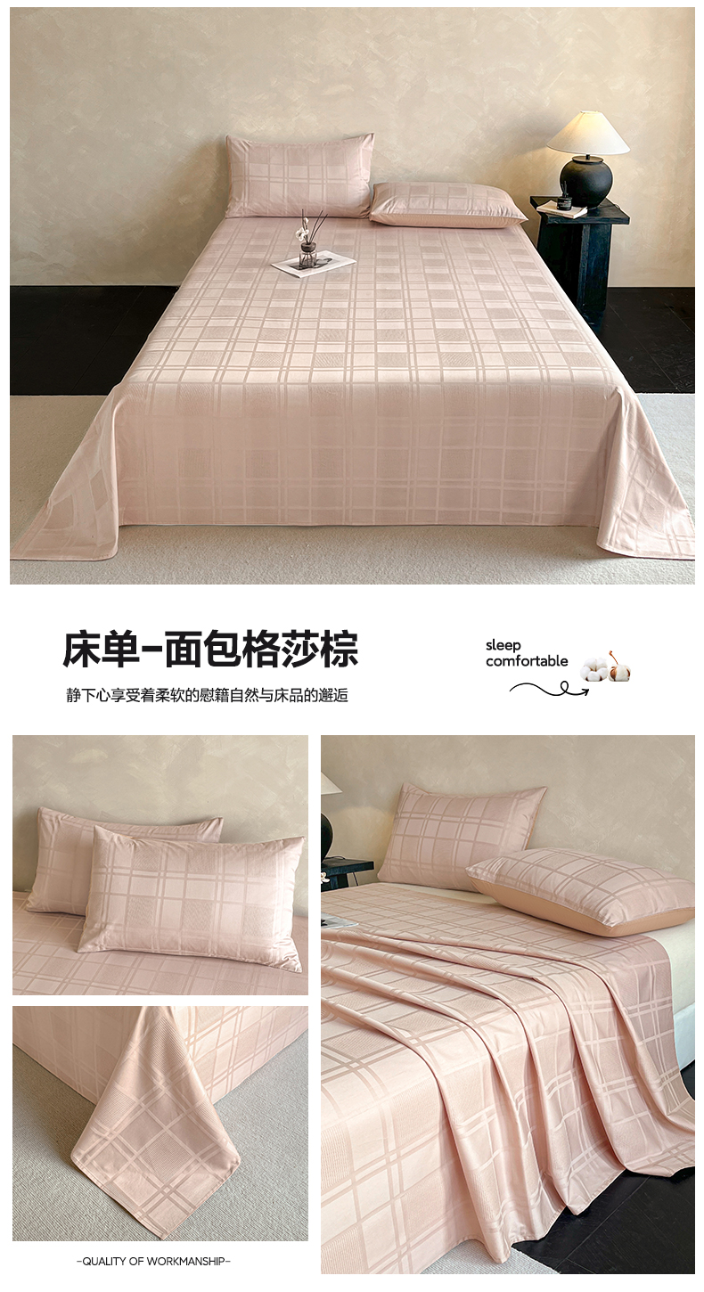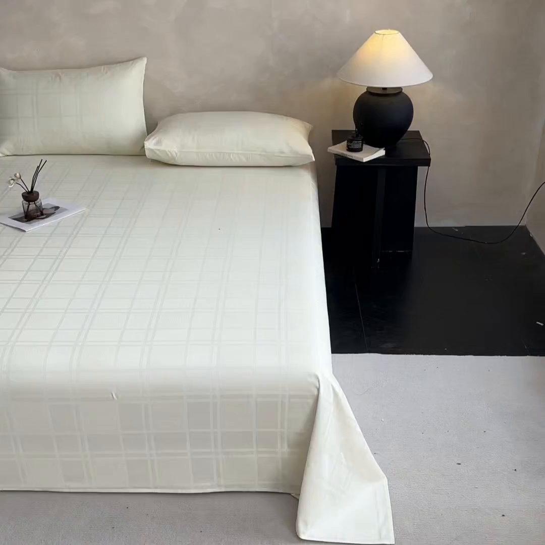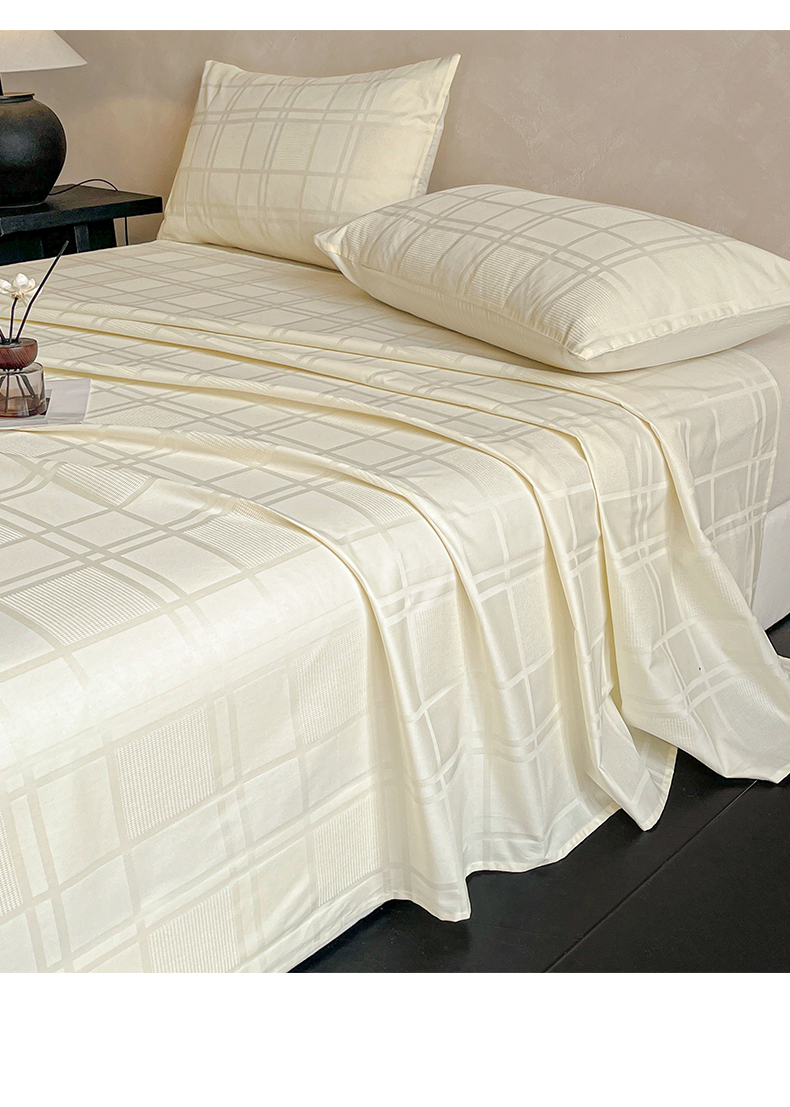 莱登卡奴 2026新款全棉A类贡缎提花单品时尚系列-床单-枕套 床单-面包格奶昔白
