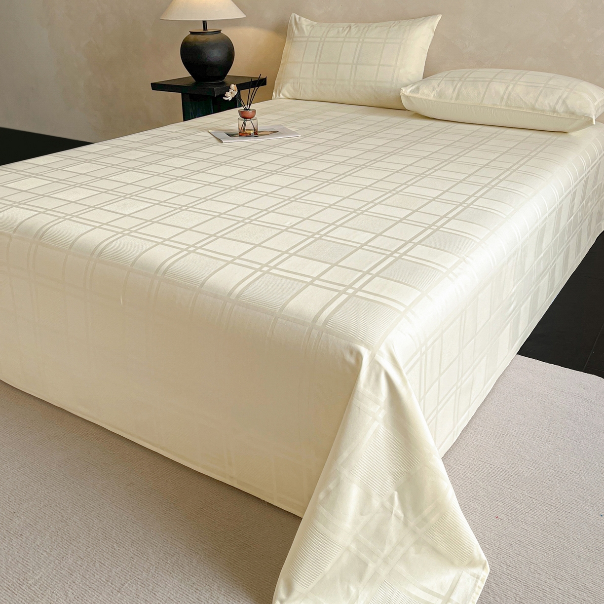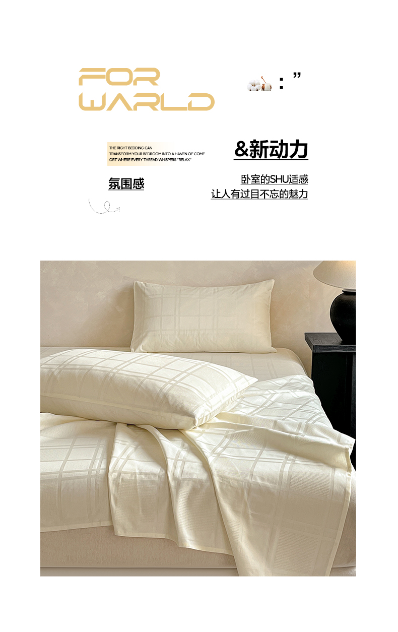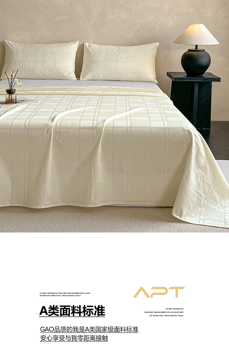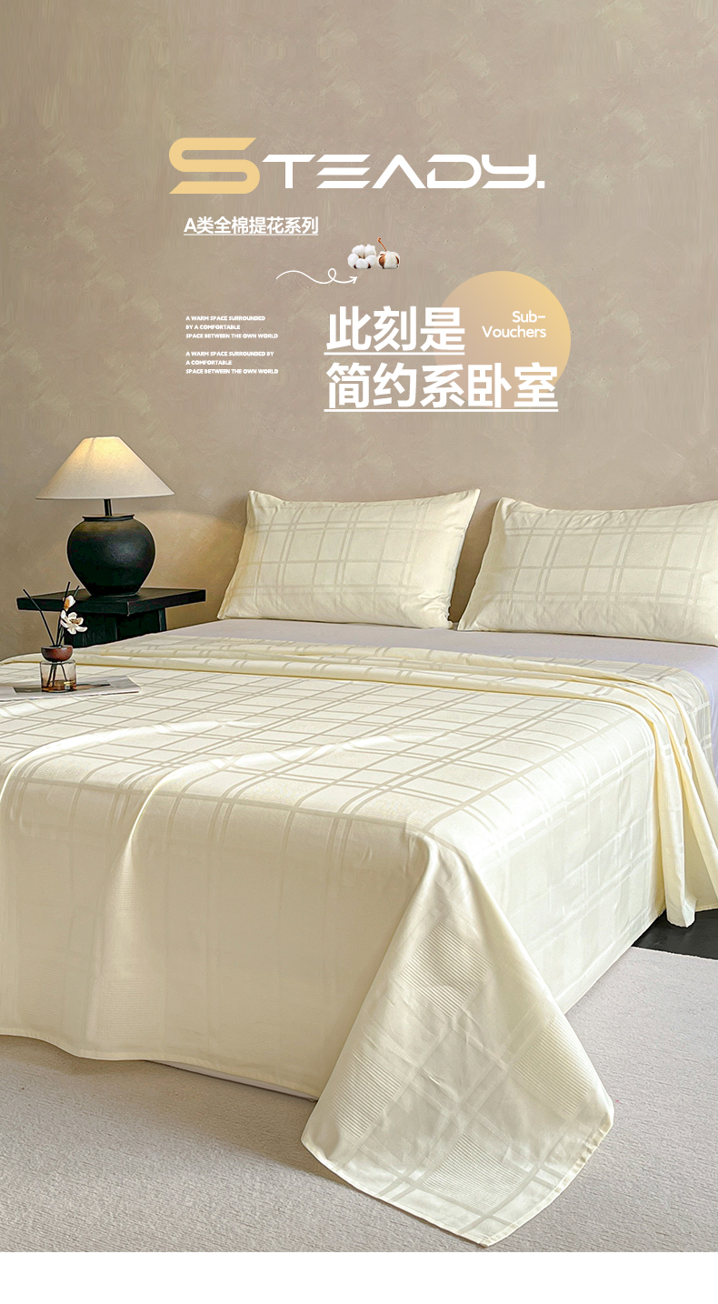 莱登卡奴 2026新款全棉A类贡缎提花单品时尚系列-床单-枕套 床单-面包格奶昔白