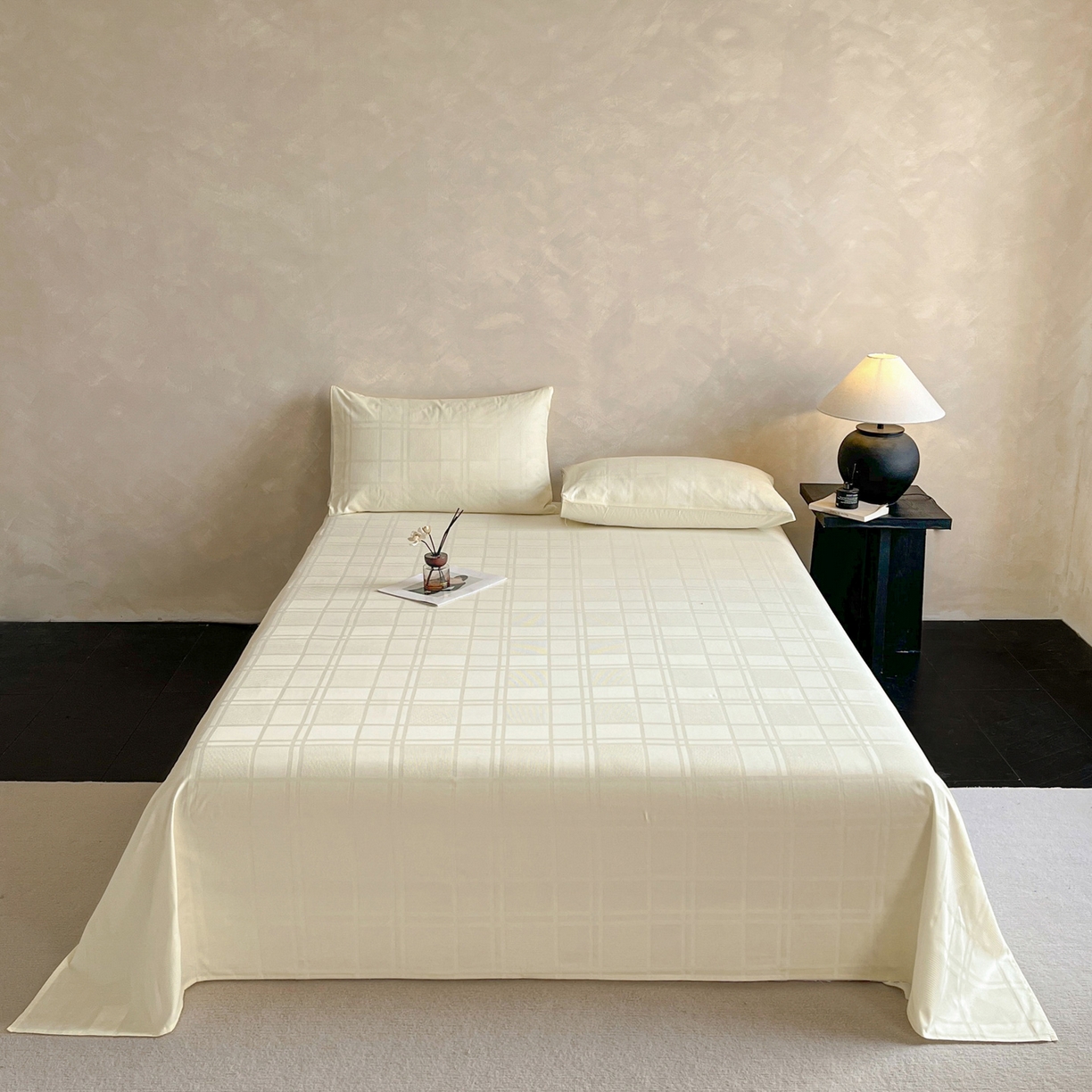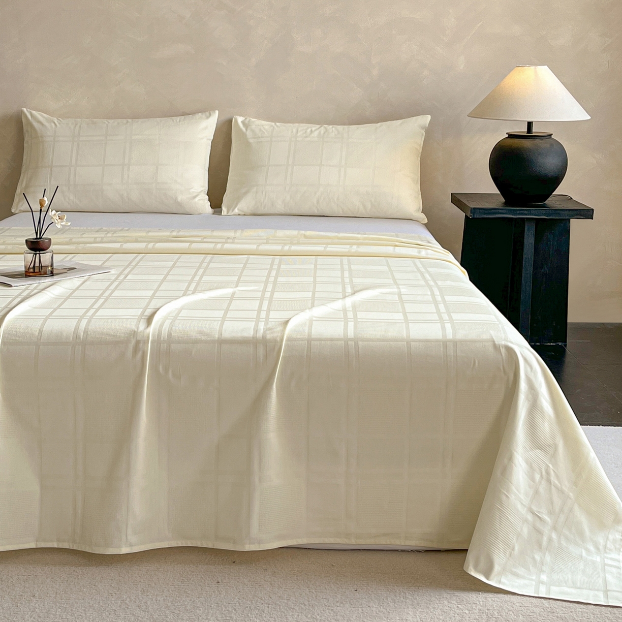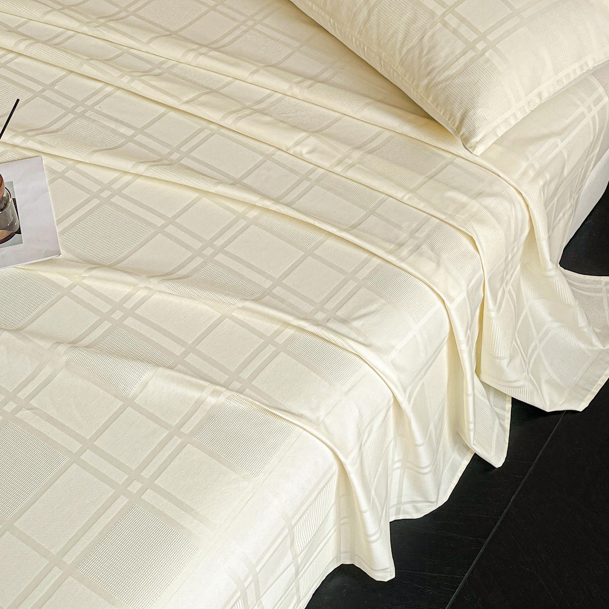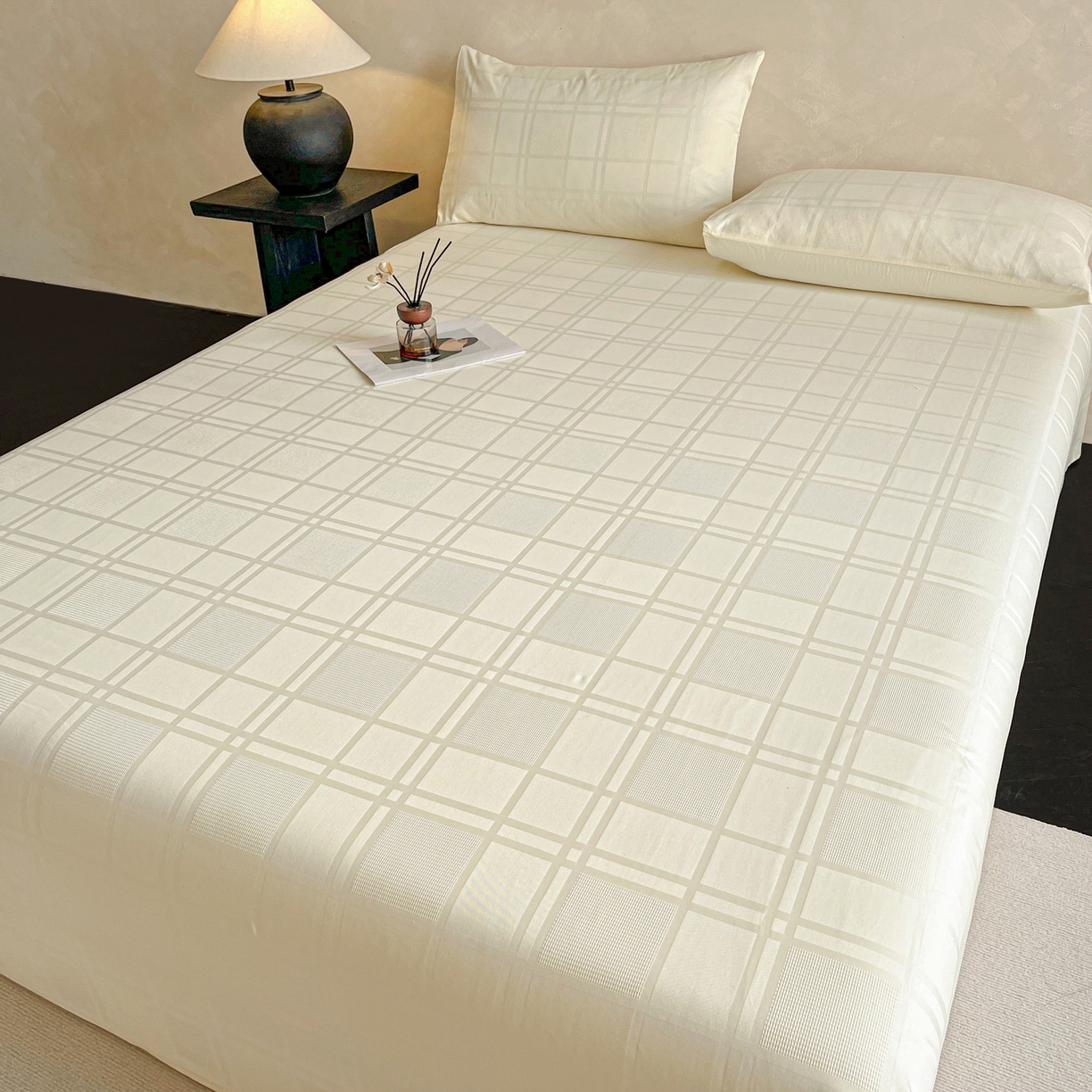 莱登卡奴 2026新款全棉A类贡缎提花单品时尚系列-床单-枕套 床单-面包格奶昔白
