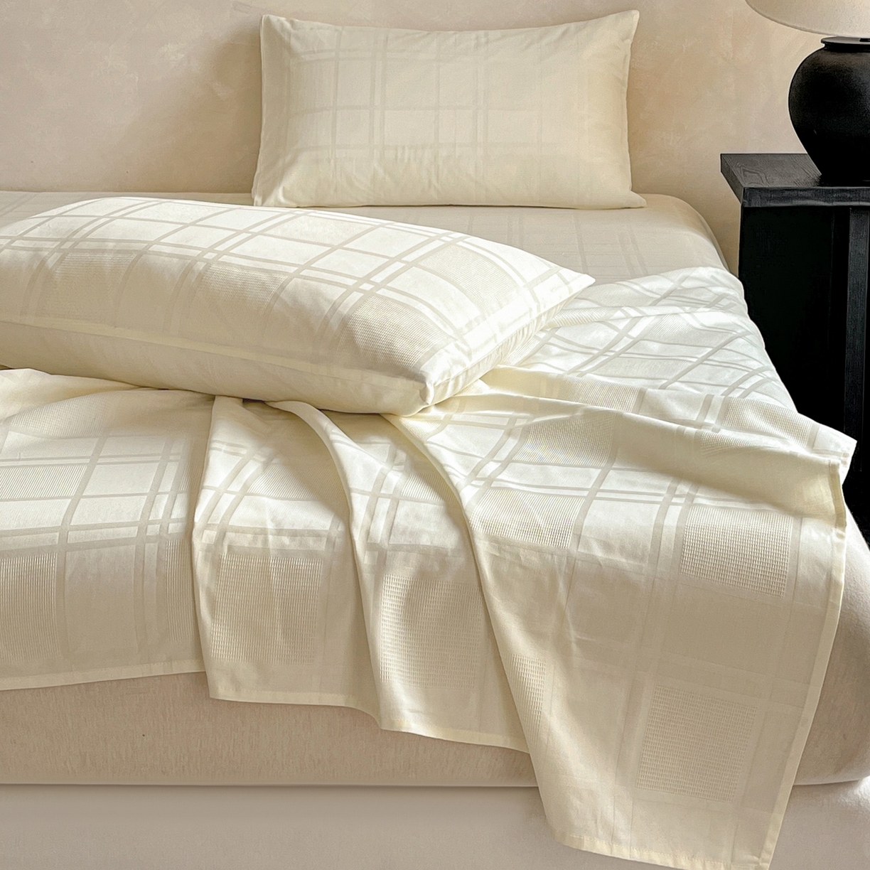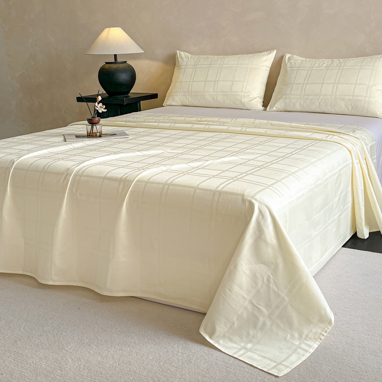 > 莱登卡奴 2026新款全棉A类贡缎提花单品时尚系列-床单-枕套 床单-面包格奶昔白